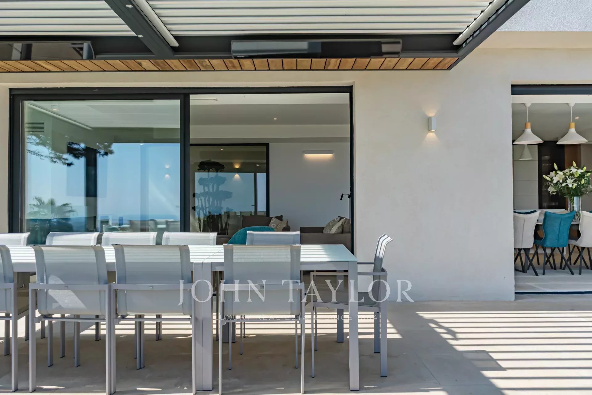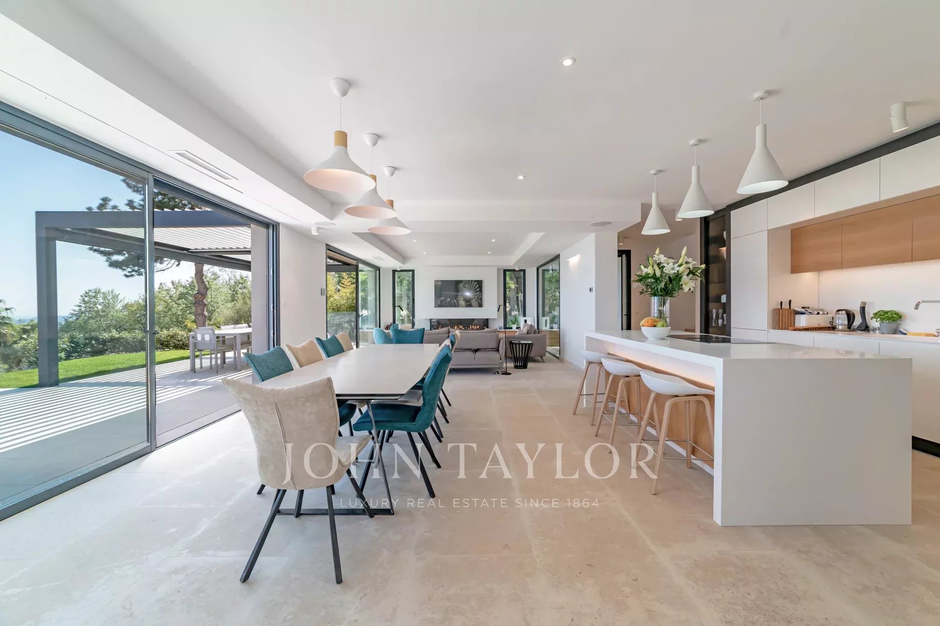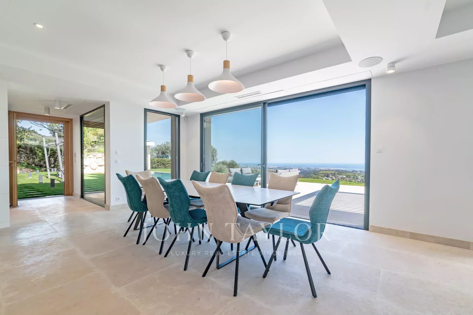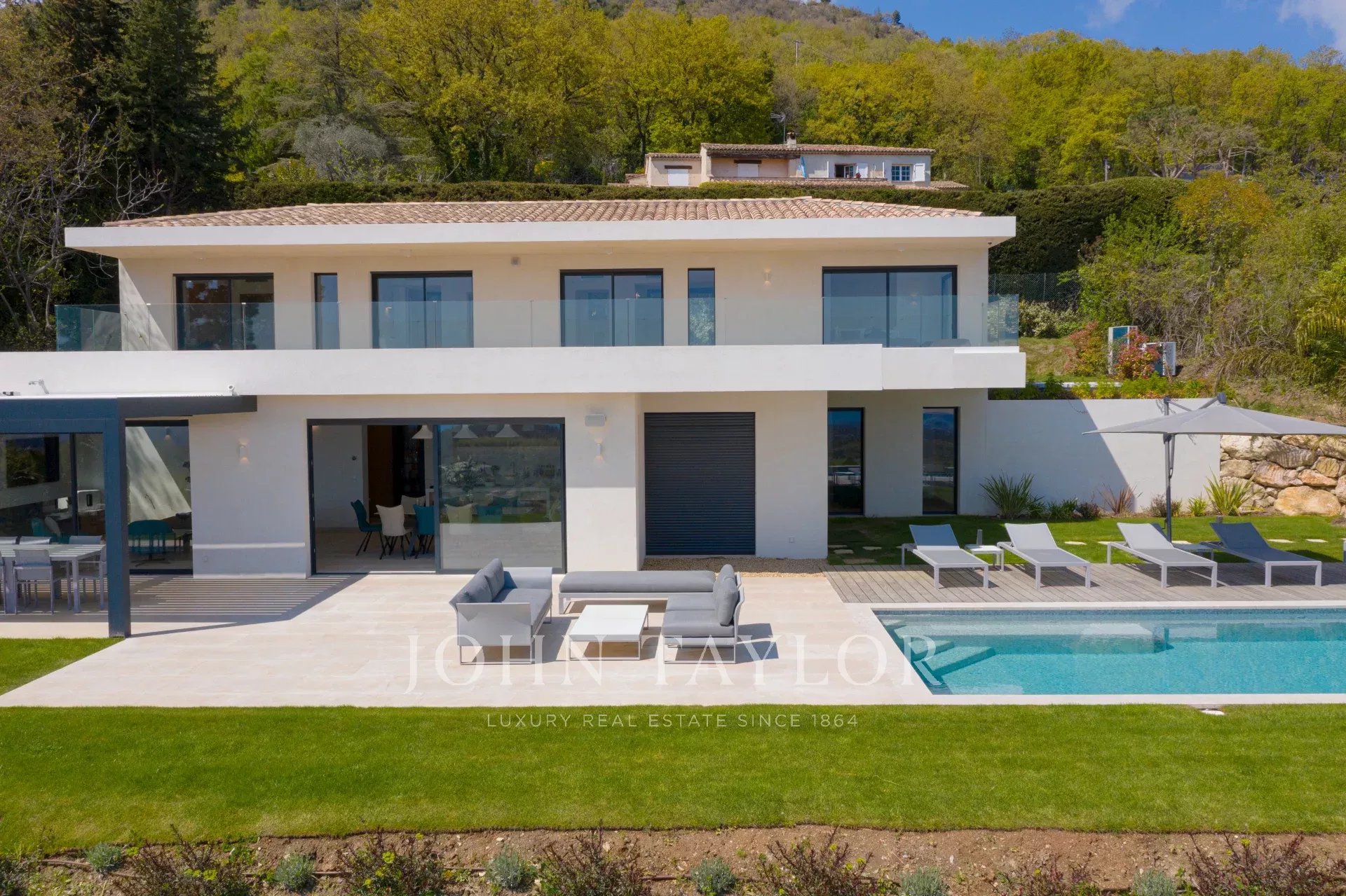 En una posición dominante en las alturas de Vence, esta espléndida villa ofrece 5 dormitorios con baños / duchas, una sala de estar muy luminosa con una cocina abierta que da acceso directo a una hermosa terraza.