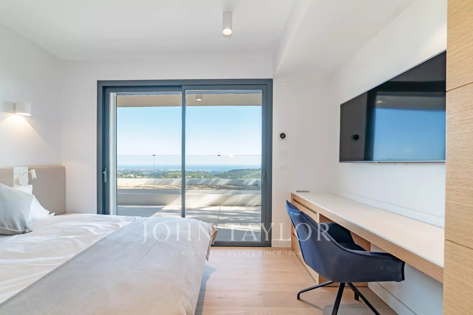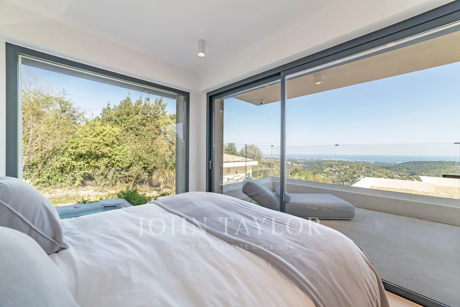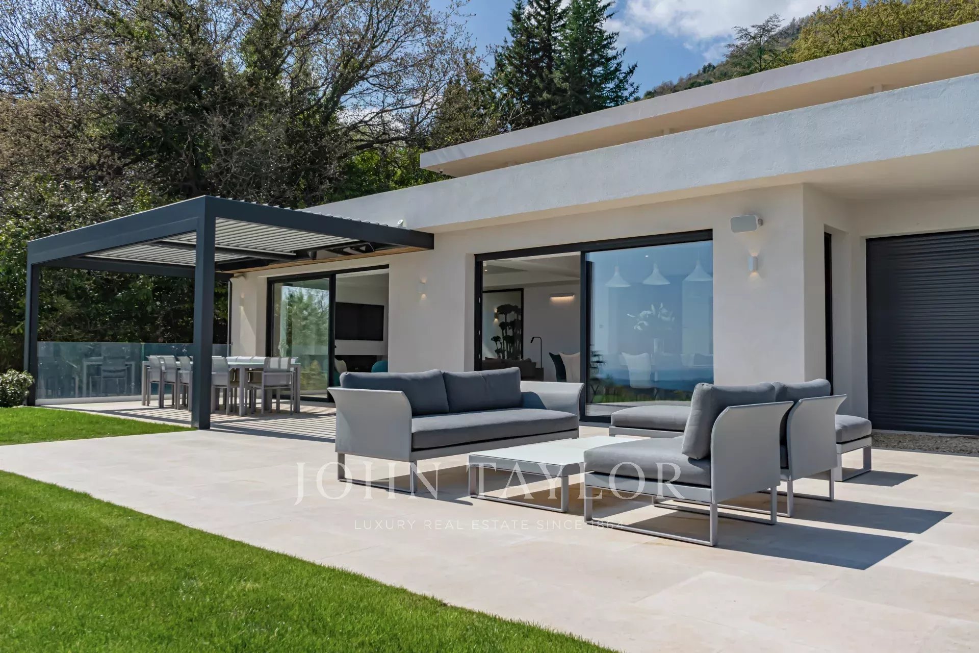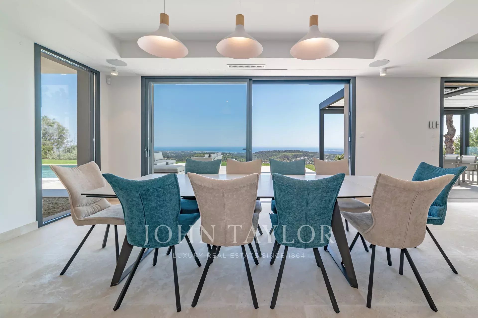 En una posición dominante en las alturas de Vence, esta espléndida villa ofrece 5 dormitorios con baños / duchas, una sala de estar muy luminosa con una cocina abierta que da acceso directo a una hermosa terraza.