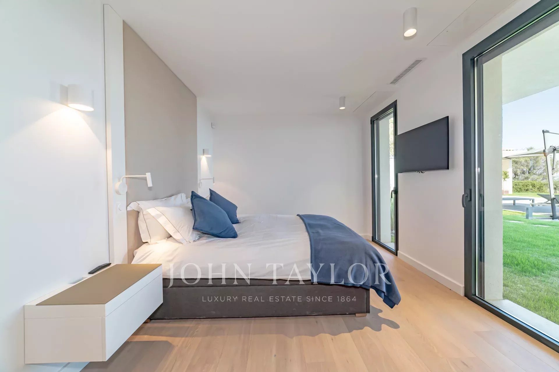 En el exterior, una piscina con vistas panorámicas al Mediterráneo, una casita de piscina con sofá cama, un jacuzzi y una pista de petanca completan esta magnífica villa de vacaciones.