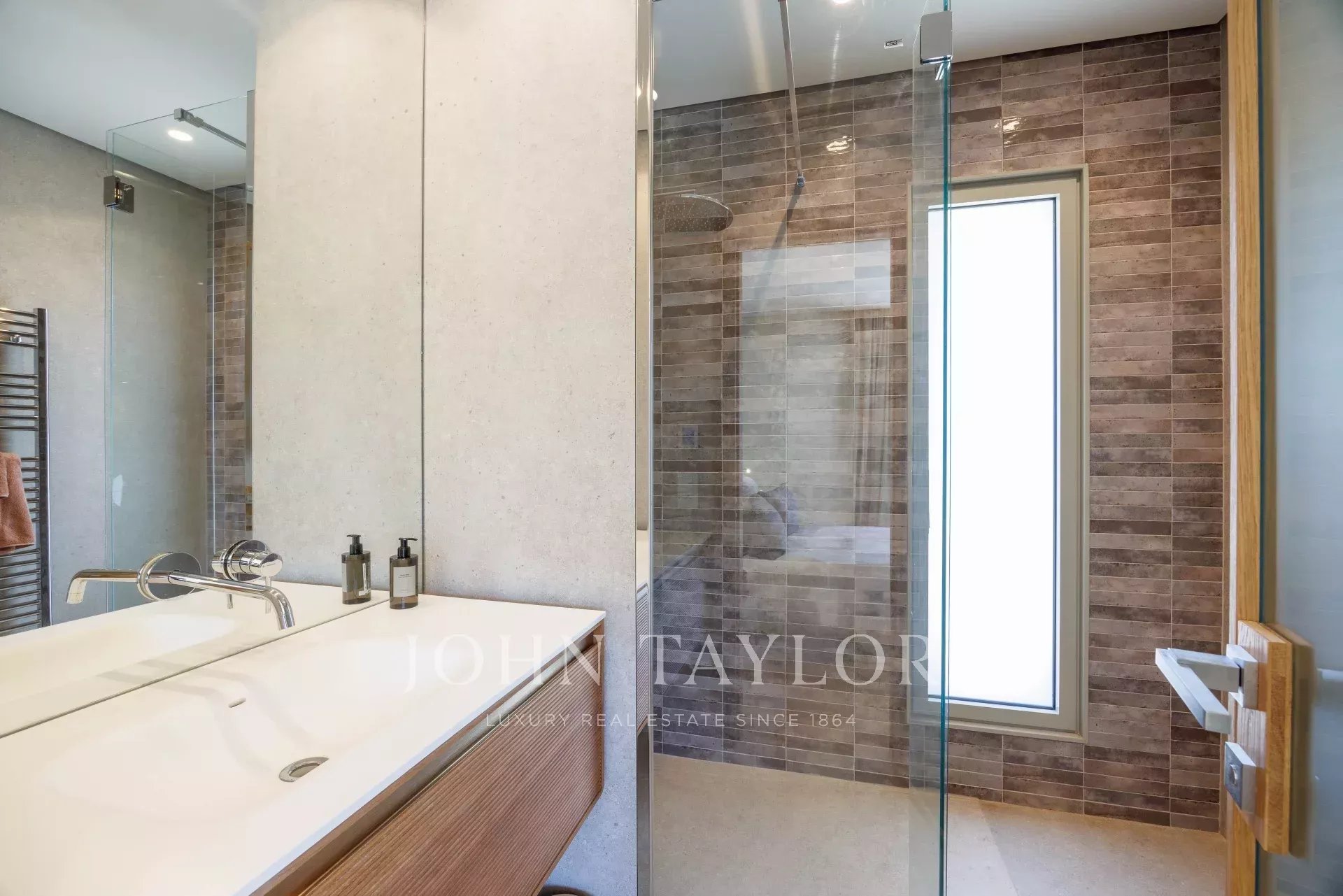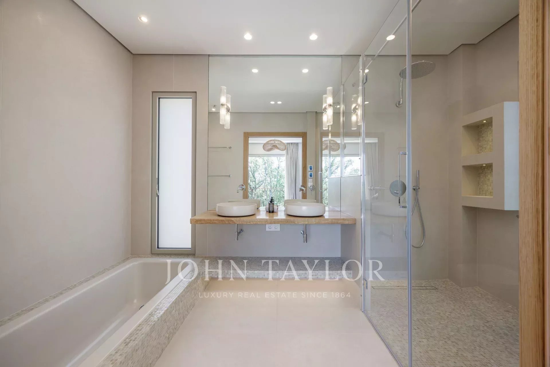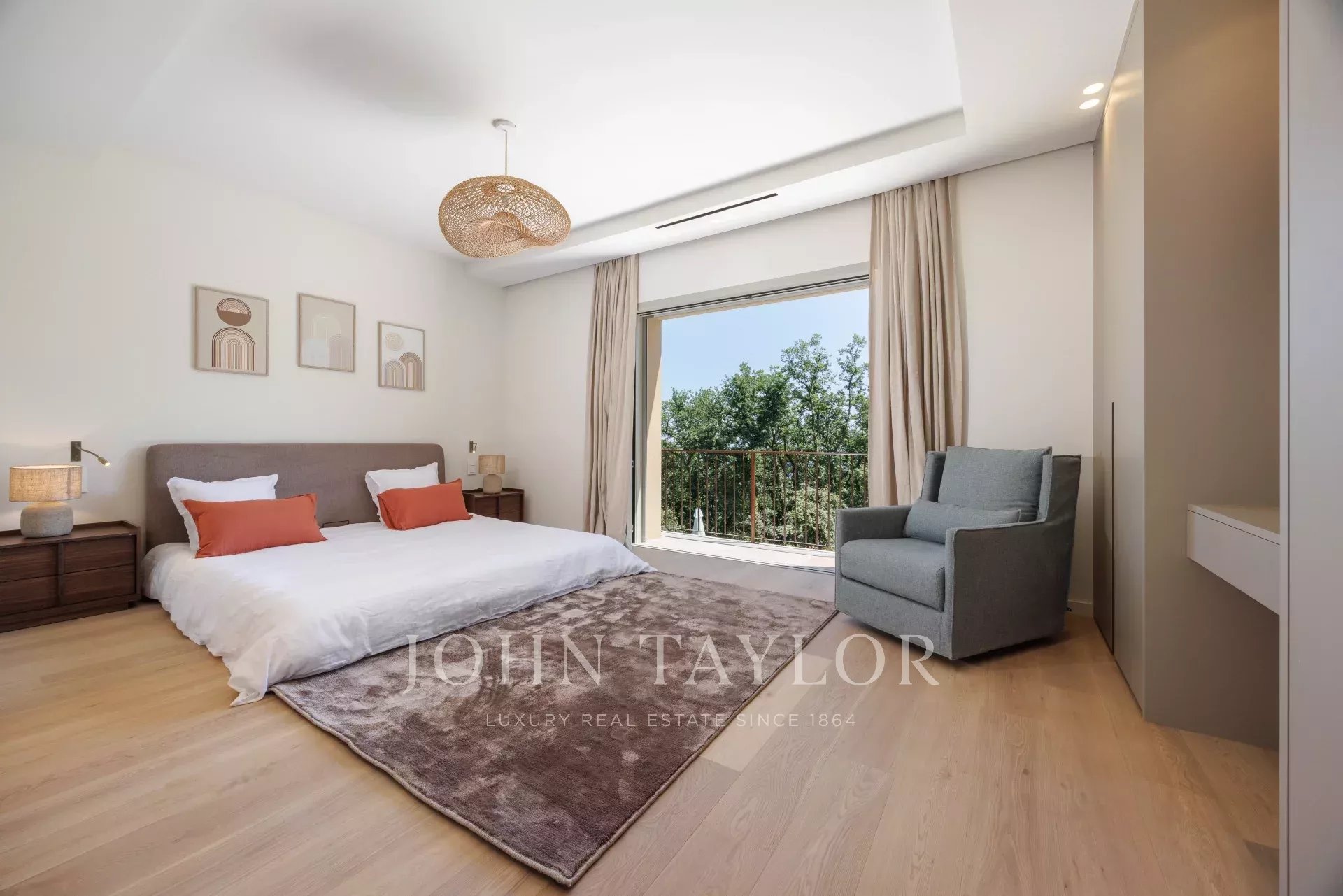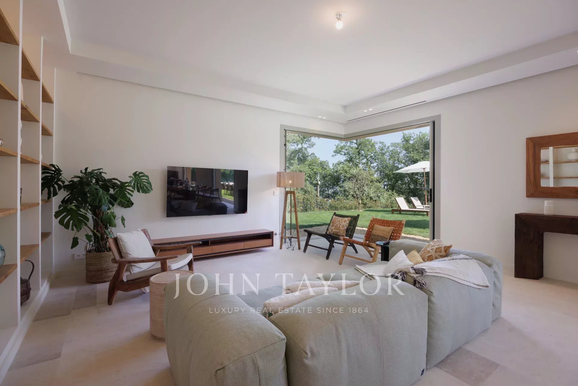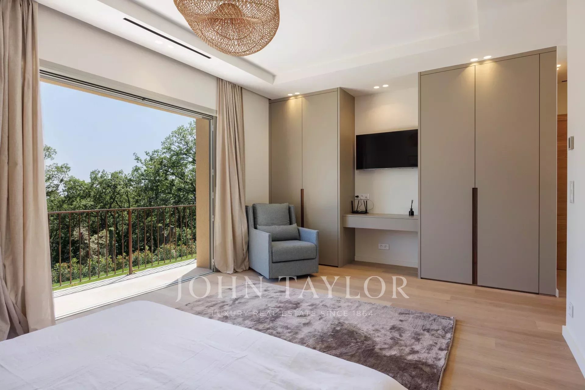 Enclavada en las codiciadas alturas de Vence, esta villa contemporánea ha sido completamente renovada para crear un ambiente elegante y luminoso.