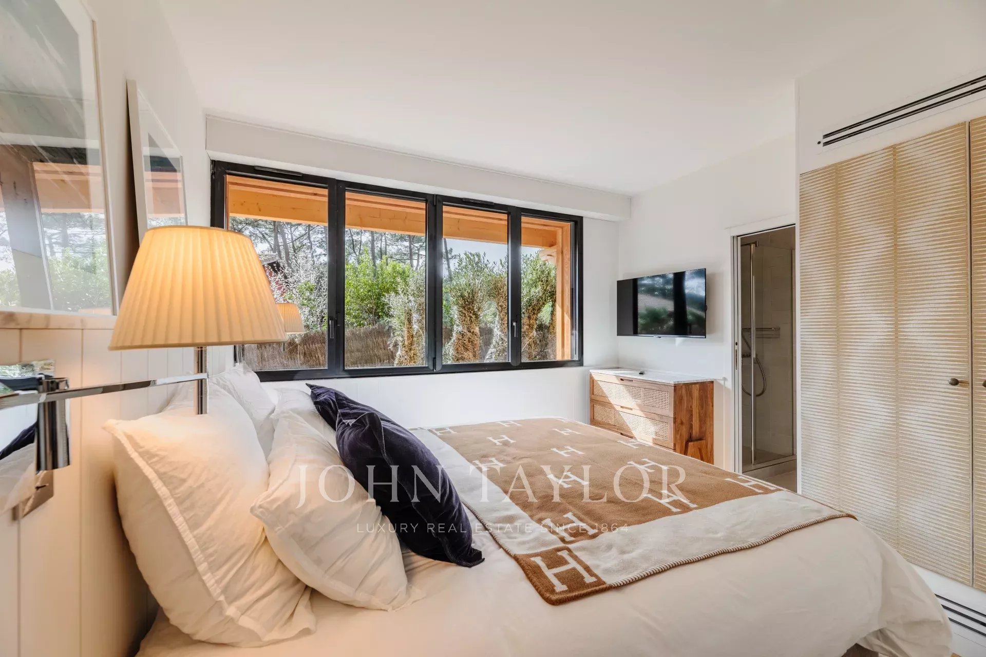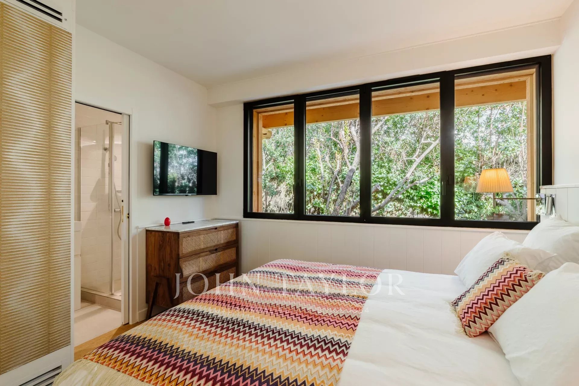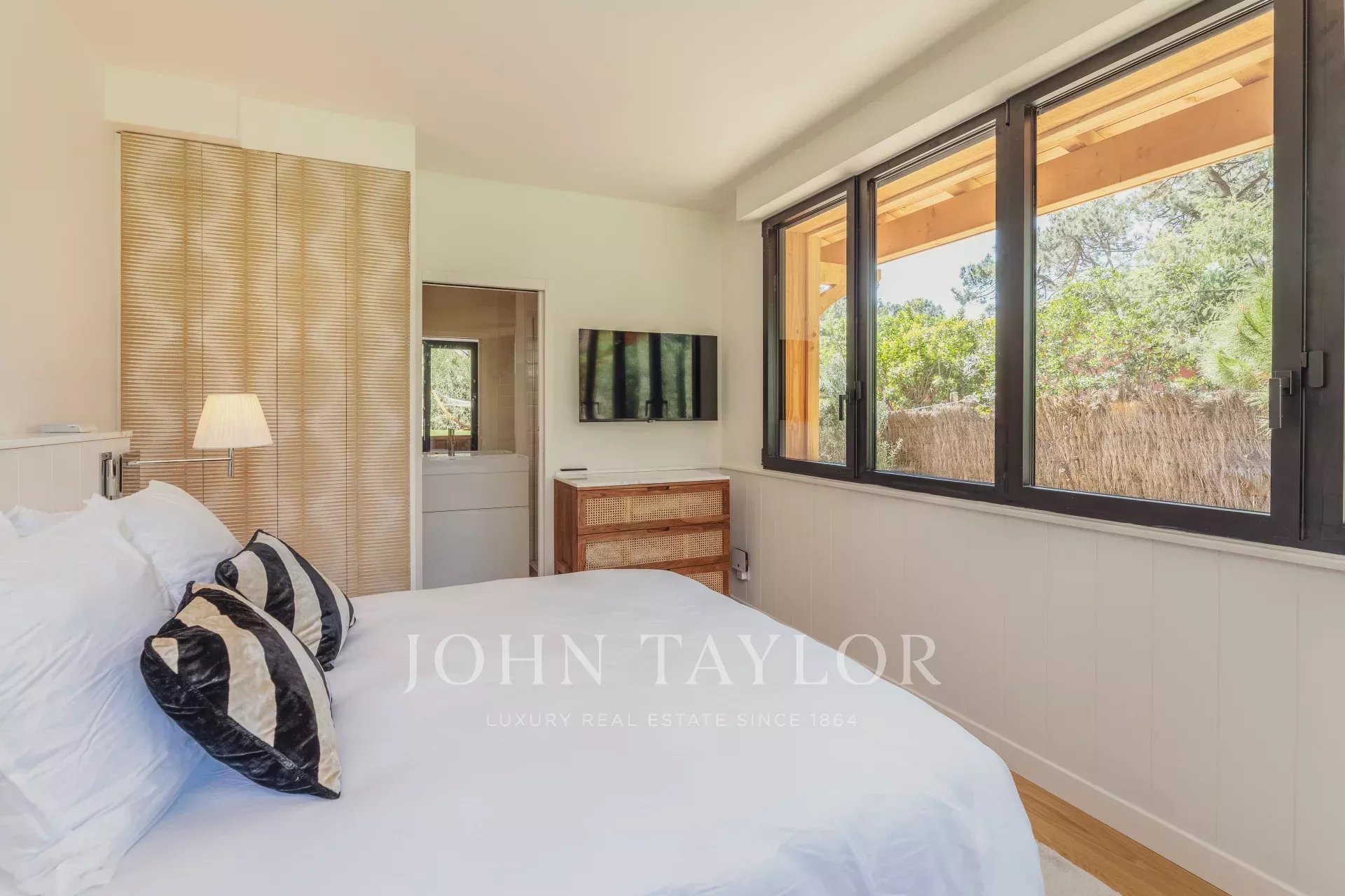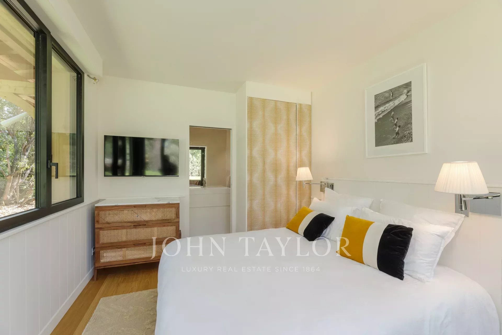 La villa ofrece cinco suites, dos de las cuales cuentan con acceso independiente para una total privacidad. Todo el piso superior está dedicado a la suite principal, donde el refinamiento y la comodidad se combinan para crear un espacio acogedor. Cada habitación está equipada con ropa de cama de alta gama digna de los hoteles más prestigiosos, prometiendo noches tan placenteras como tus días soleados.