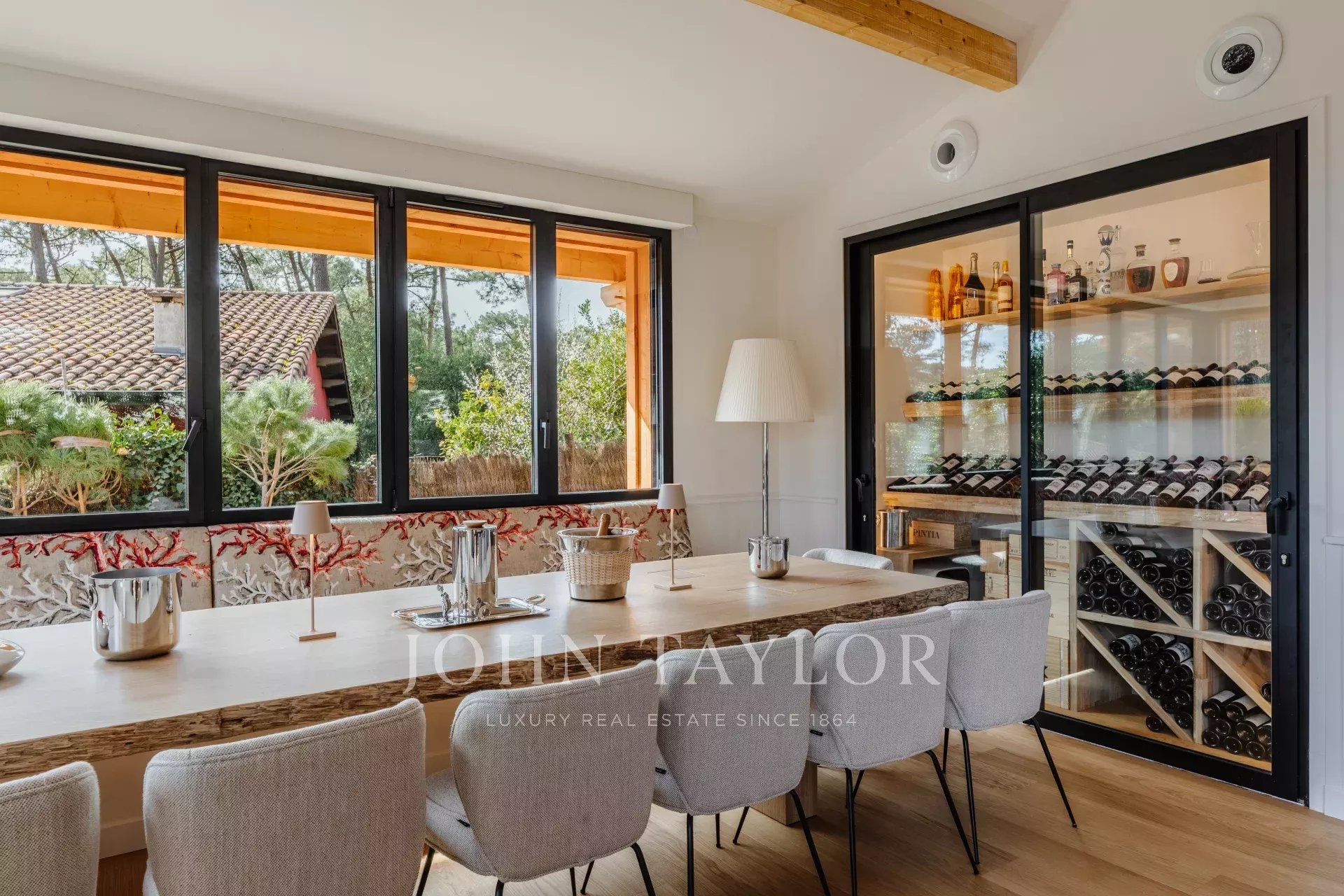 En este universo totalmente domotizado, con una decoración sofisticada y refinada donde cada elemento tiene su importancia, déjate tentar por una exclusiva selección de grandes vinos clasificados y puros disponibles bajo petición, o elige excursiones en barco personalizadas para explorar las aguas del estuario.