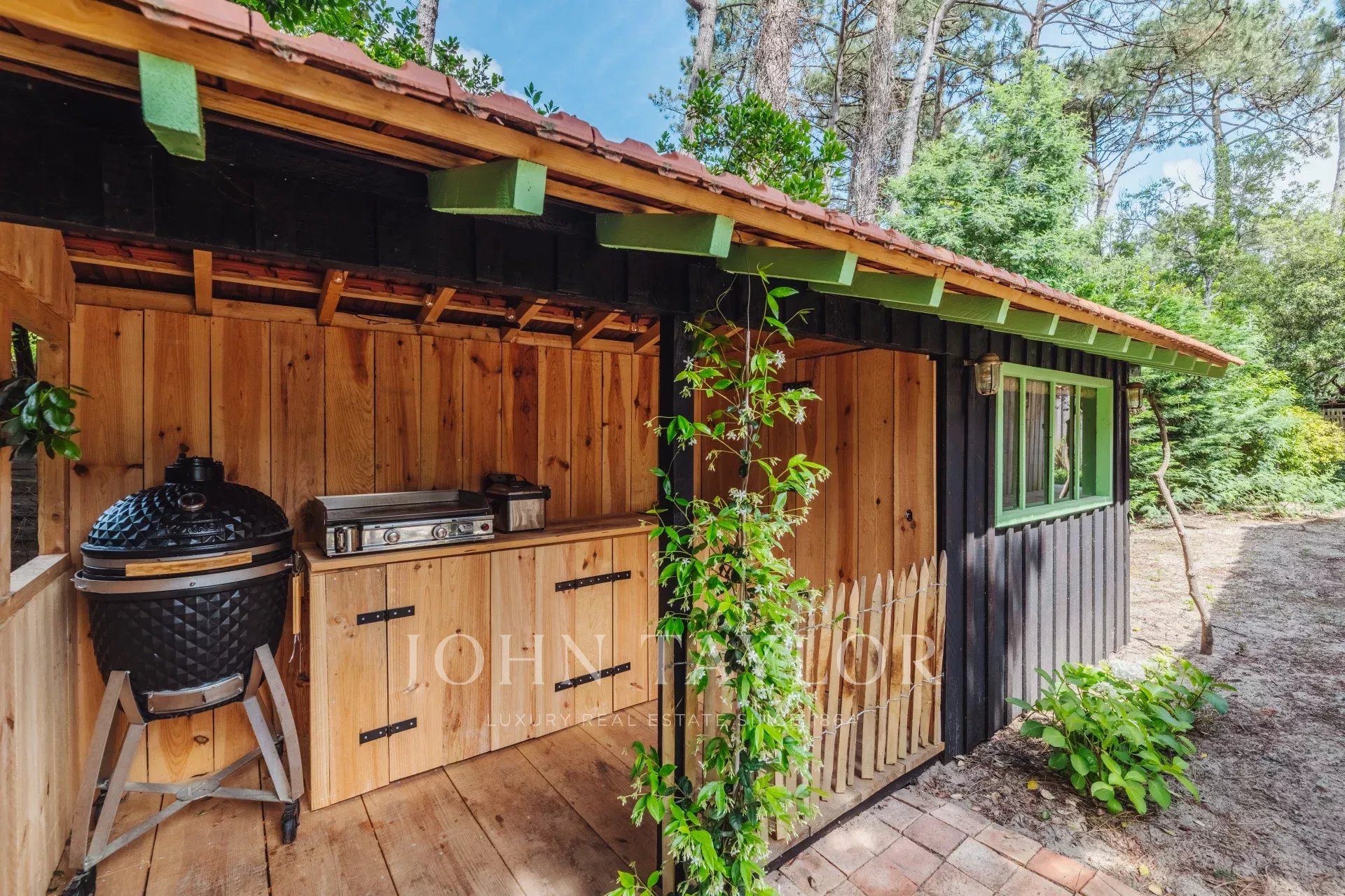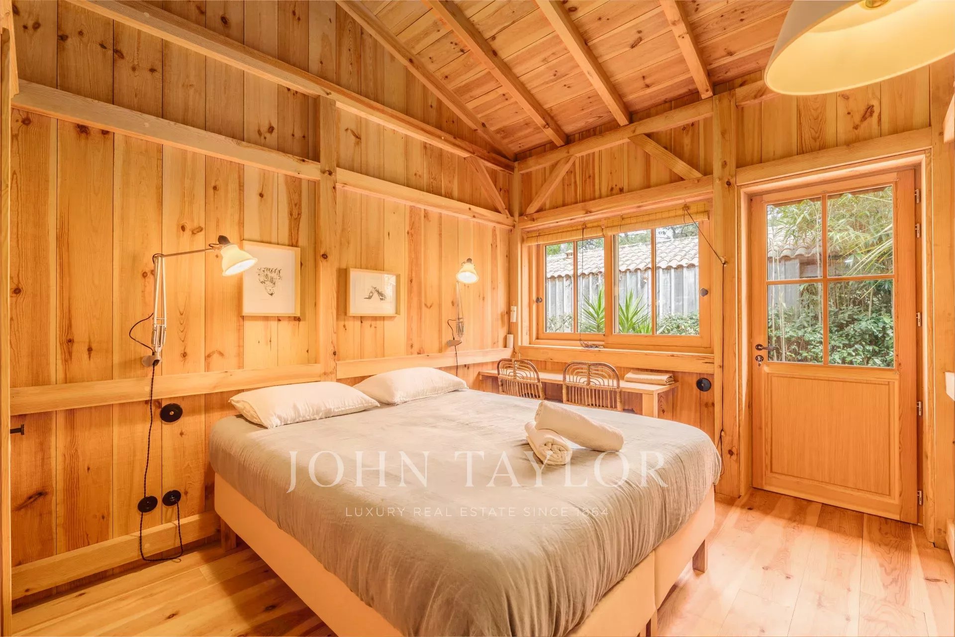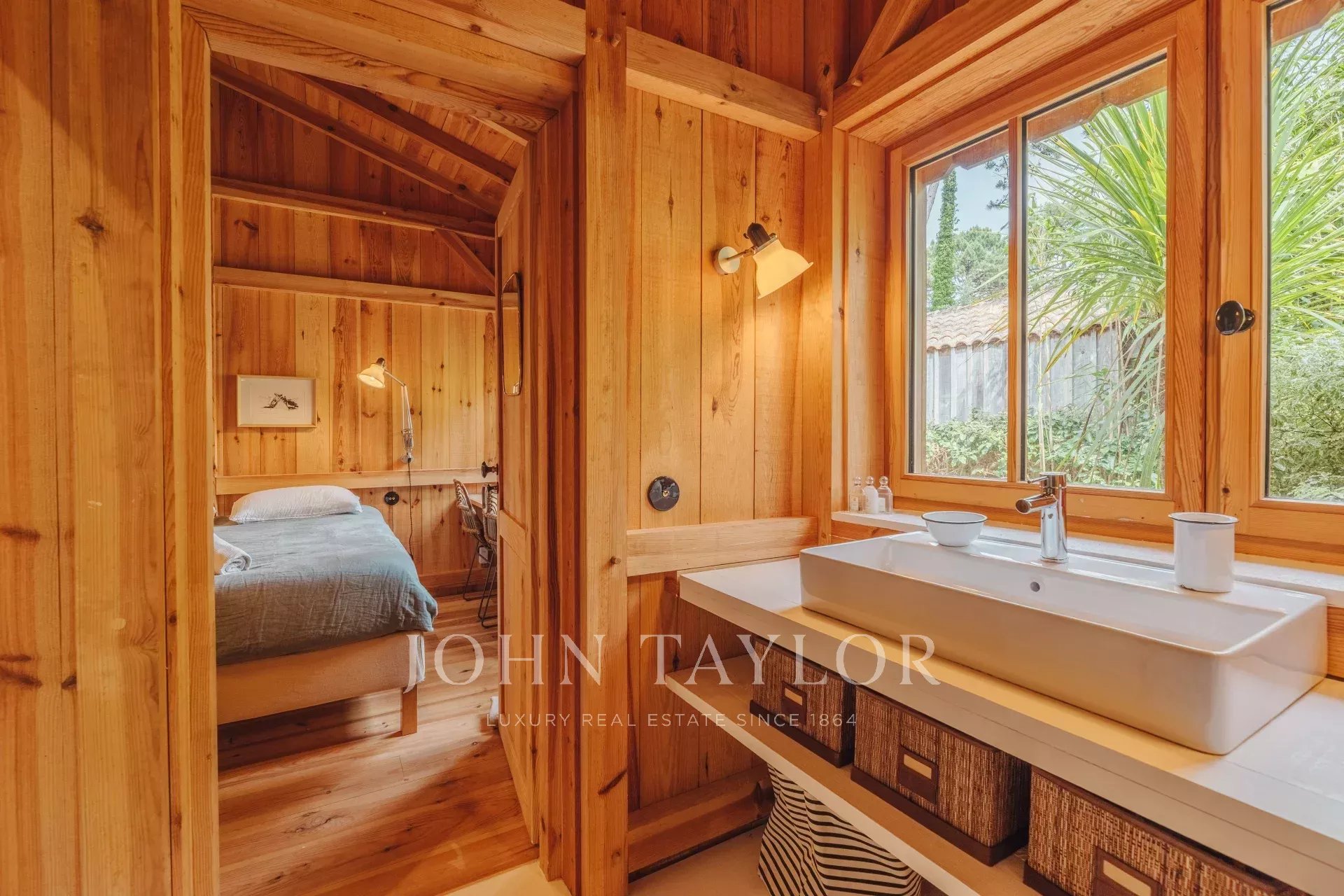 Con su arquitectura auténtica, emblemática de Cap-Ferret, en el corazón de un jardín verde, esta villa de una sola planta te transportará a un refugio atemporal y te garantizará unas vacaciones en total tranquilidad.