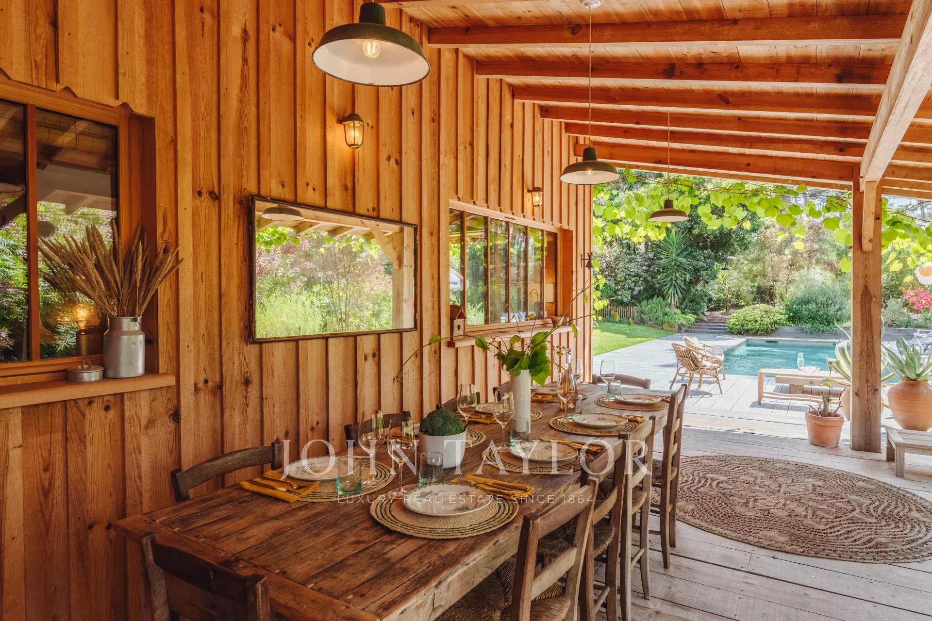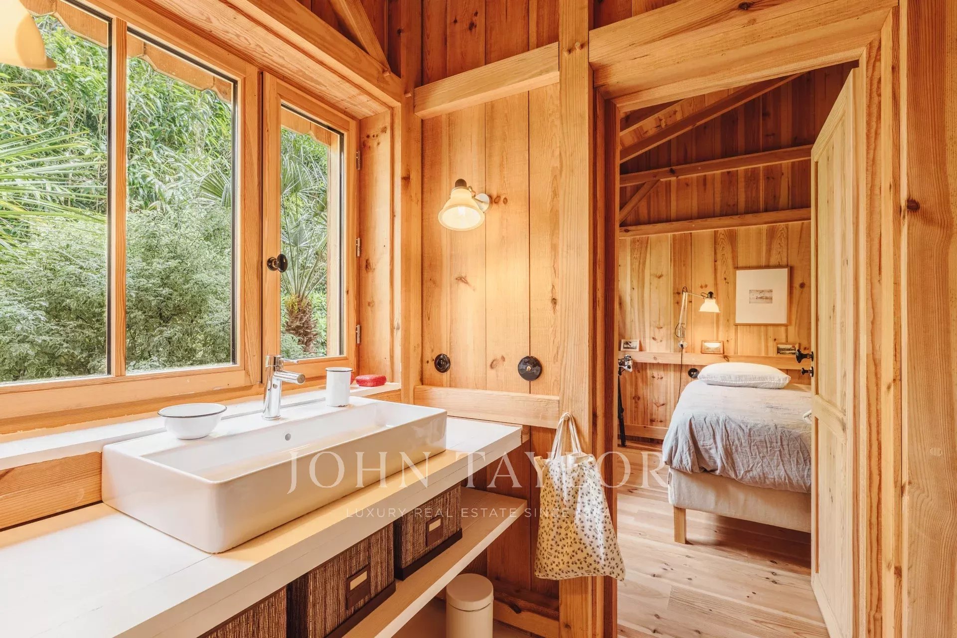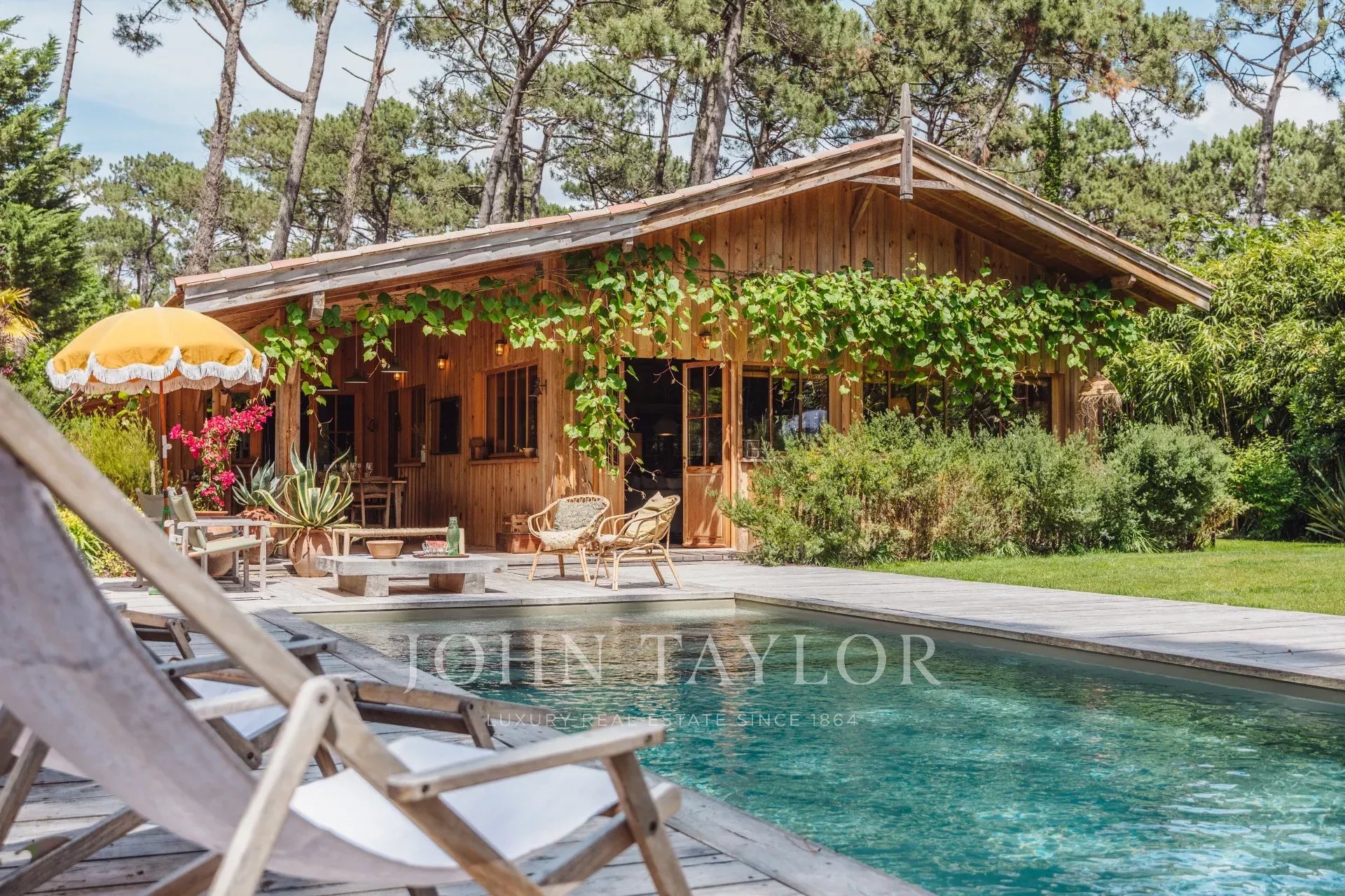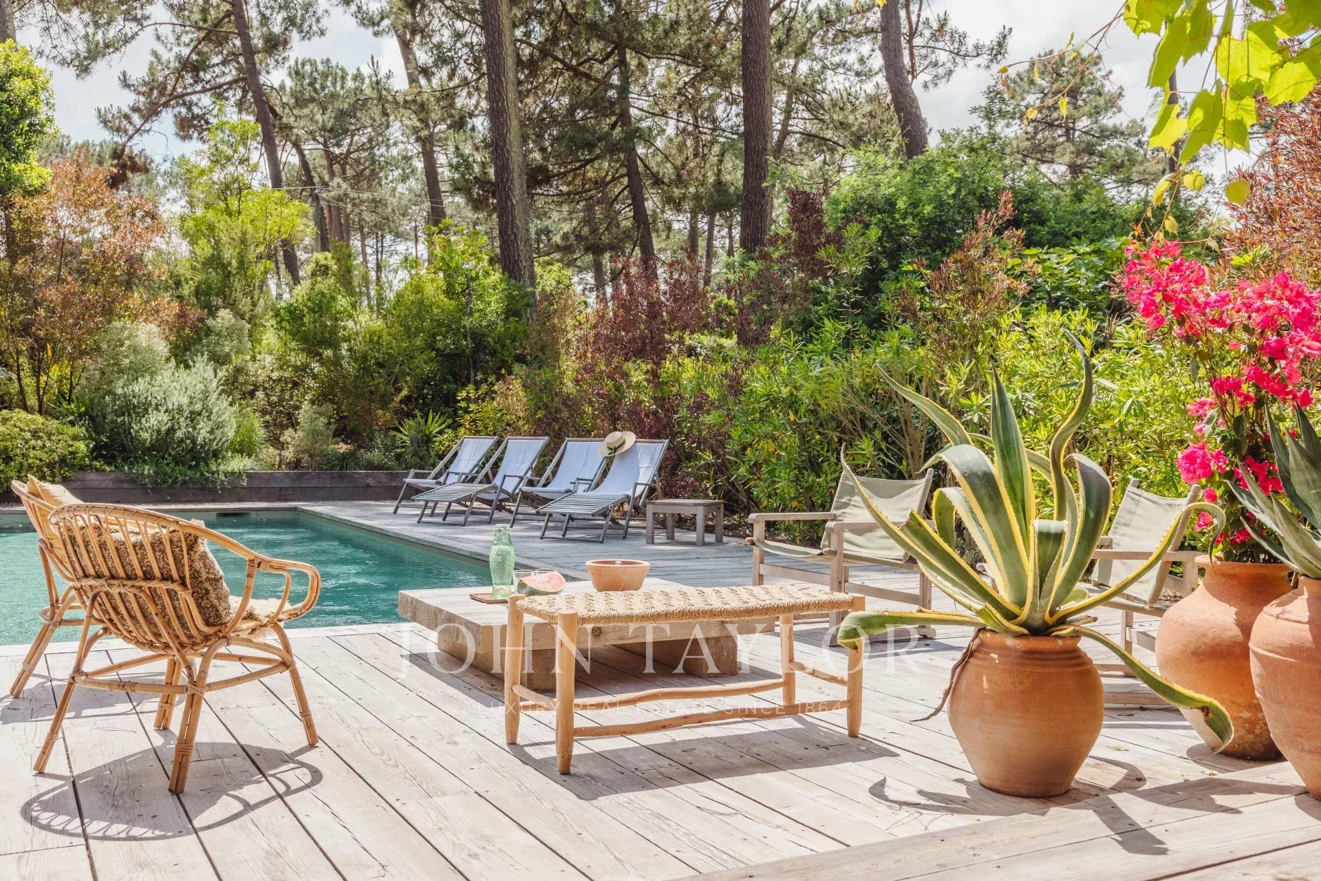 Con su arquitectura auténtica, emblemática de Cap-Ferret, en el corazón de un jardín verde, esta villa de una sola planta te transportará a un refugio atemporal y te garantizará unas vacaciones en total tranquilidad.