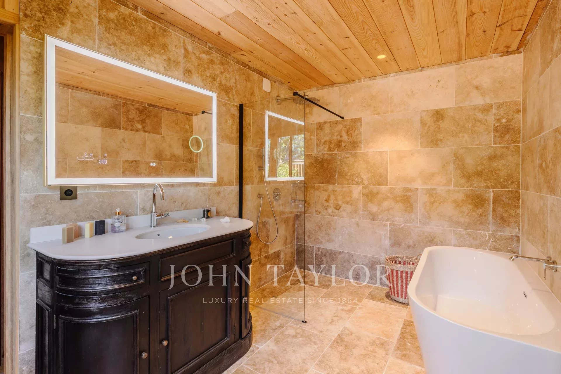En el interior, una amplia sala de estar llena de luz, elegantemente decorada, te permitirá sumergirte por completo en el ambiente local. La villa cuenta con 5 habitaciones, cada una con su propio baño y aseo, garantizando privacidad y comodidad. Tres suites y un estudio con acceso independiente se encuentran en la villa principal, mientras que dos habitaciones adicionales están situadas en un anexo junto al agua.
