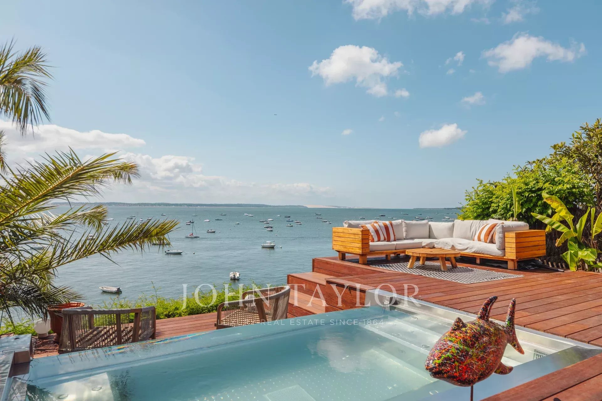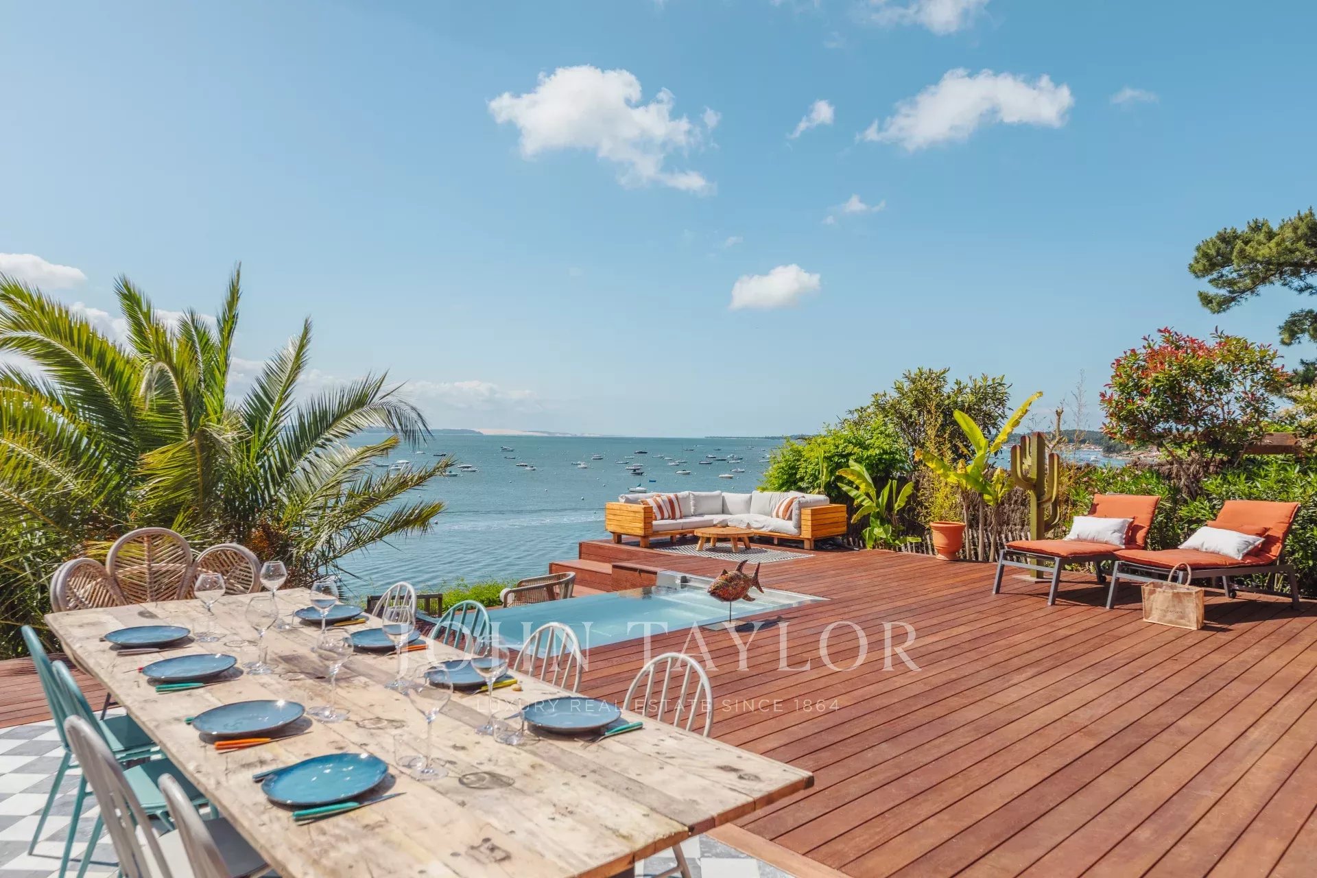 Villa Raya cuenta con acceso directo al Bassin a través de su muelle privado, ideal para actividades acuáticas. Vive al ritmo de las mareas durante una estancia a medida en esta villa que seguramente te encantará.