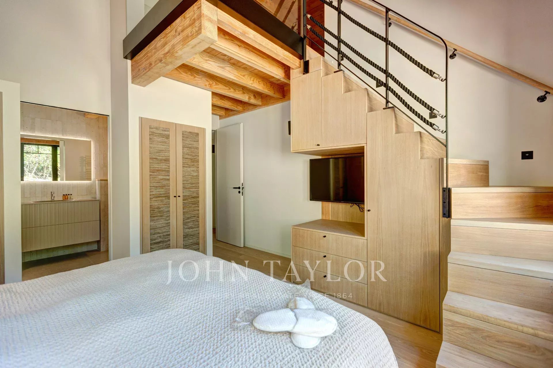 Bienvenidos a Villa Mori, una magnífica casa de madera situada sobre las colinas del Ferret, en el encantador y animado pueblo de Canon. Esta propiedad combina diseño, calidad y confort, con una atención meticulosa a los detalles para satisfacer a los huéspedes más exigentes.