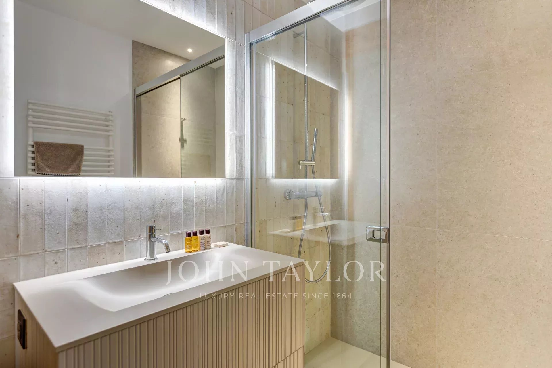 El magnífico salón de 80 m² es ideal para momentos inolvidables, ya sea durante cenas familiares o encuentros con amigos. La amplia cocina abierta y completamente equipada es el lugar perfecto para reunirse durante sus estancias. El espacio interior se extiende armoniosamente hacia la terraza, ofreciendo un área multifuncional y cómoda junto a la piscina climatizada, ideal para relajarse en cualquier momento del día.