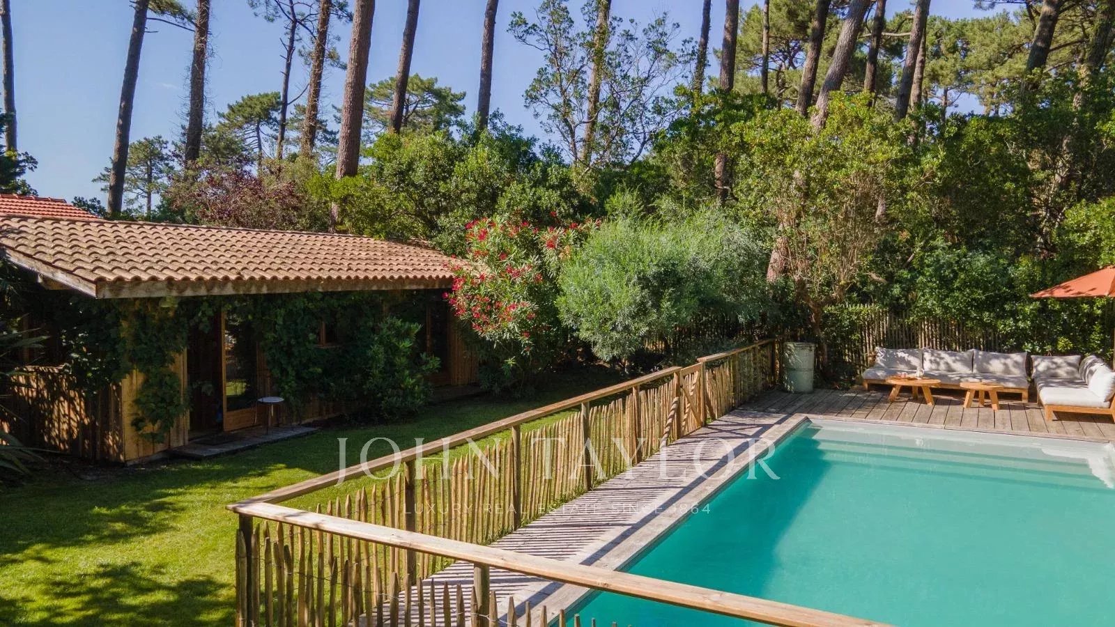 Ubicada en el corazón del vibrante pueblo de Piraillan, en la prestigiosa península de Cap-Ferret, La Cabane des Pins es una villa de estilo landés cuidadosamente renovada que ofrece un ambiente bohemio y chic, ideal para estancias en familia o con amigos.