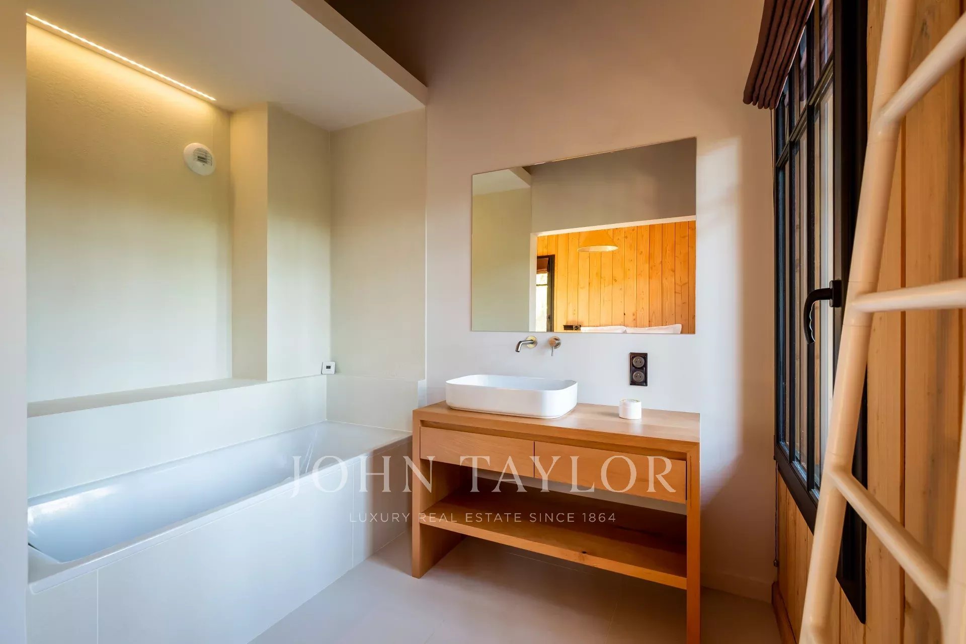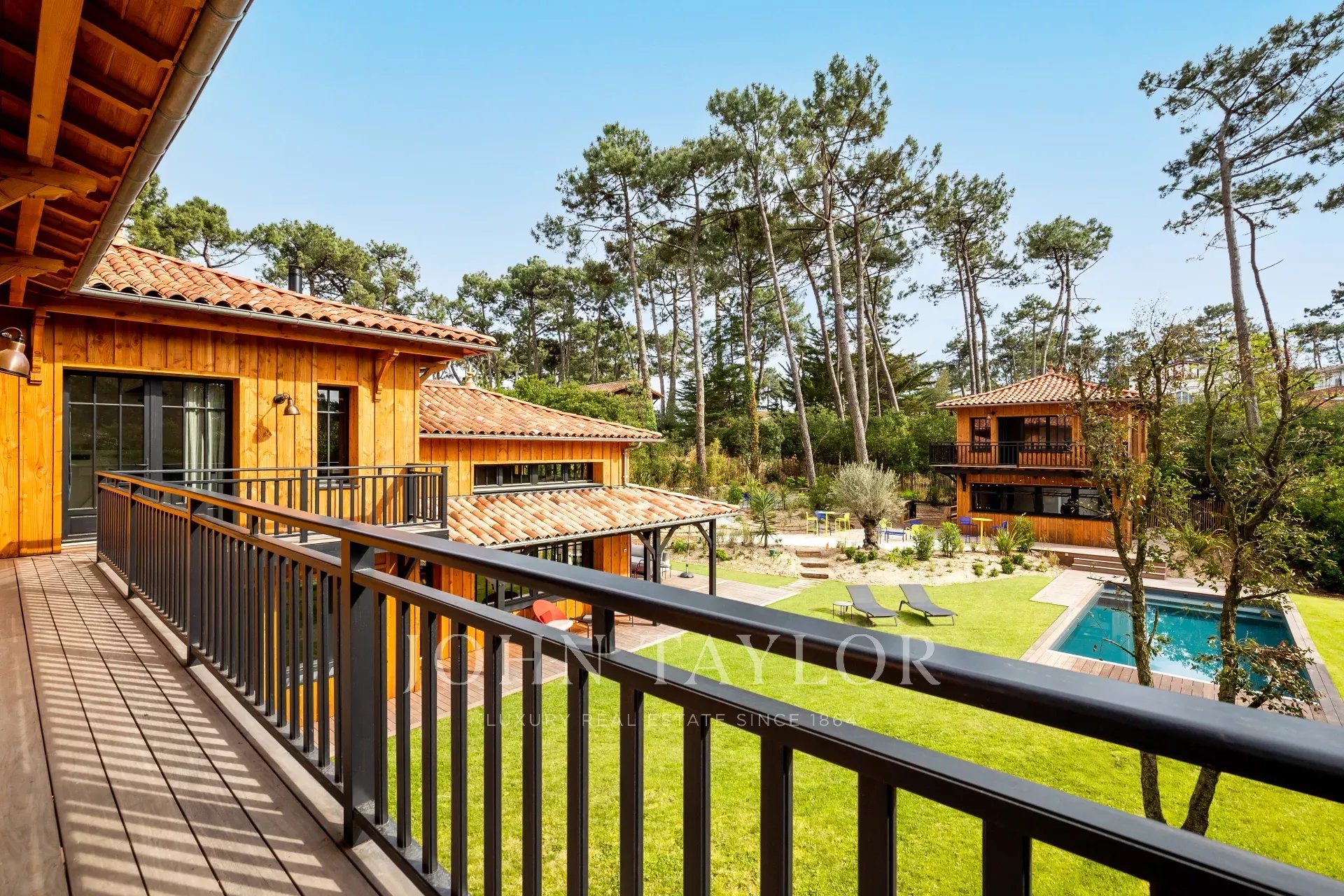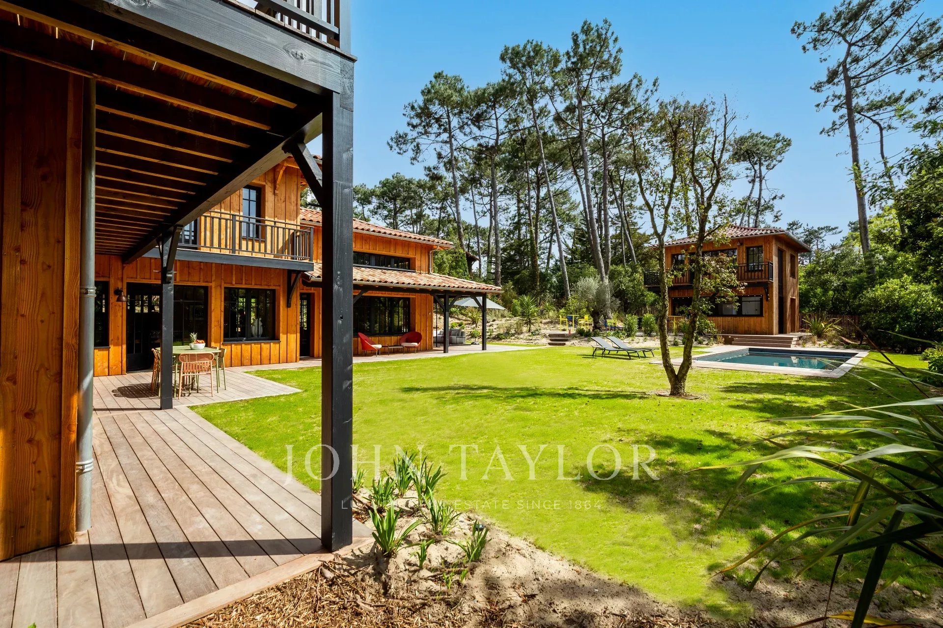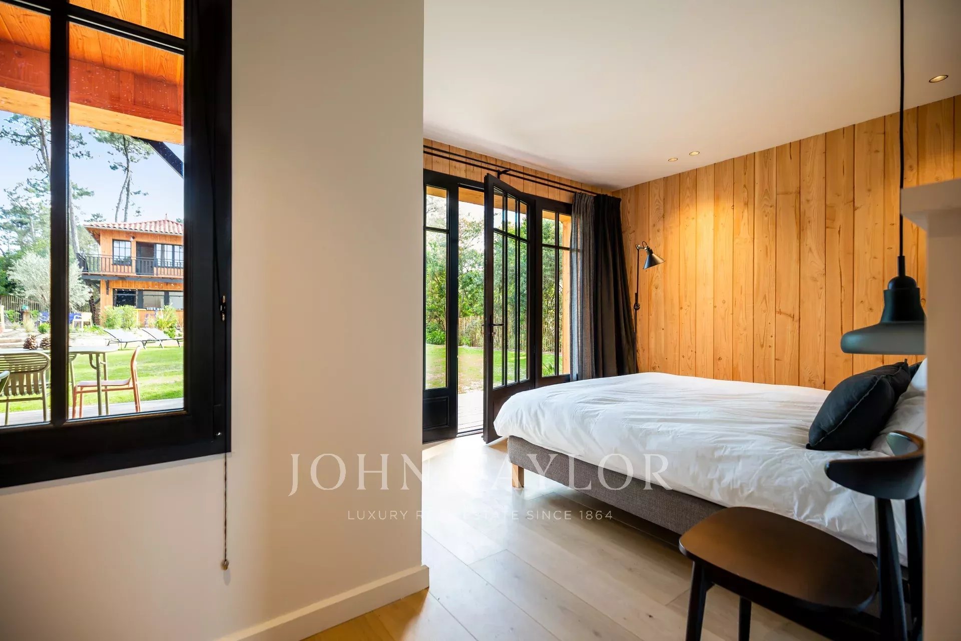 Esta villa de diseño en madera combina el encanto natural con la sofisticación contemporánea para ofrecer una experiencia única. Diseñada para alojar hasta 14 personas, se distribuye entre una casa principal y un anexo, rodeados de un amplio jardín paisajístico.