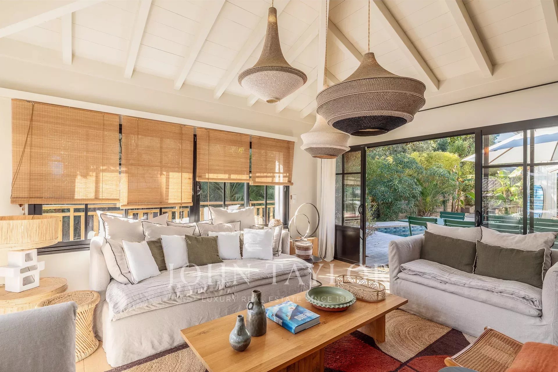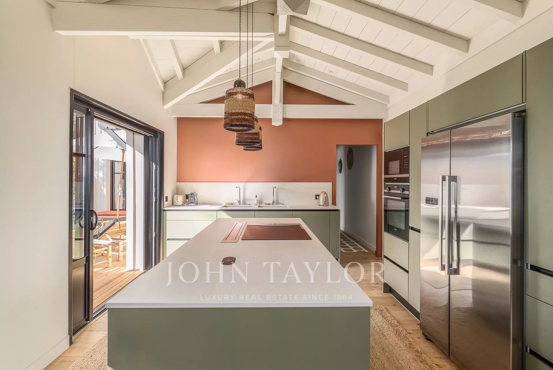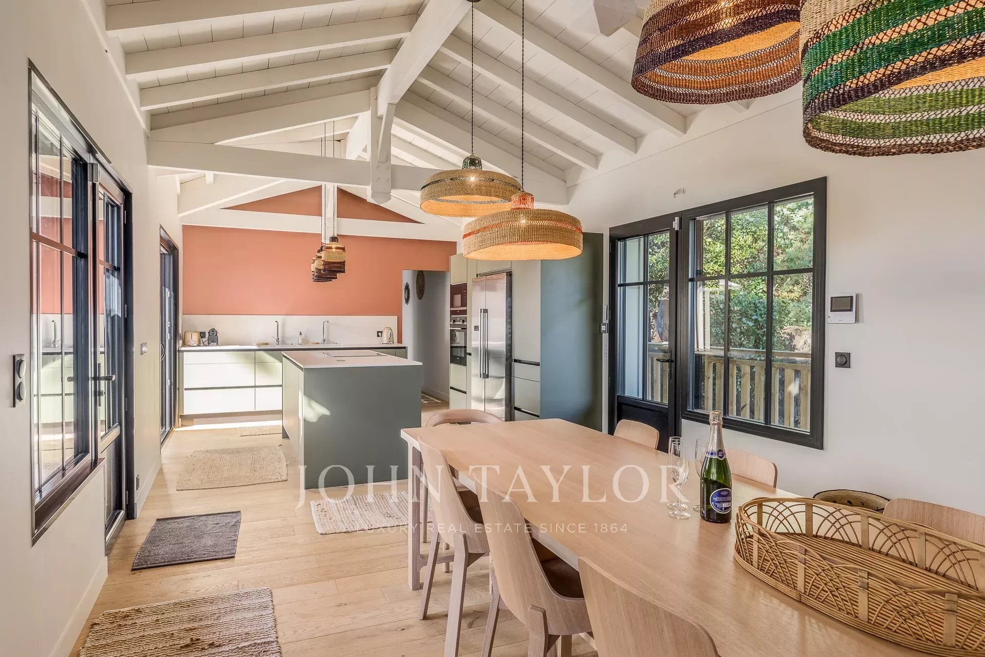 Las amplias y luminosas zonas de estar se abren al exterior, donde la gran terraza, la piscina y la zona de comedor invitan a disfrutar al máximo del soleado verano de Presqu'île. La elegante cocina, totalmente equipada, se integra armoniosamente en el salón, por lo que resulta ideal para recibir a familiares y amigos.