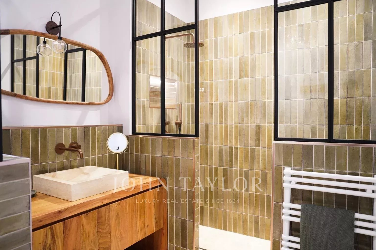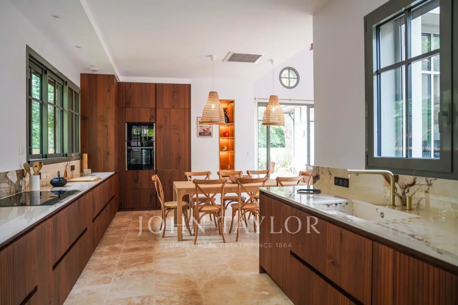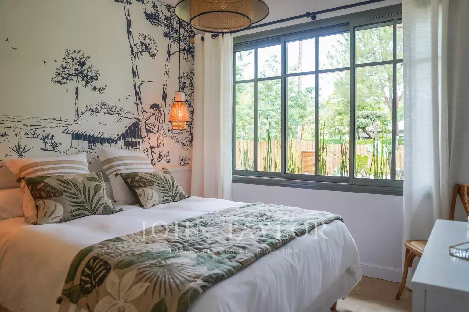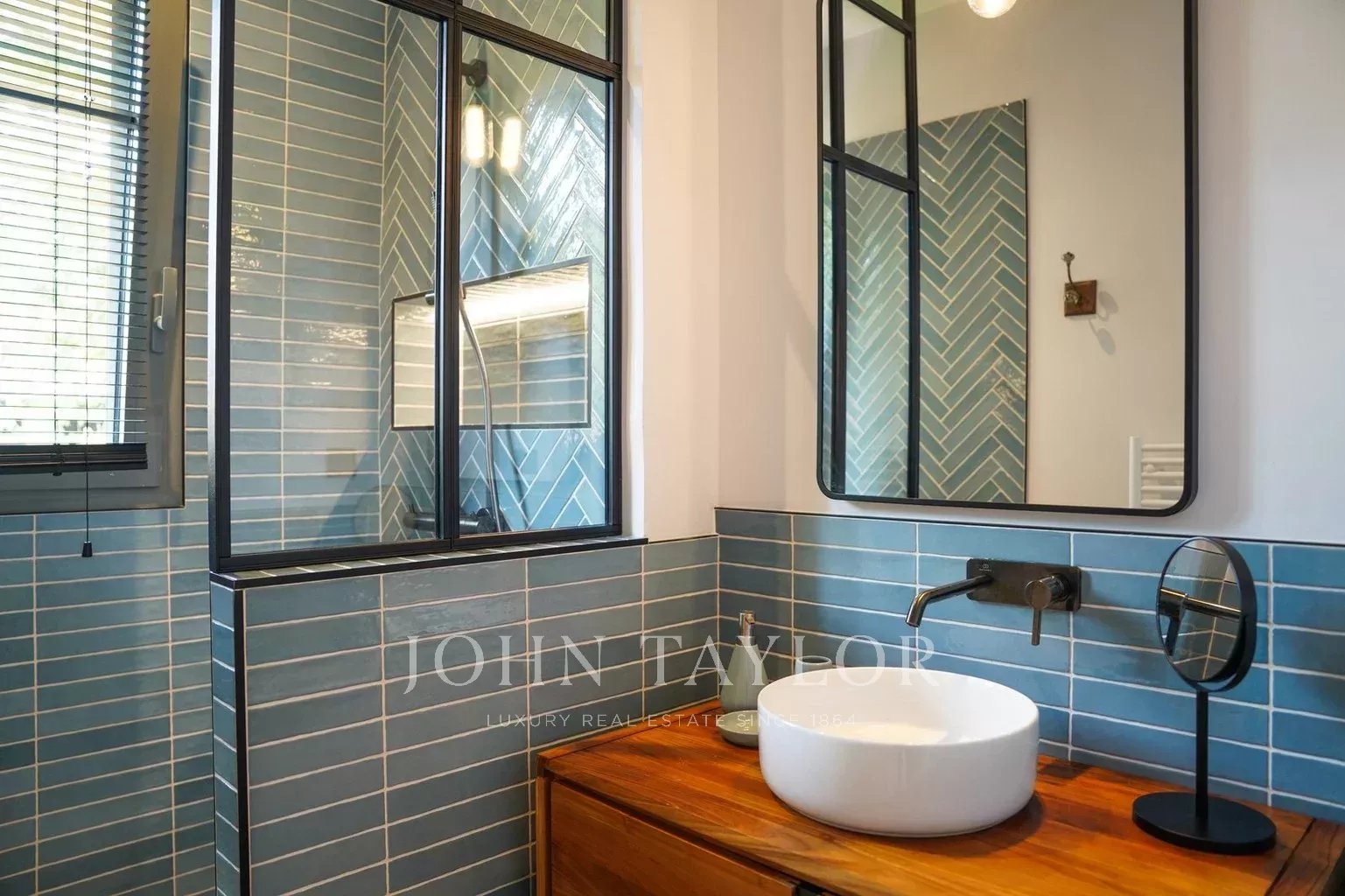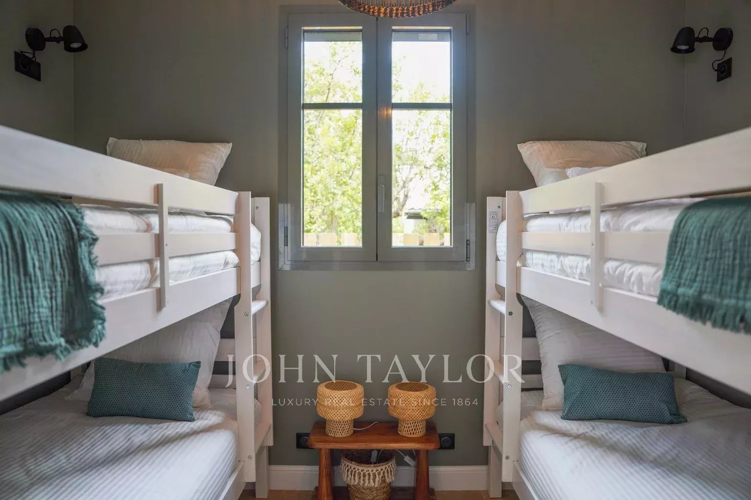 Dos terrazas orientadas al este y al oeste permiten disfrutar del sol a cualquier hora del día. En el exterior, hay una piscina climatizada de 6 x 2,5 m protegida por una persiana enrollable sumergida, una cocina de verano con plancha y fregadero, un WC exterior y una pista de petanca iluminada por luces "guinguette". El mobiliario de jardín FERMOB incluye una gran mesa para 10 a 12 personas, tumbonas y muebles de jardín.