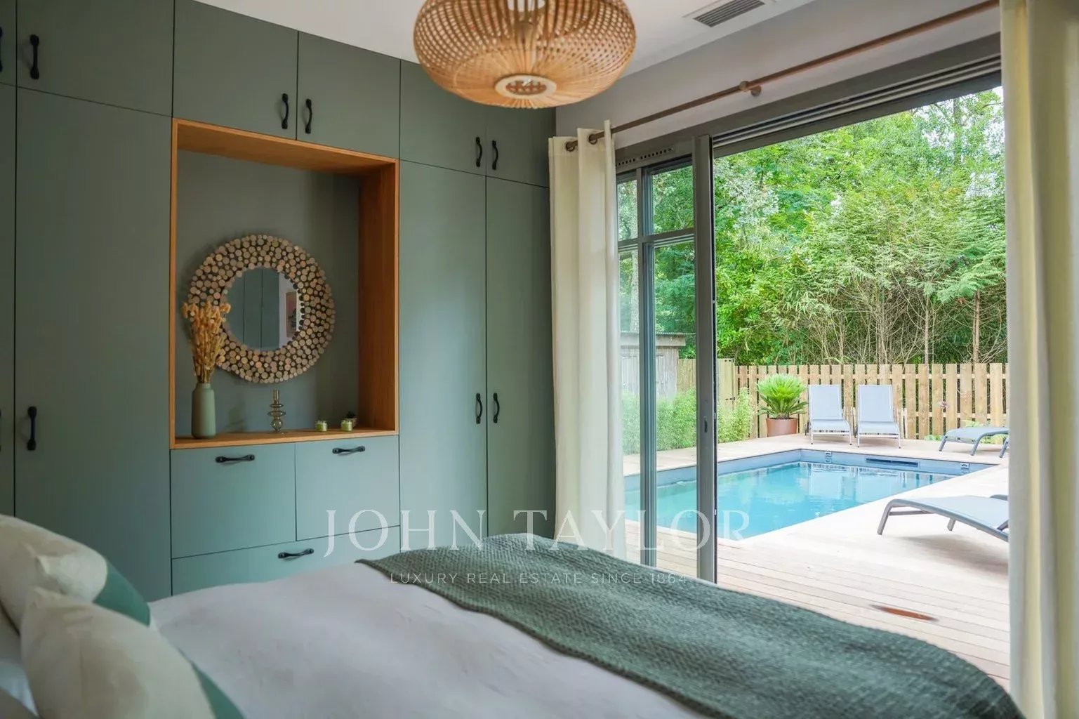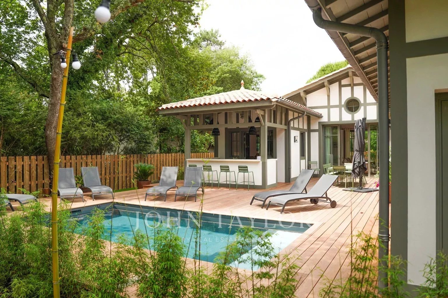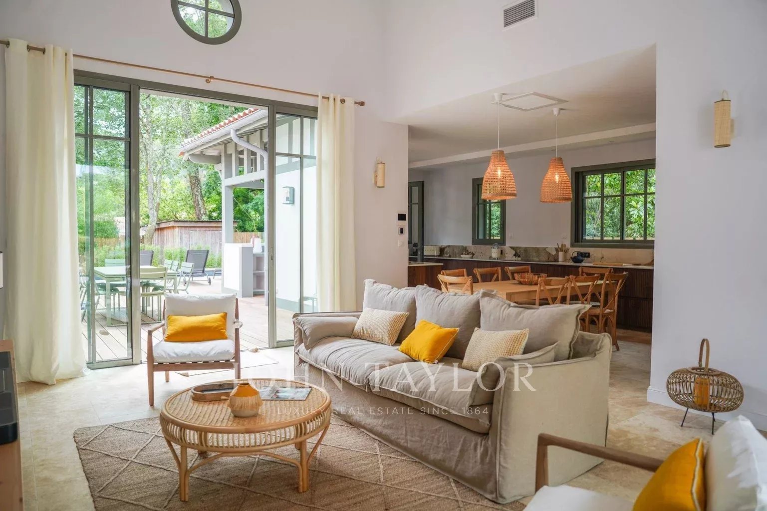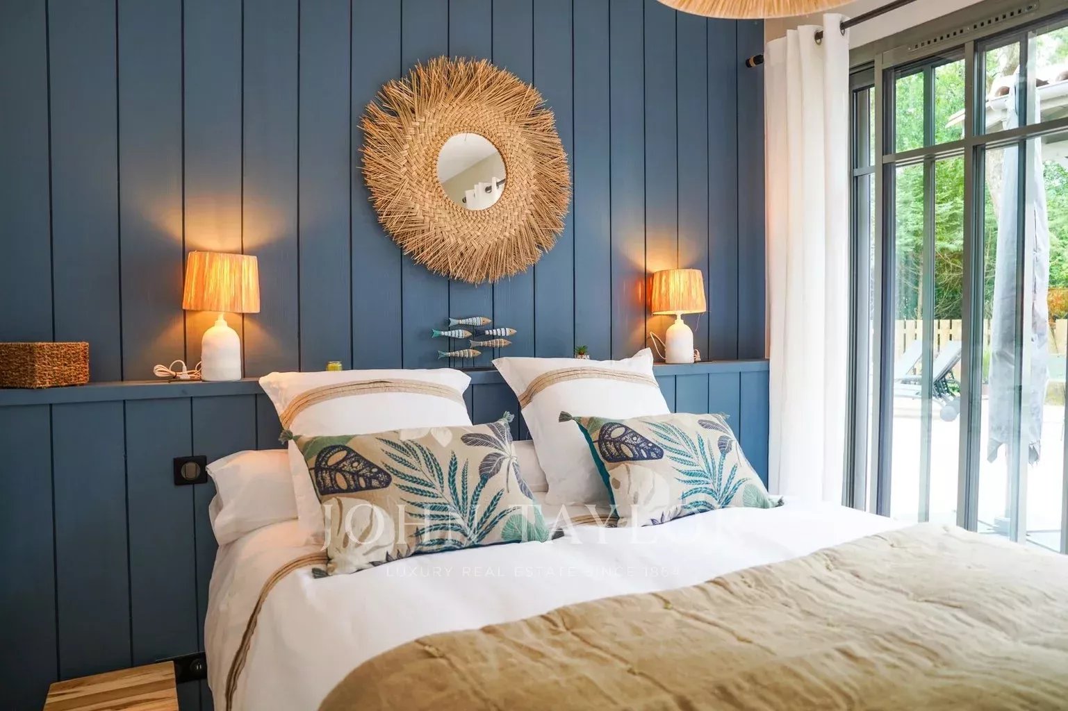 Situada en Petit Piquey, a pocos minutos de la Pointe aux Chevaux, en la península de Cap Ferret, Villa La Musicienne es una nueva propiedad inspirada en las casas vasco-landesas de la cuenca. Tiene capacidad para 12 personas y es ideal para vacaciones en familia o con amigos.