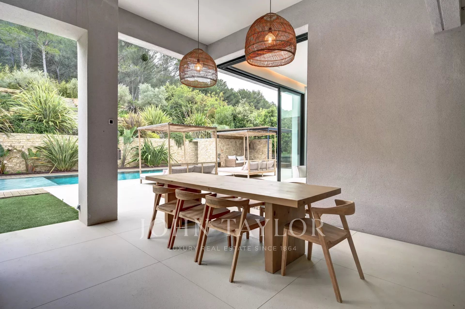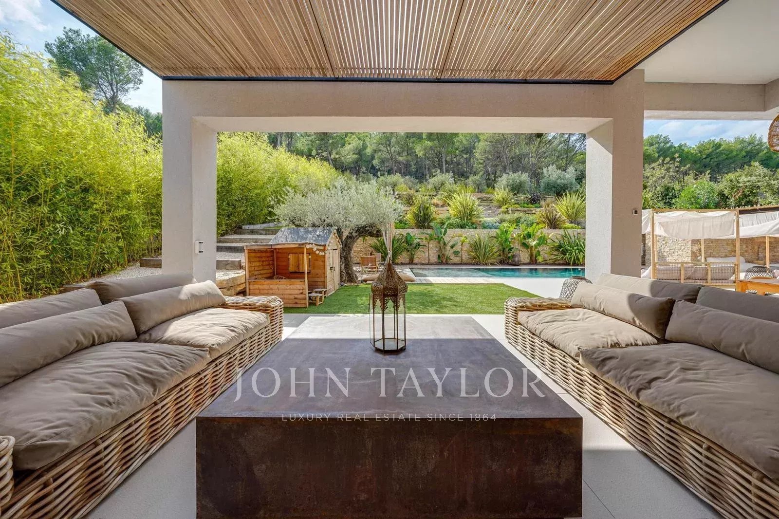 Situada en el corazón del codiciado pueblo de Ventabren, a sólo 20 minutos de Aix-en-Provence, esta villa contemporánea de lujo de unos 350 m² se encuentra en un entorno tranquilo y privilegiado, en un terreno ajardinado de 2.800 m².