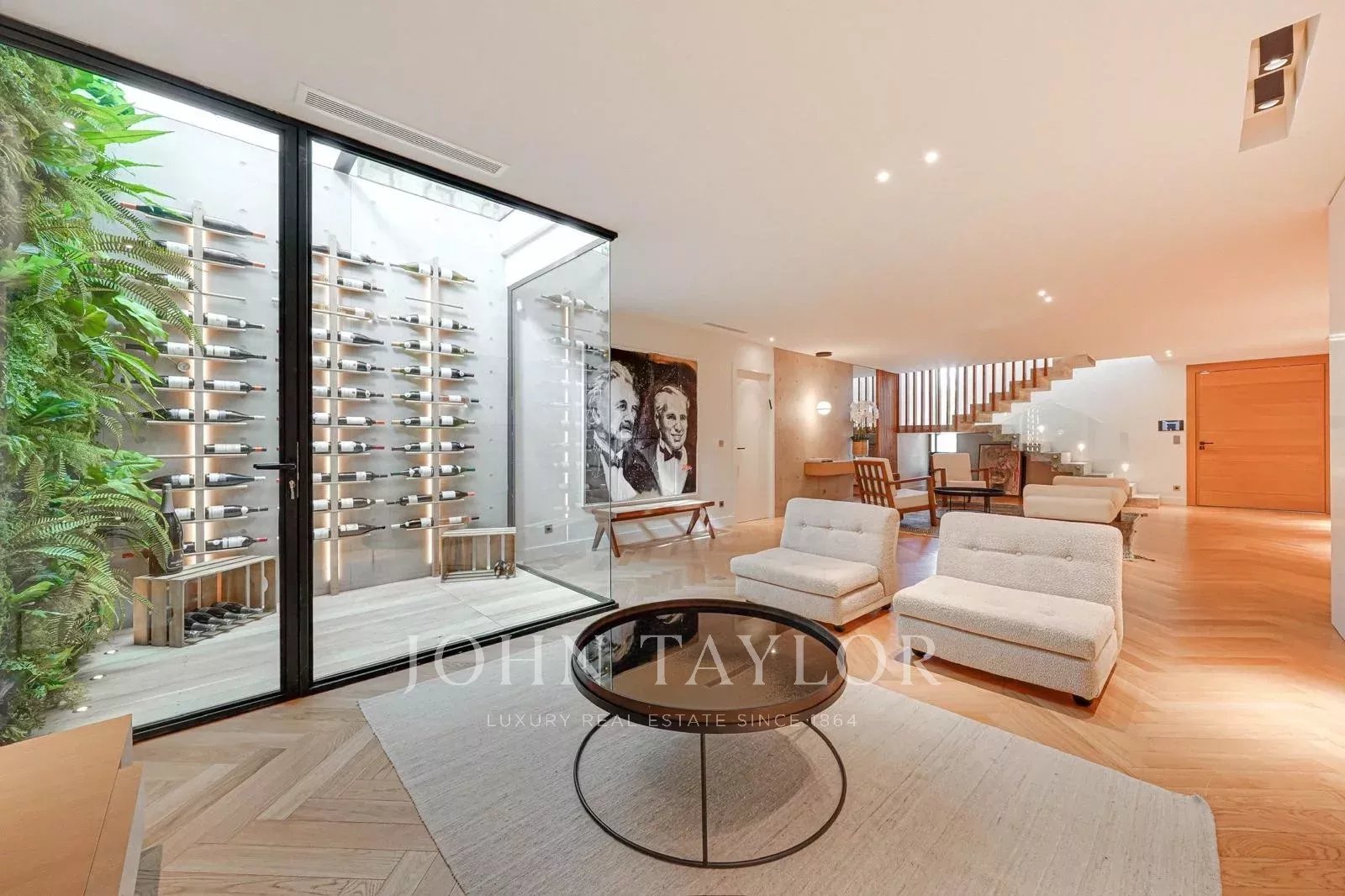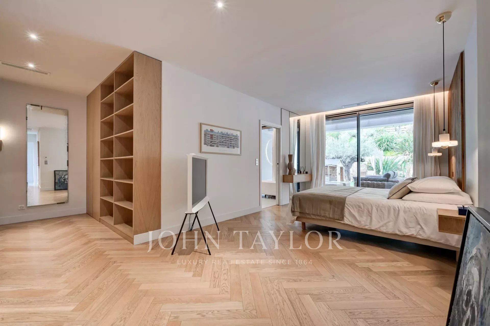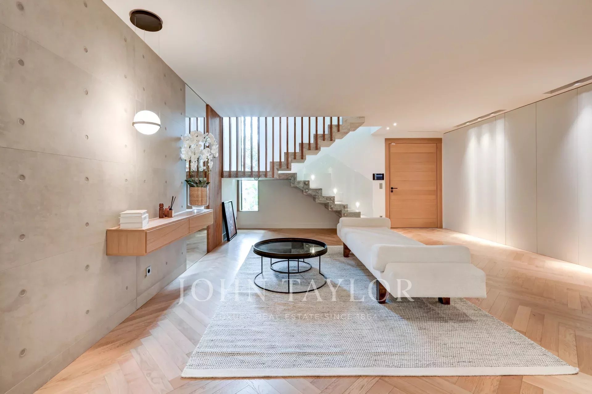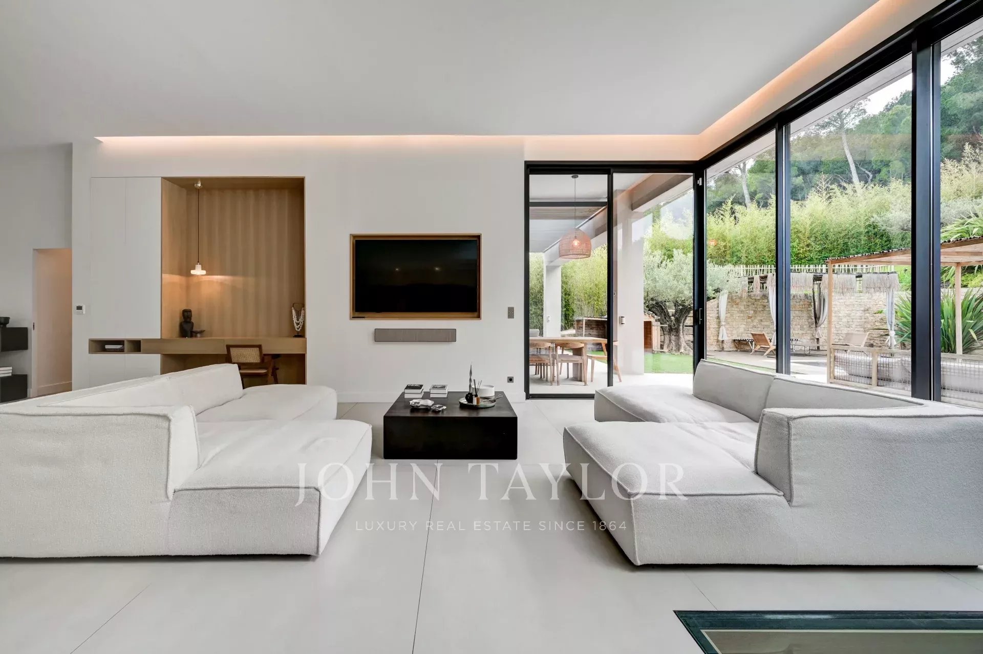 Nada más entrar, un elegante vestíbulo con una bodega acristalada marca la pauta de una propiedad con prestaciones de alta gama. La villa ofrece volúmenes generosos bañados de luz y una fluidez entre las zonas de estar.