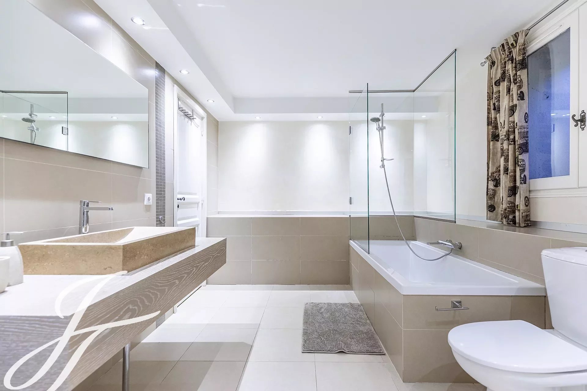 Suite principal (Dormitorio 1): cama doble, balcón privado y cuarto de baño en suite (bañera, lavabo doble, WC)