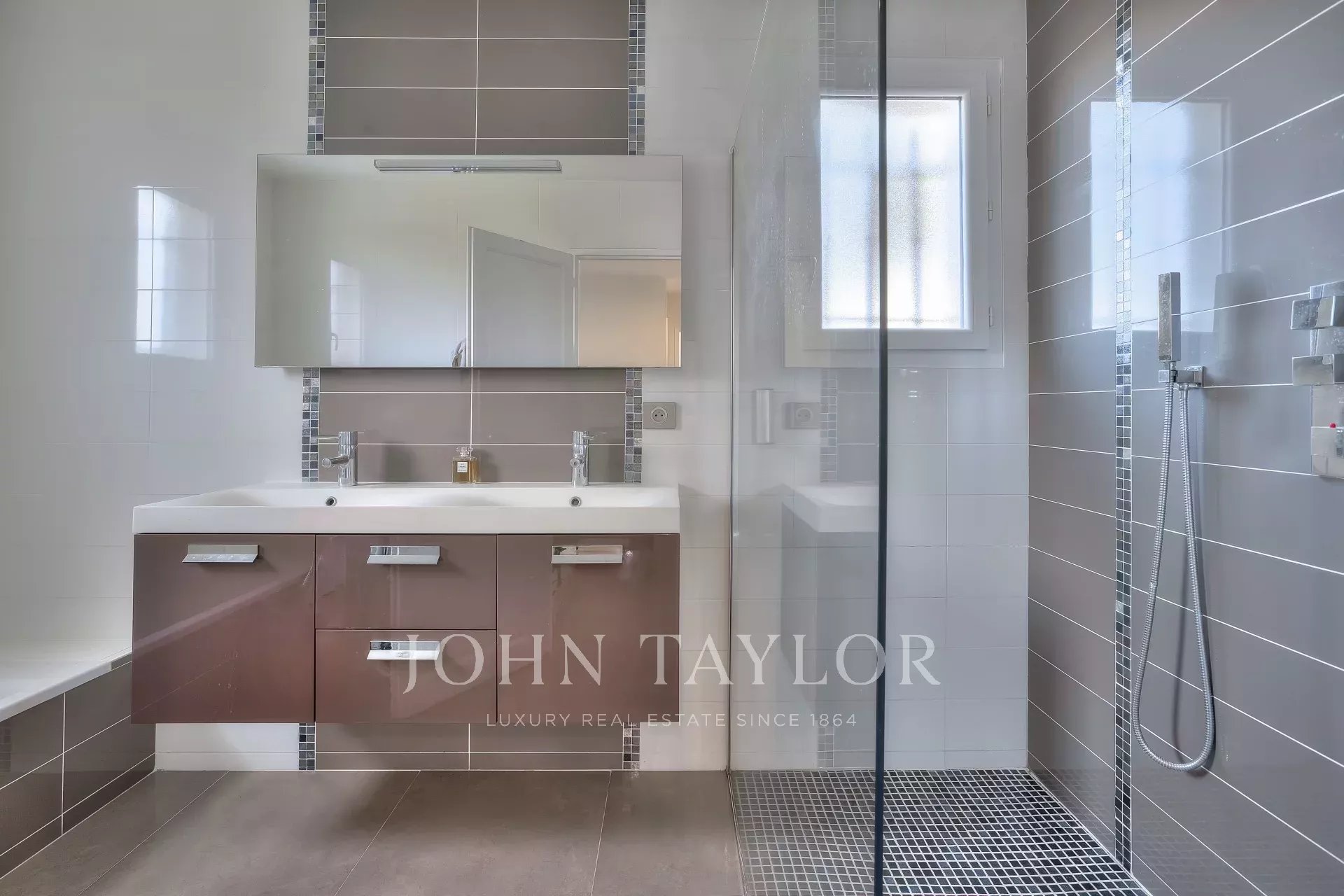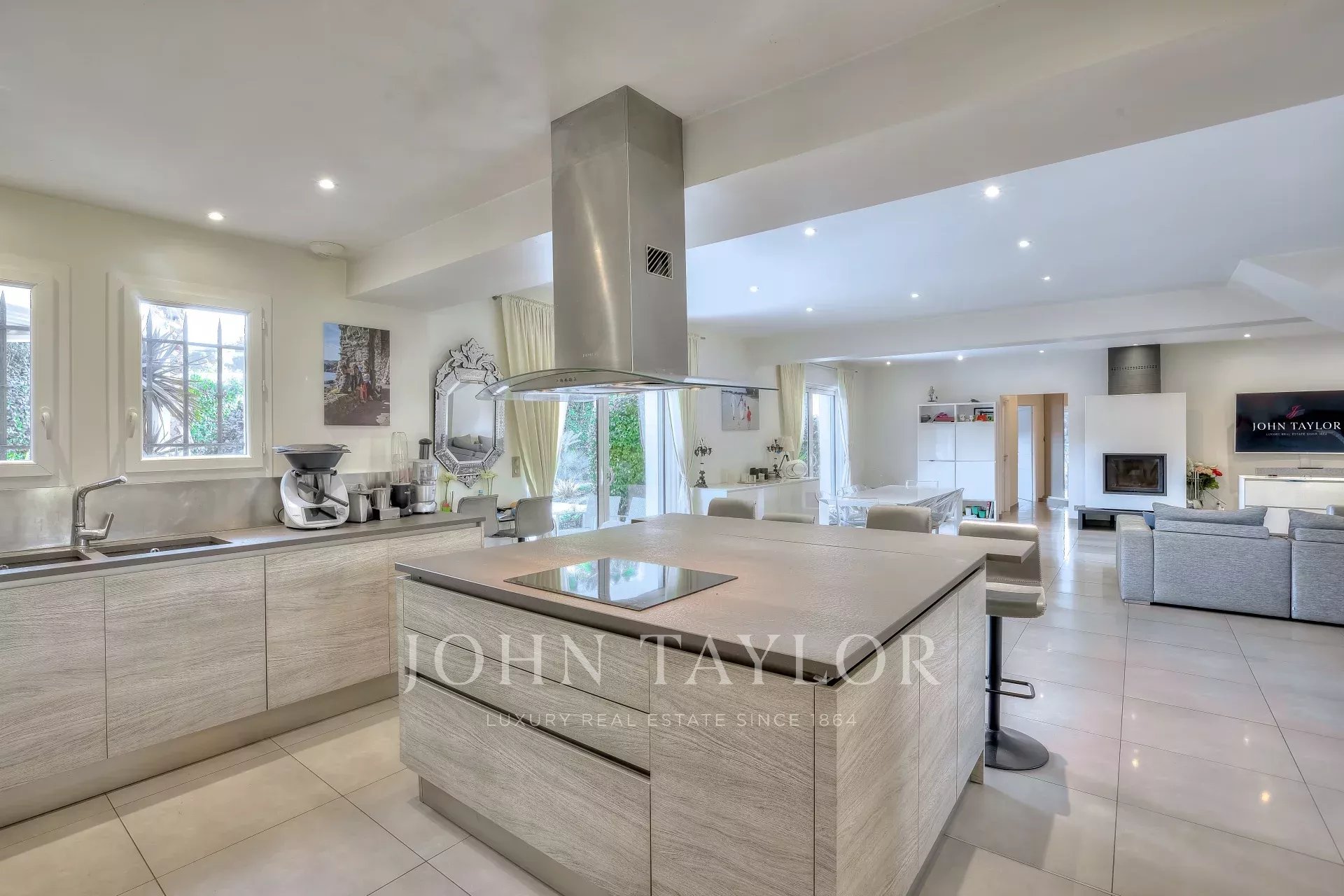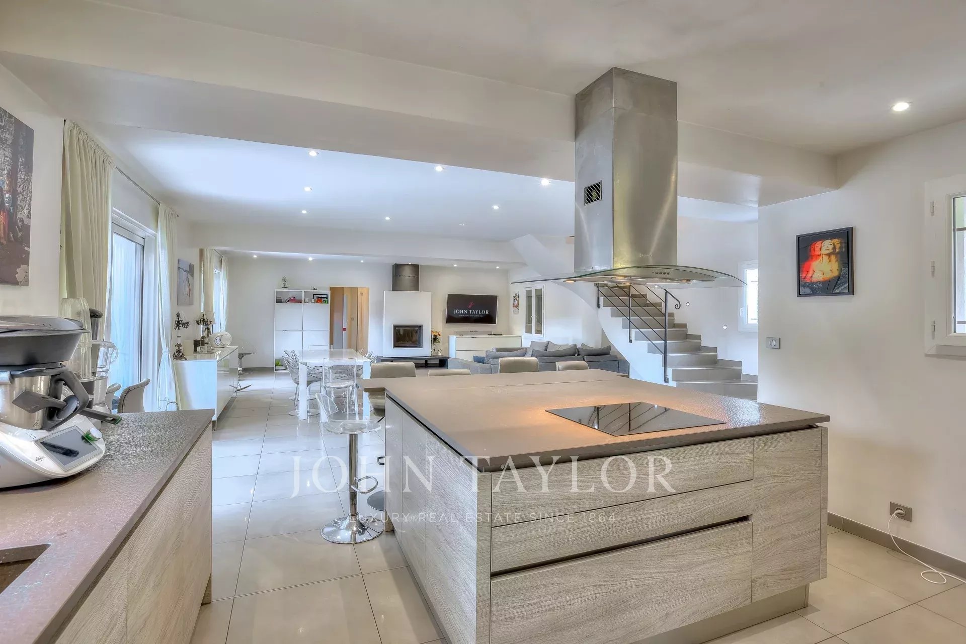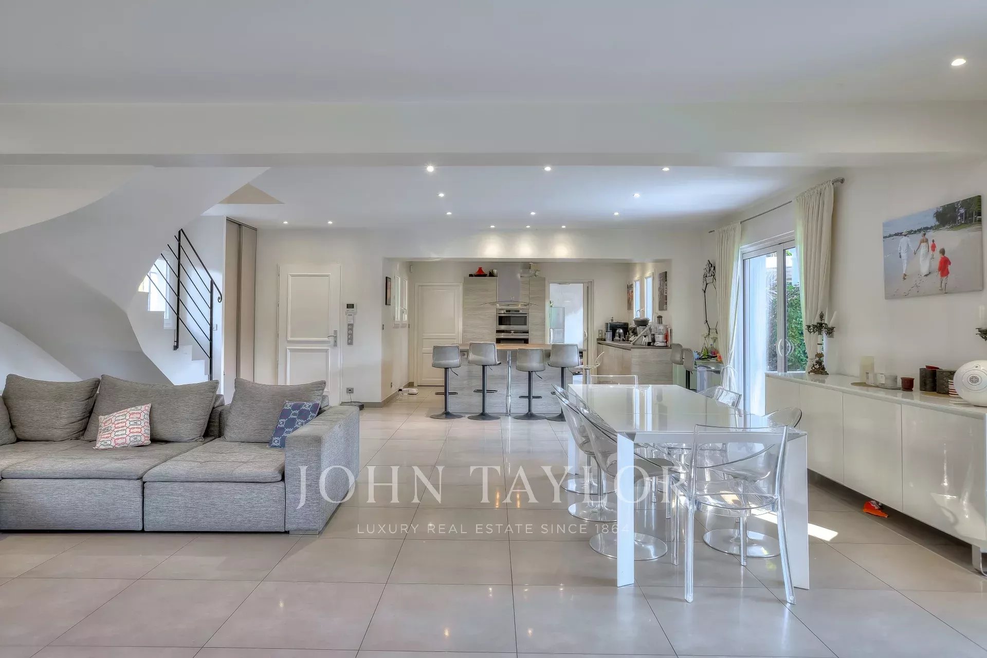 Enclavada en una codiciada zona residencial, esta hermosa villa de arquitectura elegante y contemporánea goza de una ubicación estratégica, a poca distancia del Mougins British International School, la academia de tenis Mouratoglou, la autopista A8 y el parque tecnológico Sophia Antipolis.