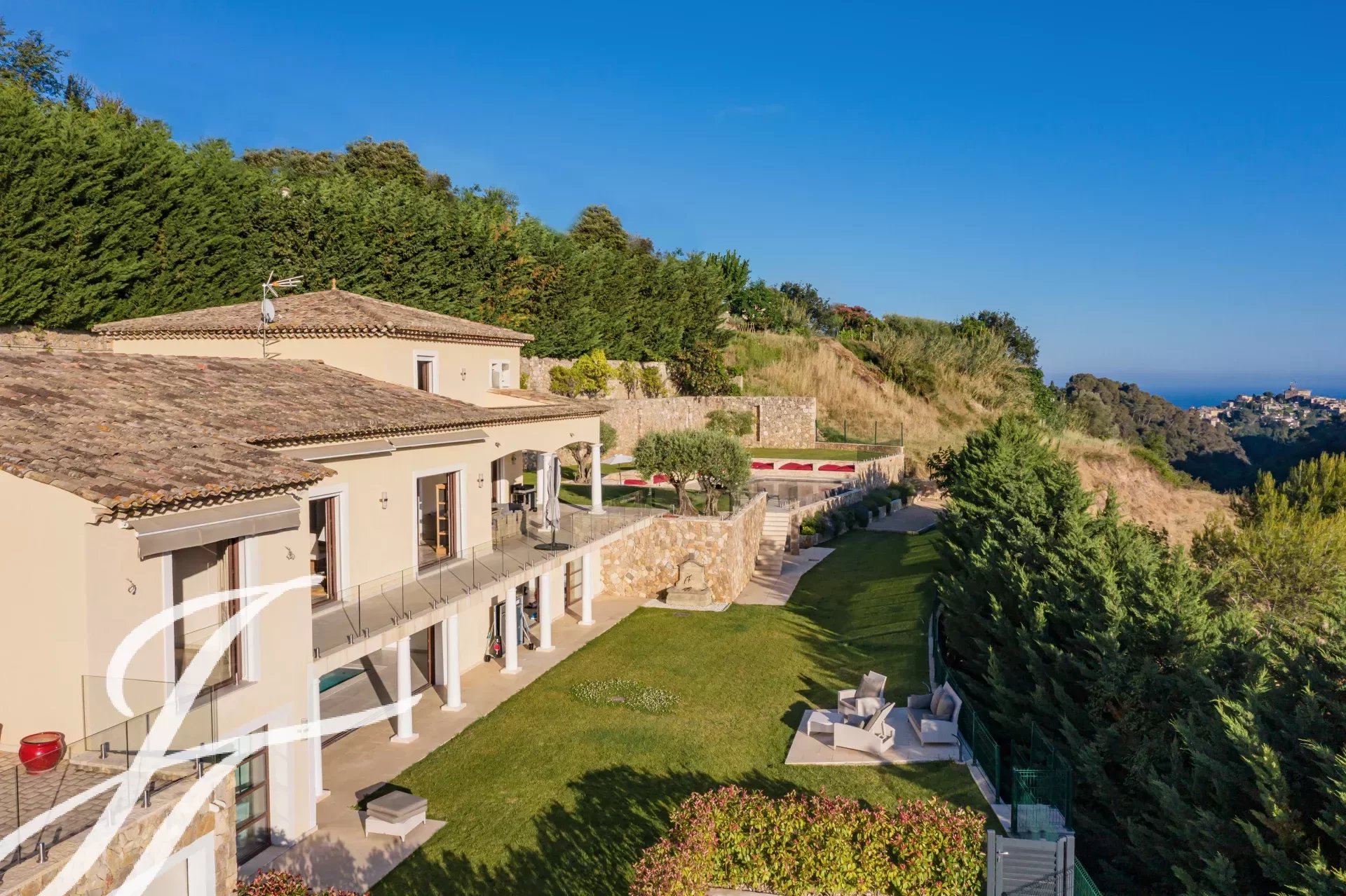 Idealmente situada a sólo 10 minutos de Saint-Paul-de-Vence y de las playas de Cagnes-sur-Mer, y a 15 minutos del aeropuerto de Niza, esta excepcional villa de casi 550 m² está situada en un terreno ajardinado de unos 2.488 m², ofreciendo un entorno de vida lujoso y sereno.