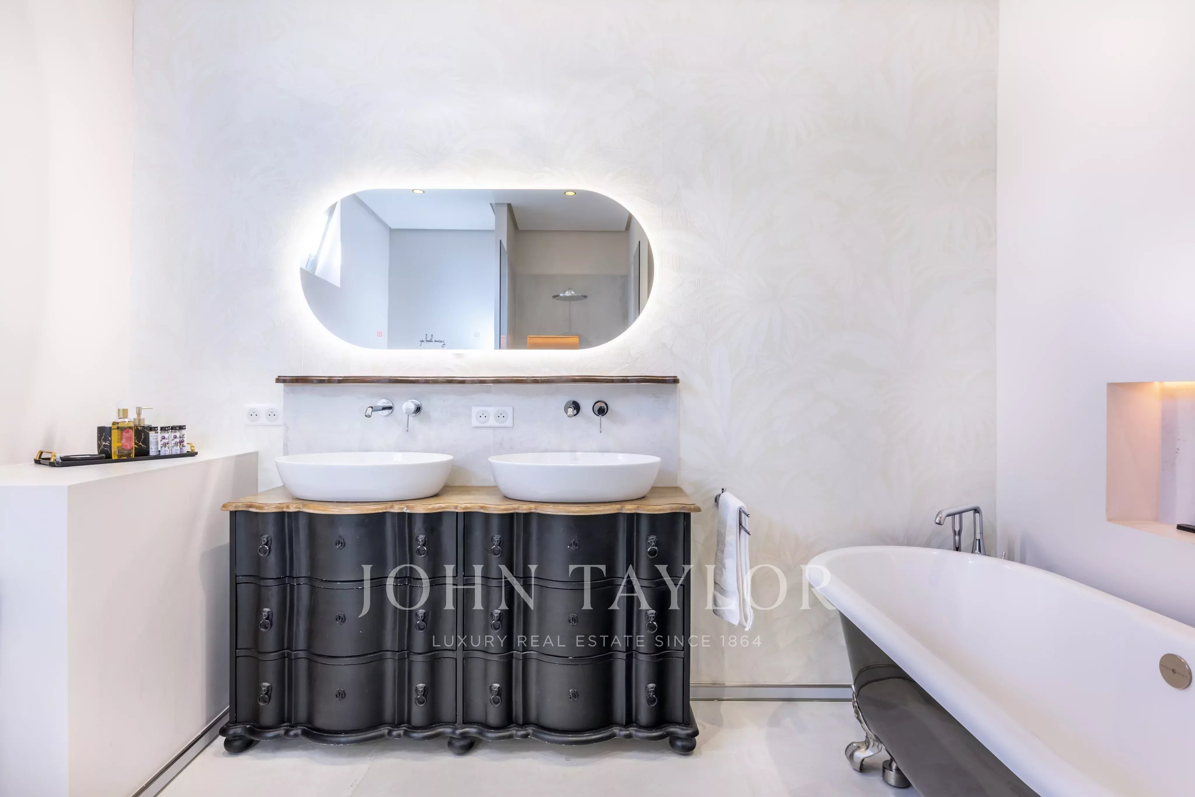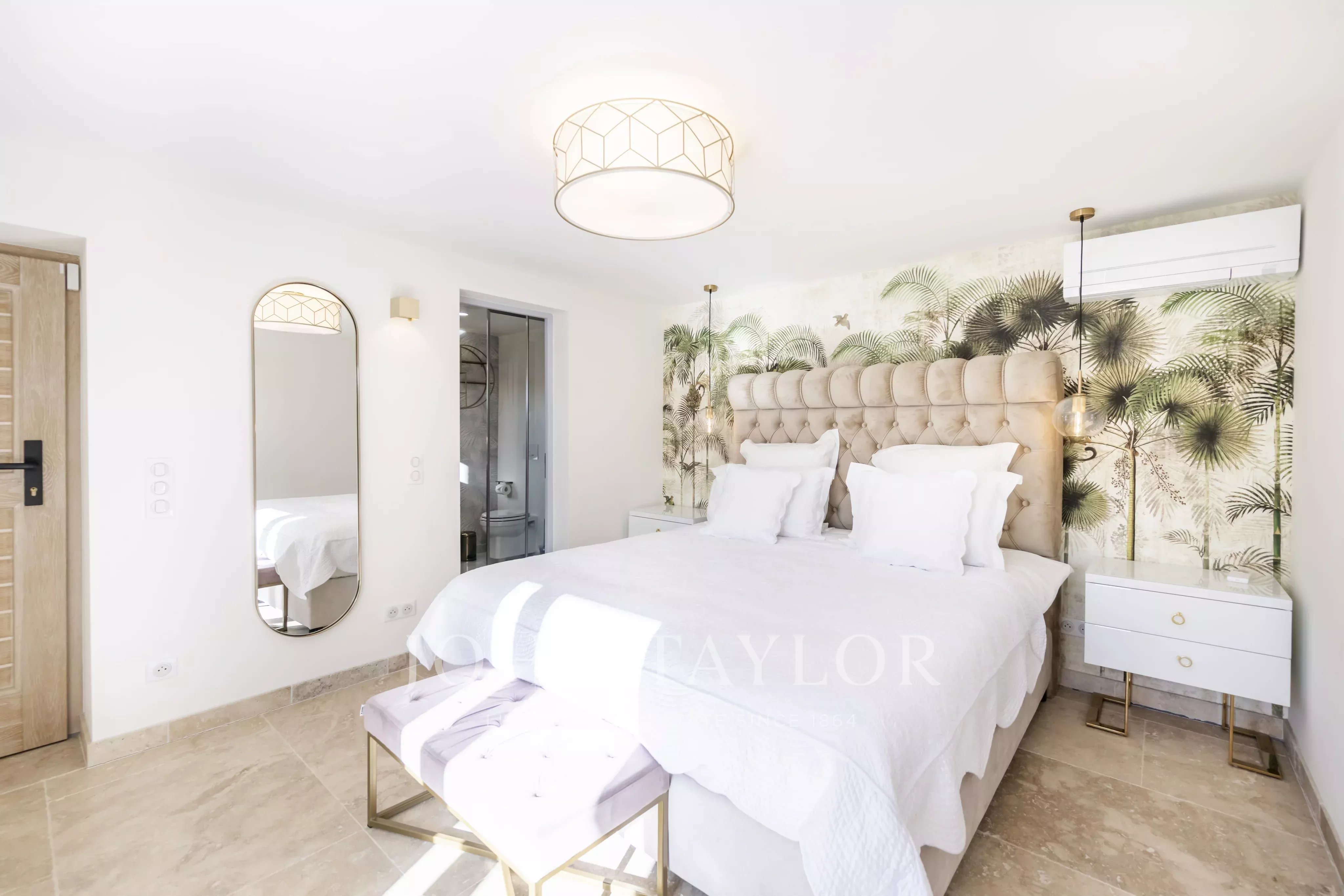 La habitación principal, ubicada en la planta principal, se abre directamente a las áreas de estar. Las dos habitaciones en la planta baja tienen acceso independiente desde el exterior, garantizando comodidad e intimidad. También disponen de una kitchenette dedicada, ideal para mayor autonomía.