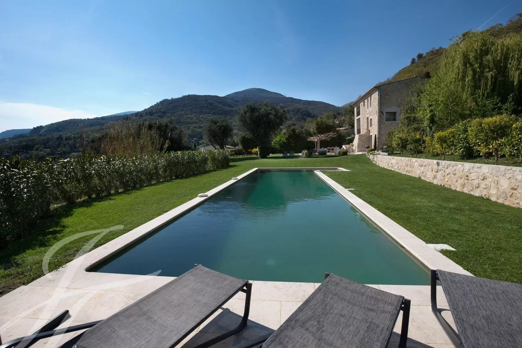 Este magnífico antiguo aprisco (aprox. 230 m²), completamente renovado en un elegante estilo contemporáneo, ofrece un encanto auténtico con impresionantes vistas desde las alturas de Vence. Situada en un lugar privilegiado, la propiedad se beneficia de un vasto jardín paisajista y de una gran y elegante piscina.