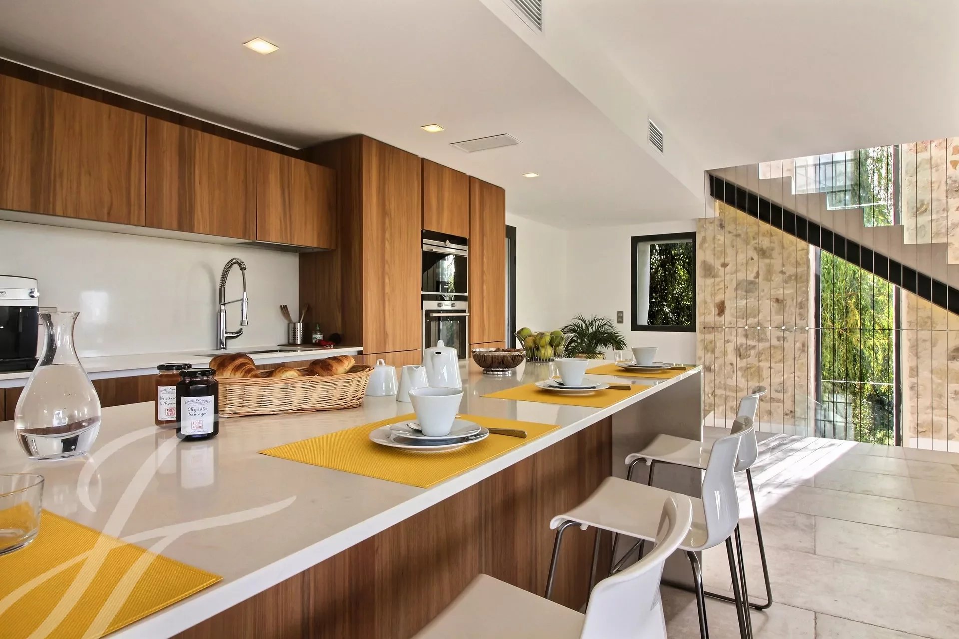 En el nivel del jardín, una segunda cocina totalmente equipada facilita la organización de comidas al aire libre en el jardín, complementada por un cuarto de ducha adicional y la suite principal con baño en suite.