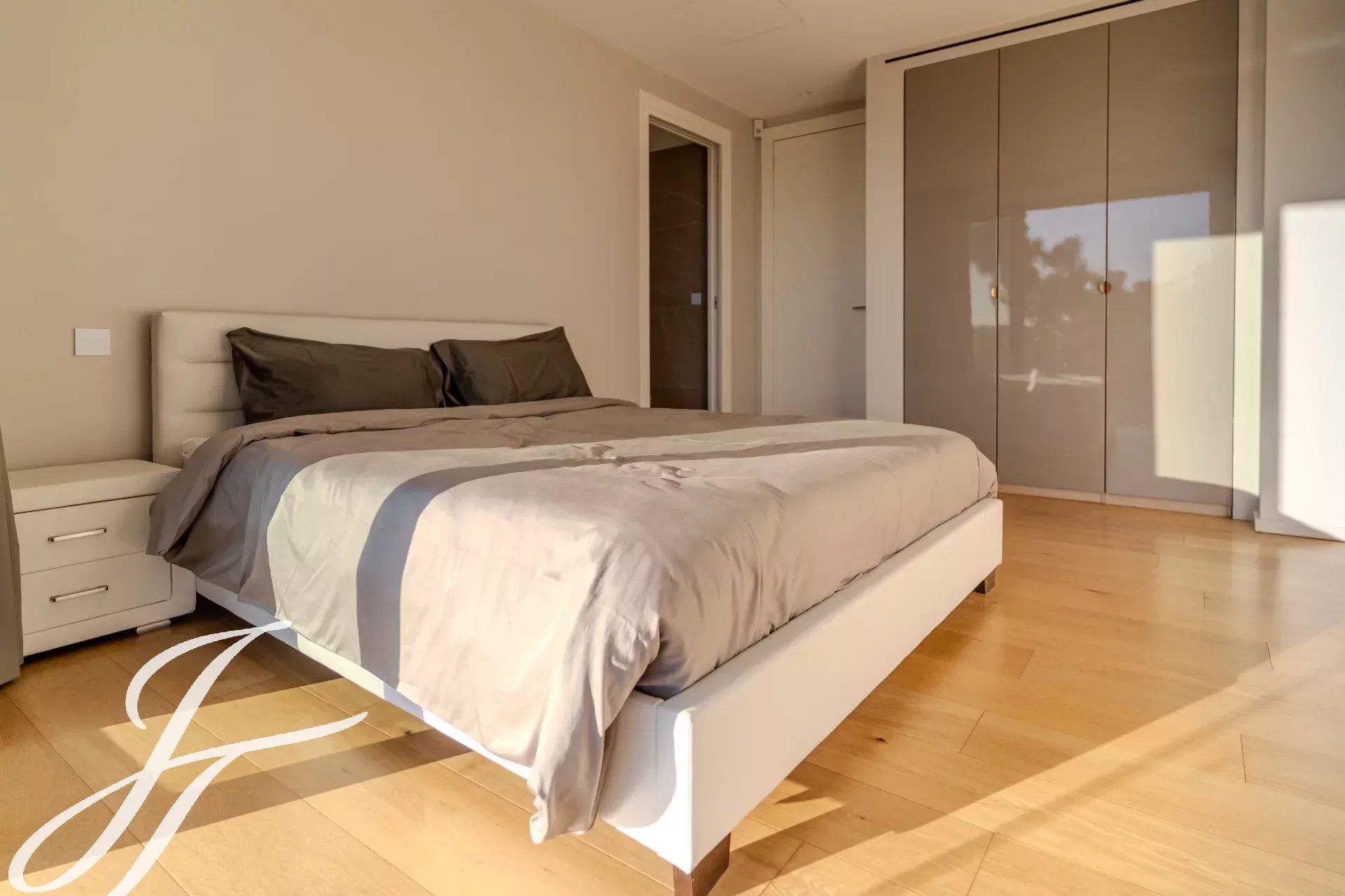 En la planta superior hay 4 dormitorios luminosos y elegantes, cada uno con su propio cuarto de baño con ducha y con acceso a dos grandes terrazas con magníficas vistas.