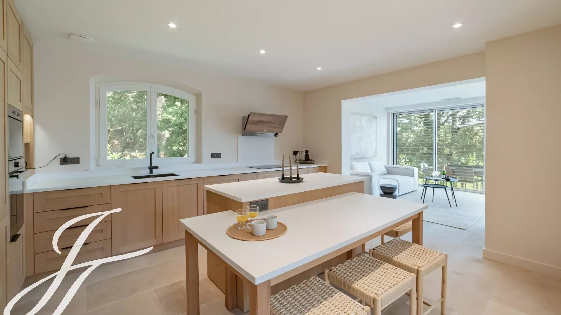 El alma de esta vivienda reside en la elección de materiales nobles y atemporales: piedra de Borgoña, parquet macizo y paredes sublimadas por pinturas de cal. Cada detalle ha sido pensado para ofrecer un entorno de vida armonioso, donde la comodidad y la estética se encuentran con elegancia.