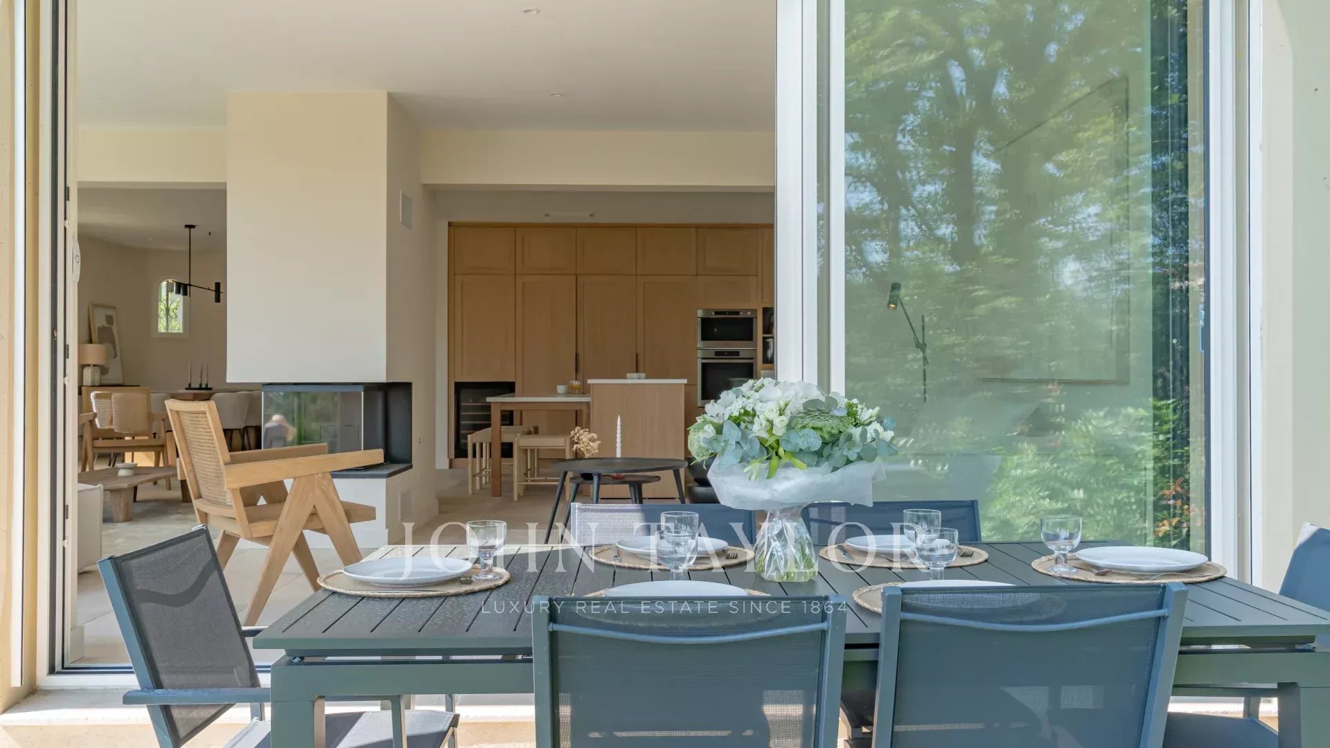 En un entorno tranquilo, en el corazón de un barrio residencial de moda, esta lujosa villa de una planta, completamente renovada con un cuidado extremo, le ofrece una calidad de vida incomparable. A pocos minutos a pie del encantador pueblo de Valbonne, combina armoniosamente autenticidad y modernidad.
