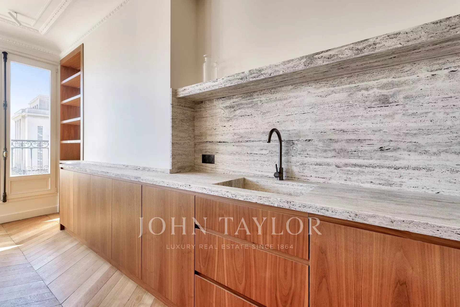 TOUR EIFFEL - A dos pasos de la Place du Trocadéro, en la cima de un edificio de piedra perfectamente conservado y vigilado por un conserje, se encuentra este excepcional piso de 210 m², completamente renovado y amueblado con un raro gusto por el detalle.