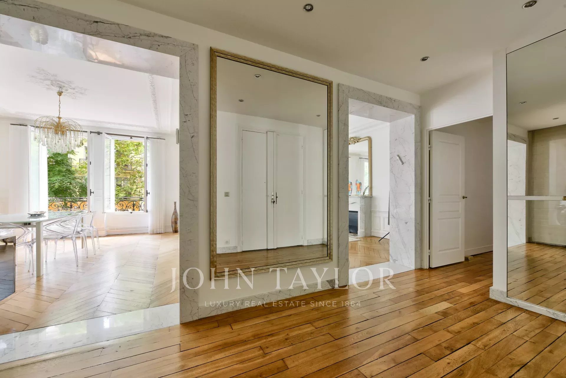 En el corazón de la avenida Victor Hugo, en la primera planta insonorizada y sin vistas de un edificio de lujo de 1880 con conserje, le ofrecemos este elegante piso de estilo haussmaniano de 137,61 m² con terraza interior fuera de la vista.
