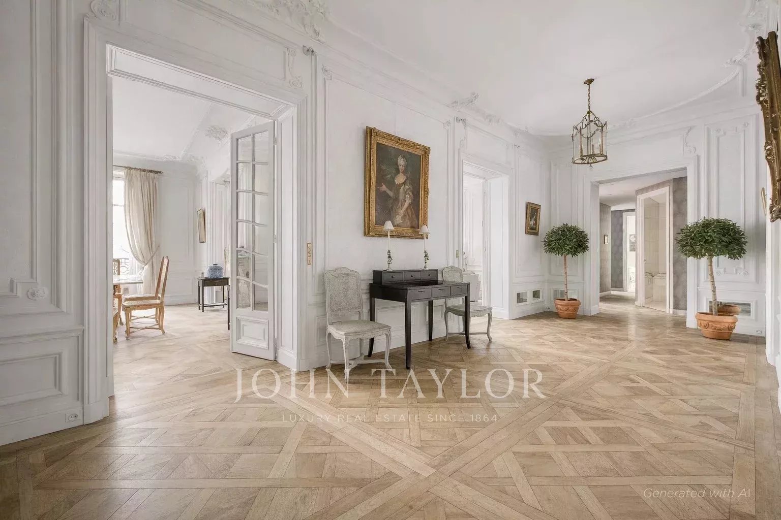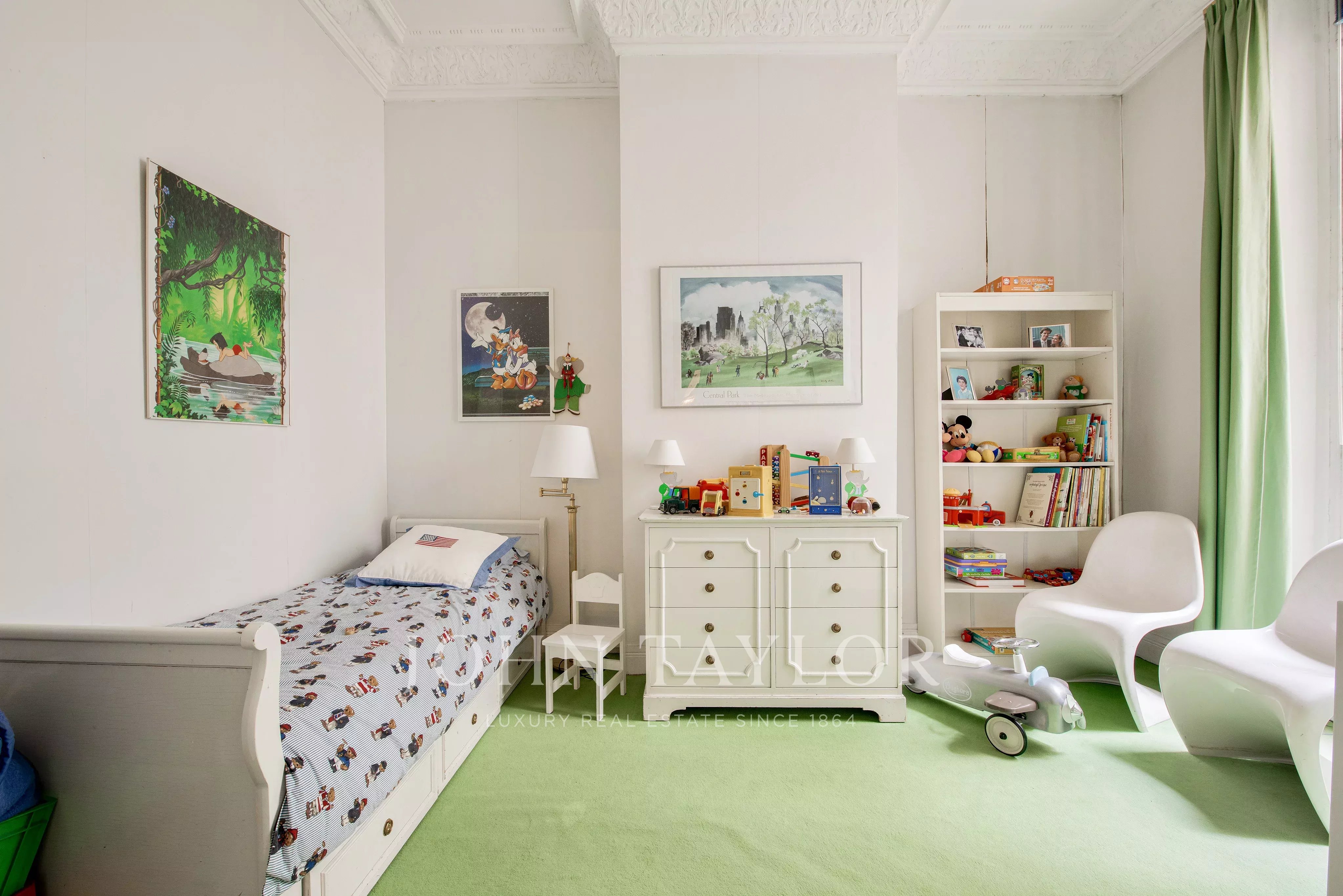 Este piso de 235 m² está situado en la primera planta. Le seducirán su distribución diáfana y sus amplias habitaciones. Se han conservado los suelos de parqué, las molduras y las chimeneas.