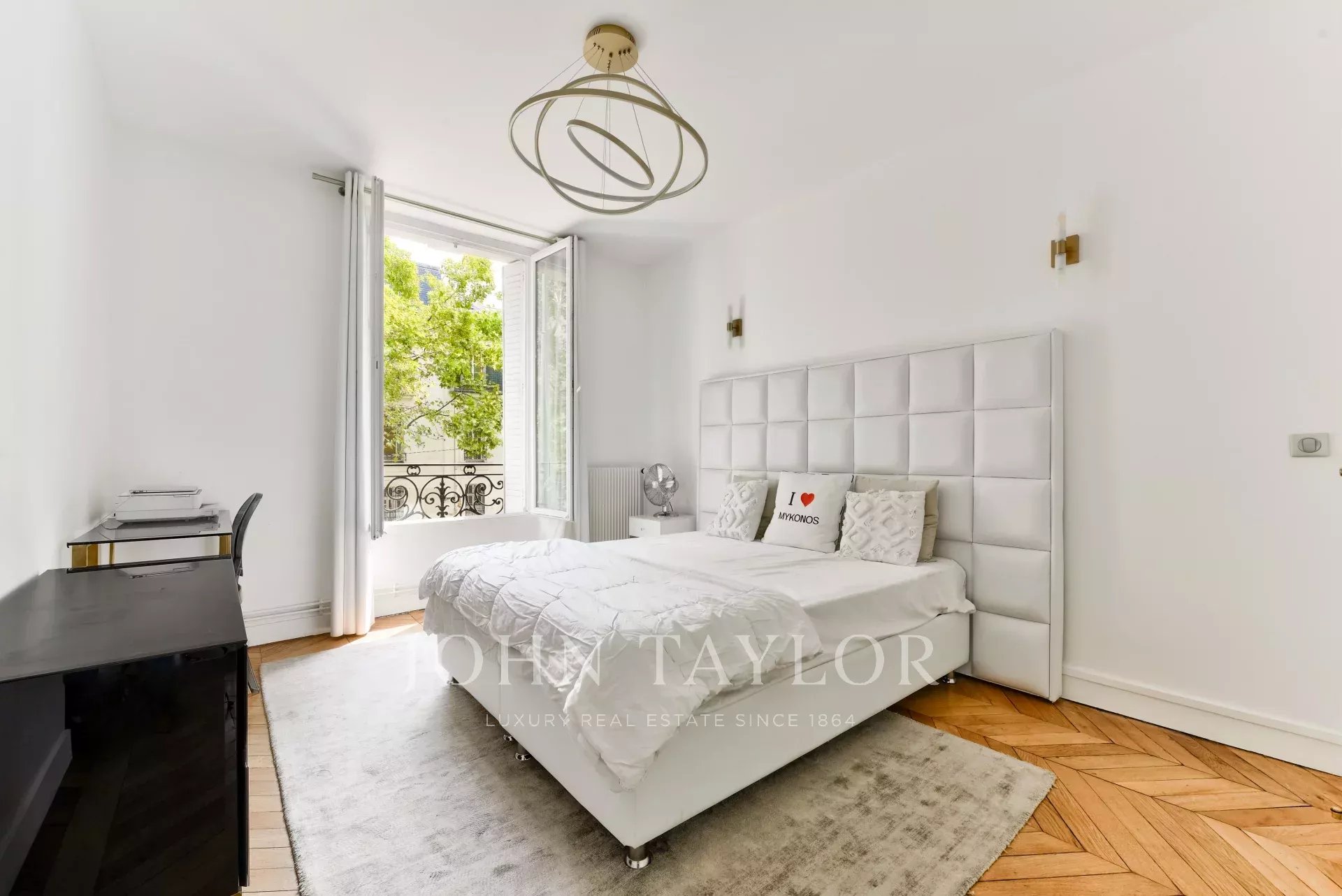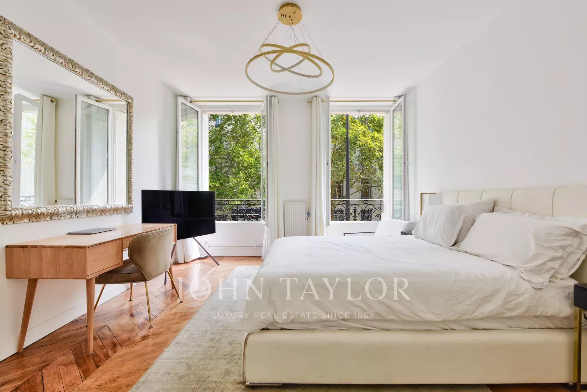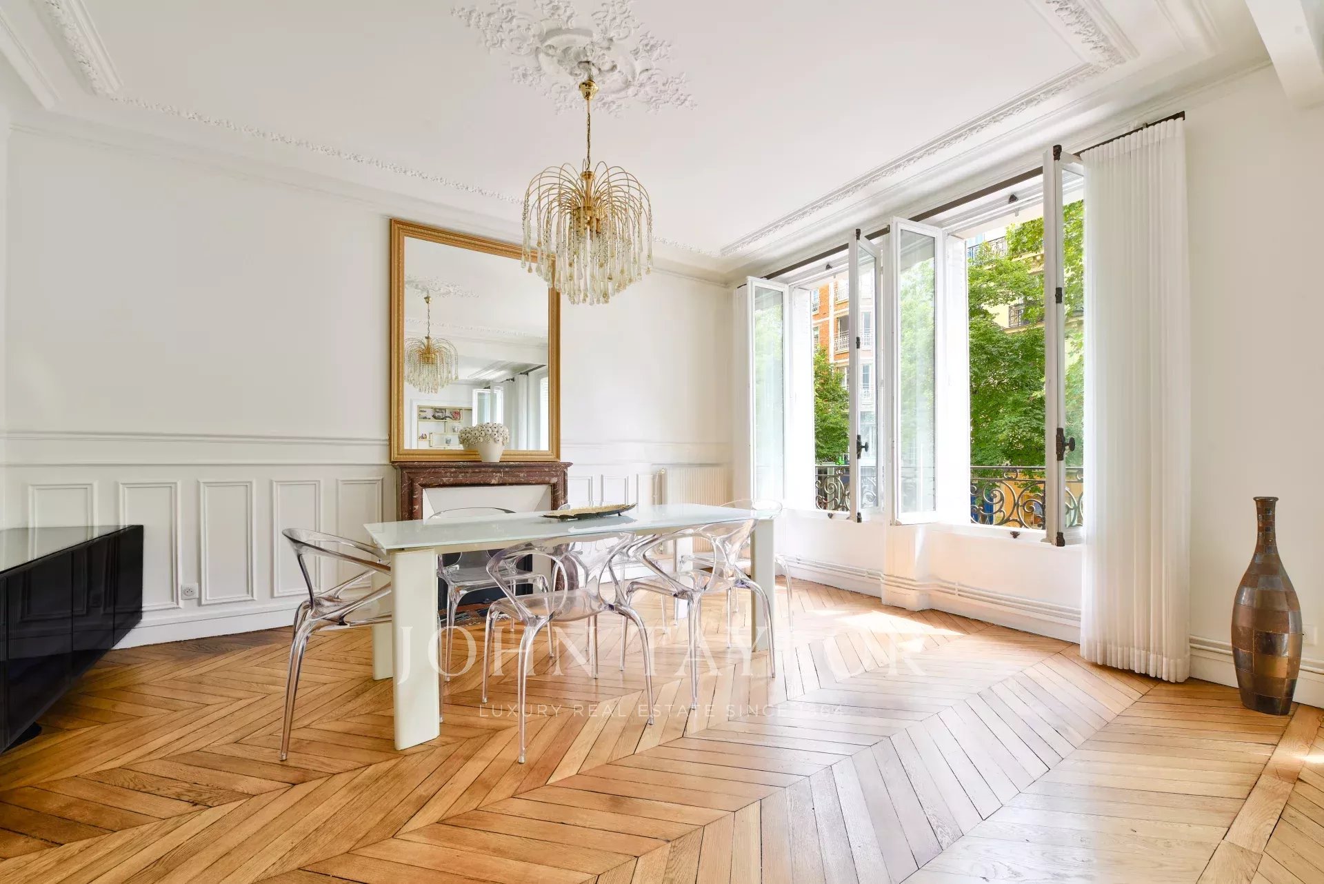 En el corazón de la avenida Victor Hugo, en la primera planta insonorizada y sin vistas de un edificio de lujo de 1880 con conserje, le ofrecemos este elegante piso de estilo haussmaniano de 137,61 m² con terraza interior fuera de la vista.