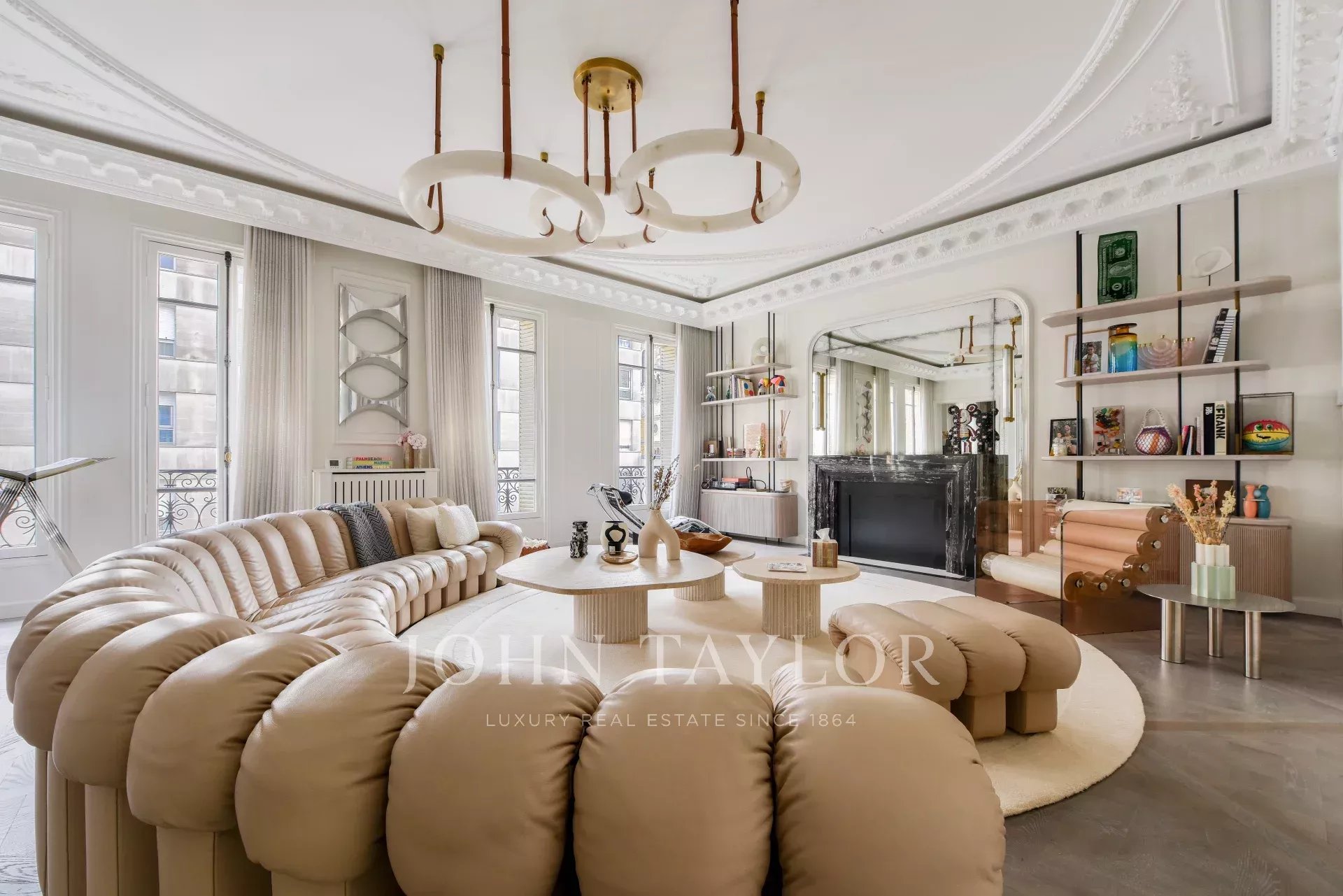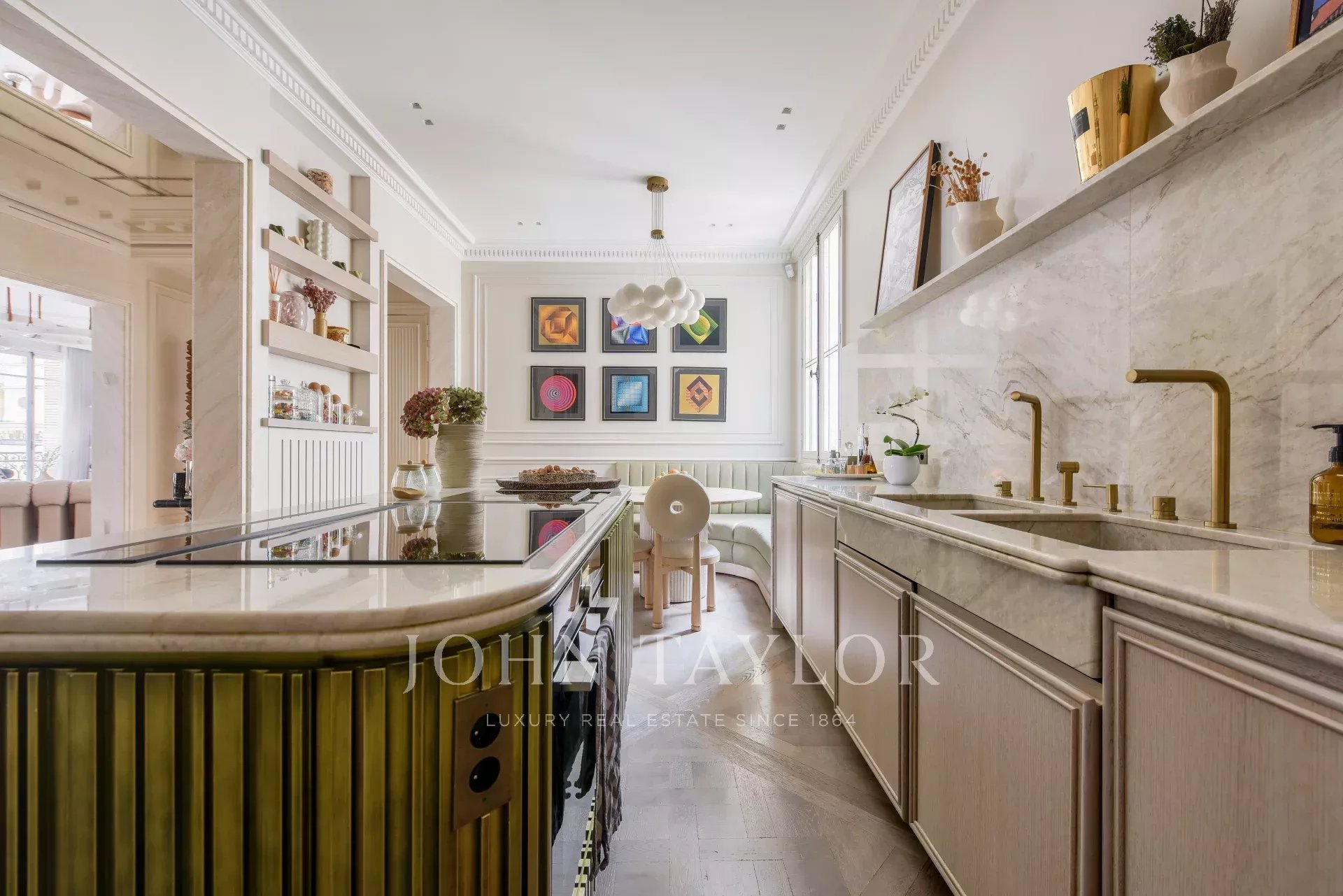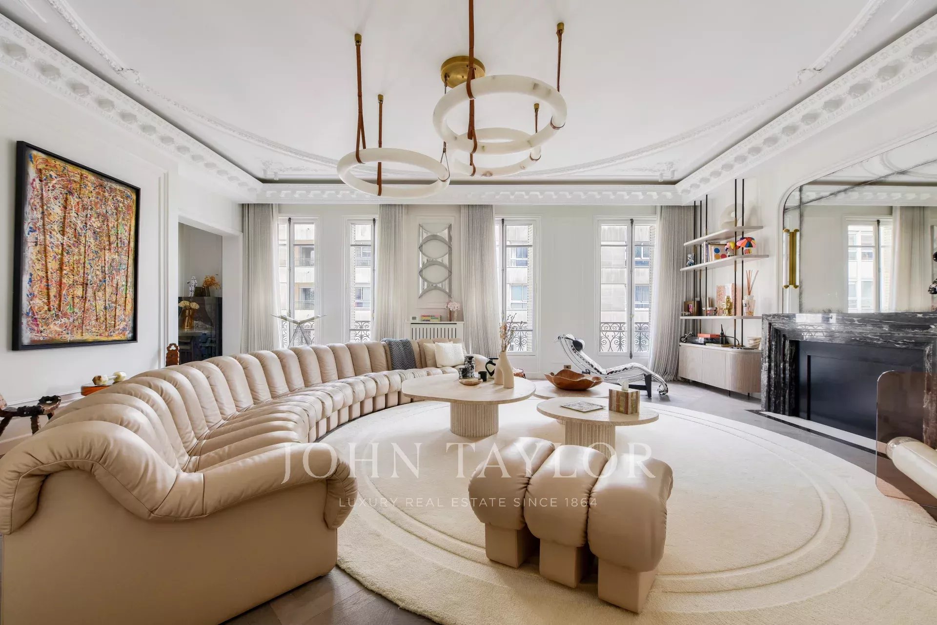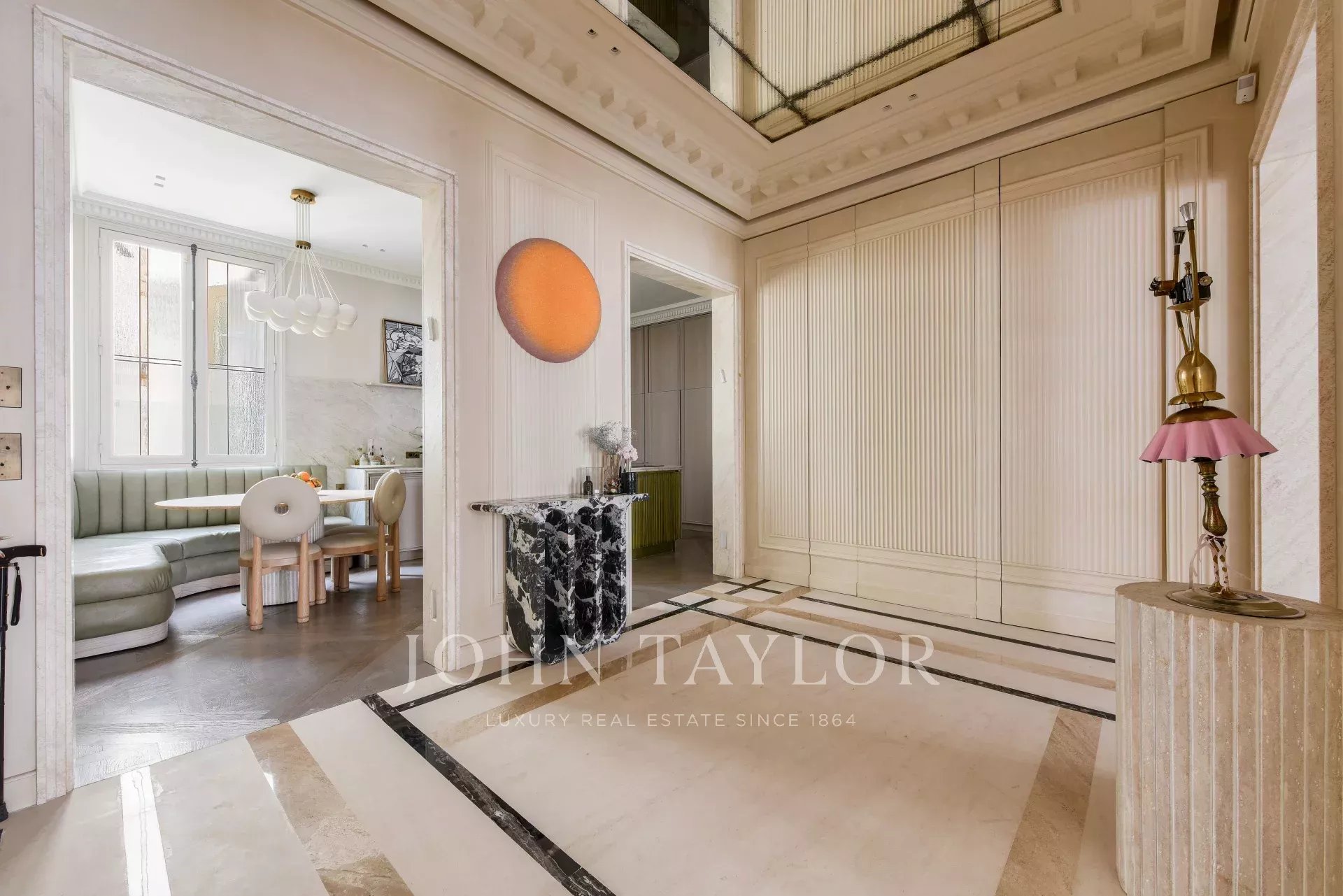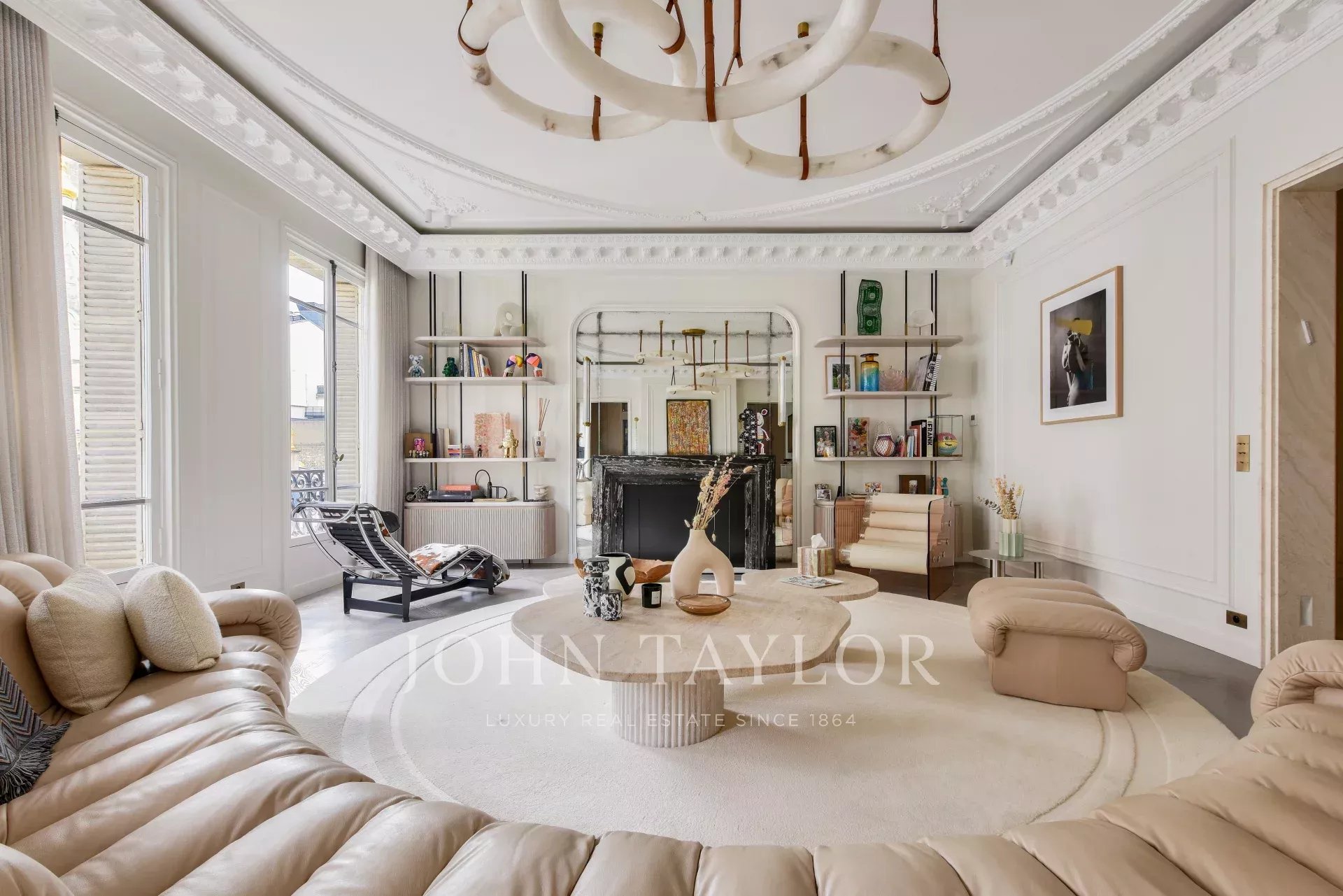 Cerca del Parc Monceau, en el último piso de un edificio antiguo, este magnífico piso de 210 m² ha sido completamente renovado con materiales y acabados de alta calidad.