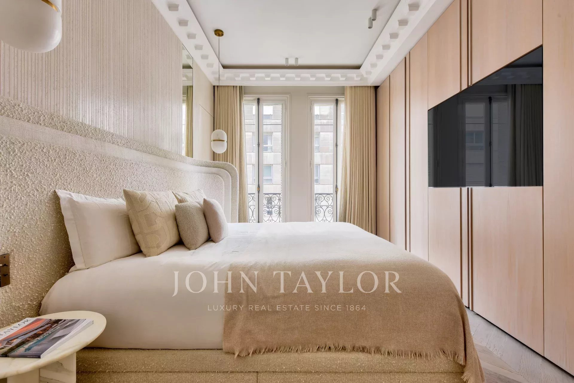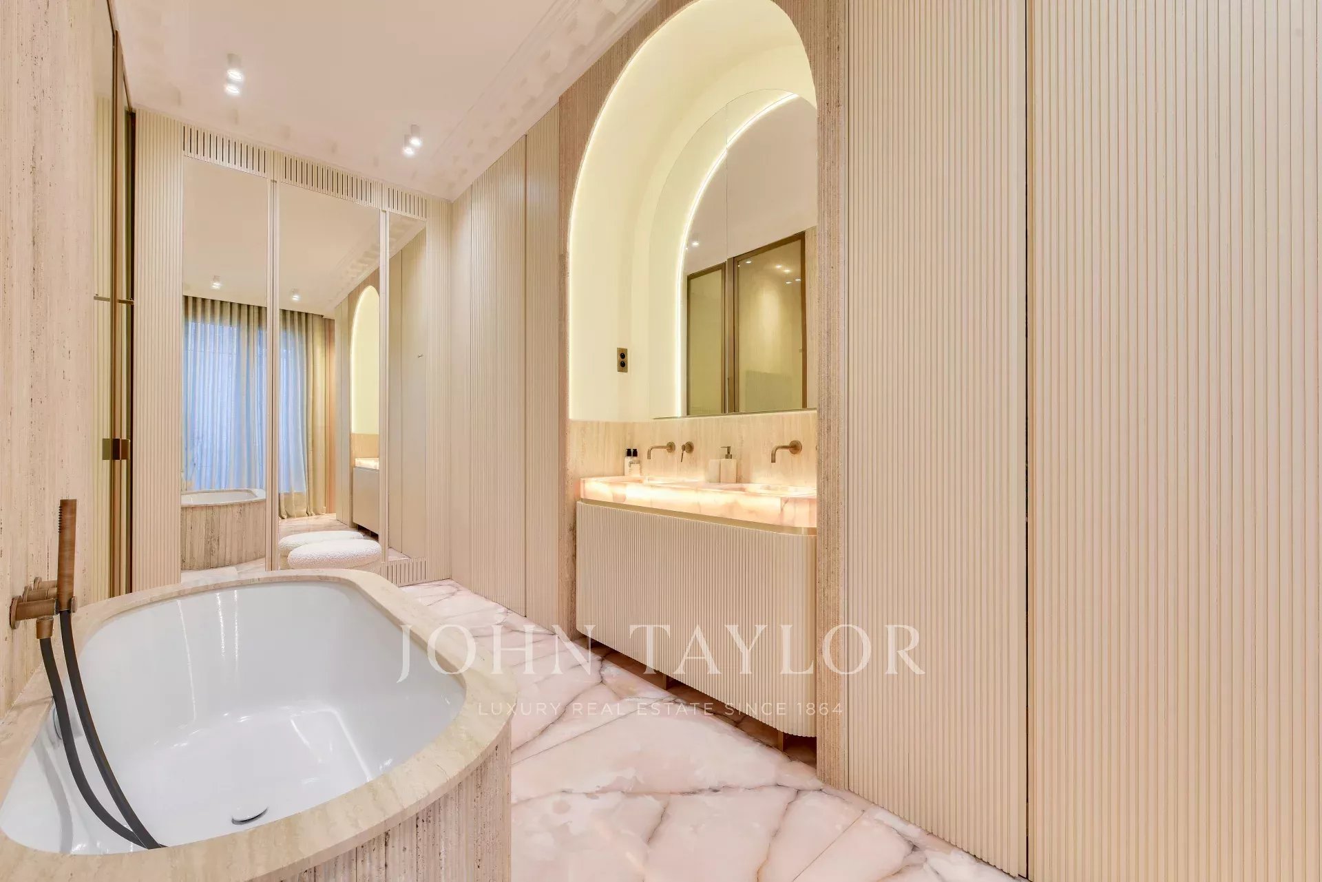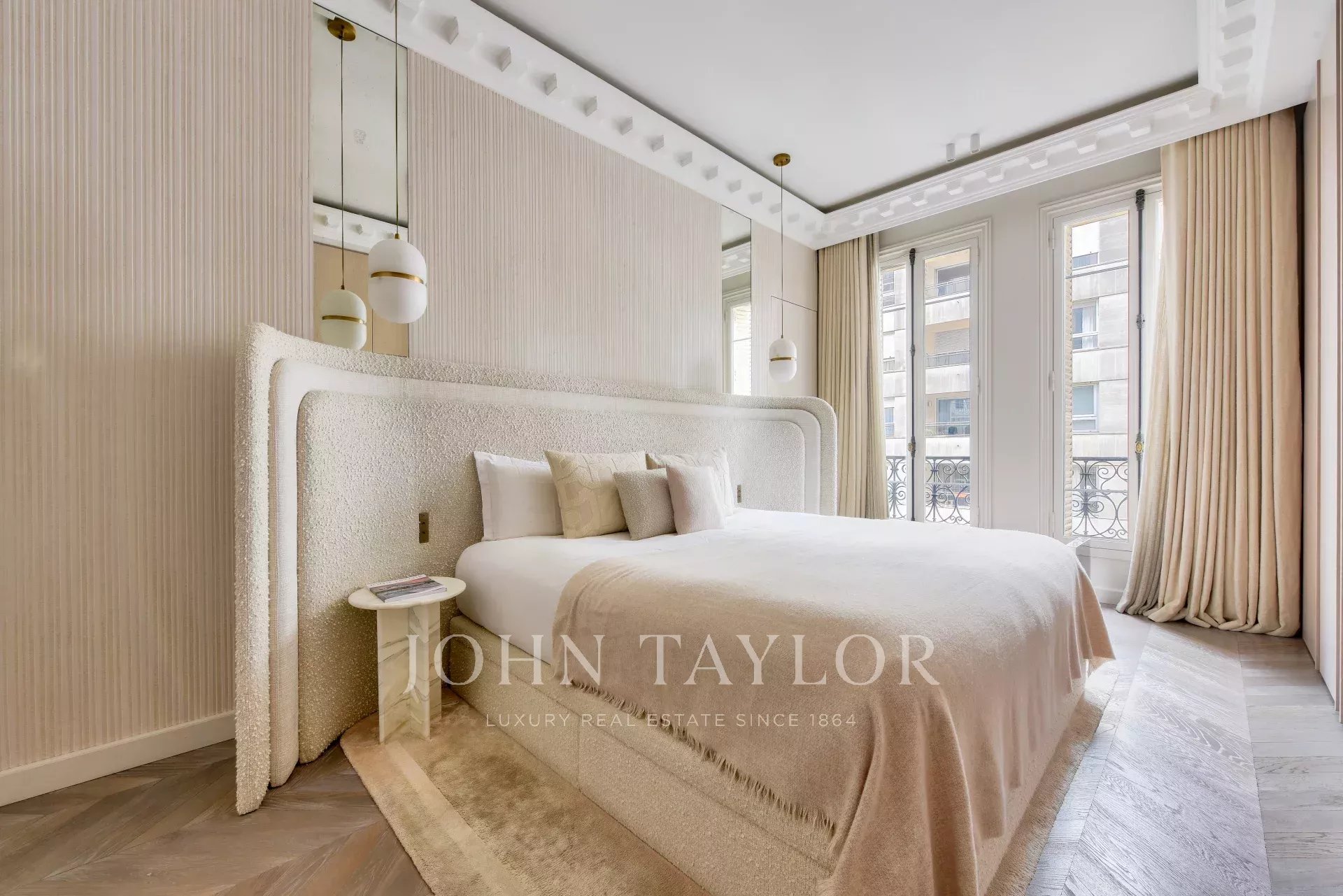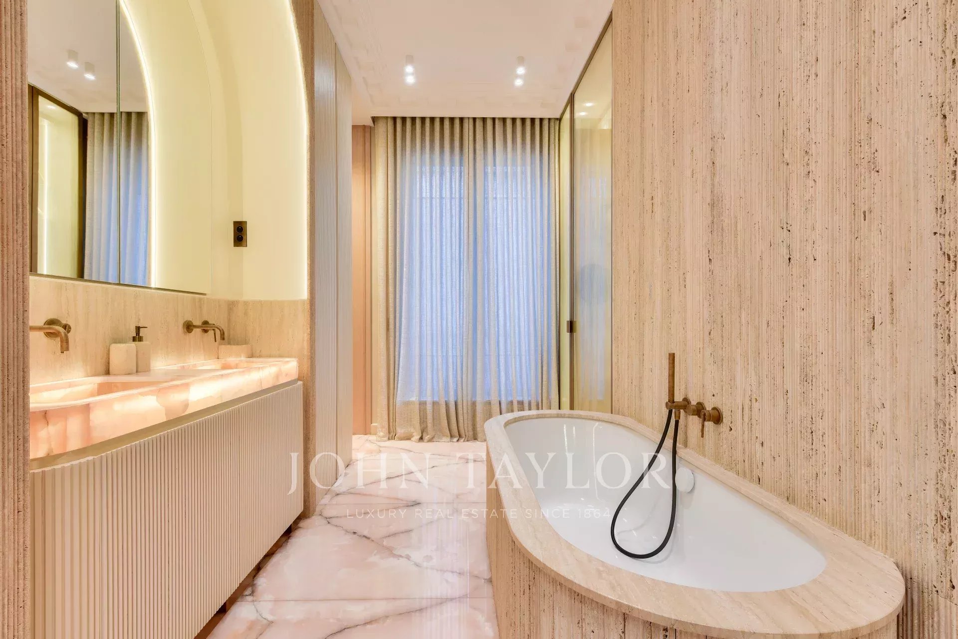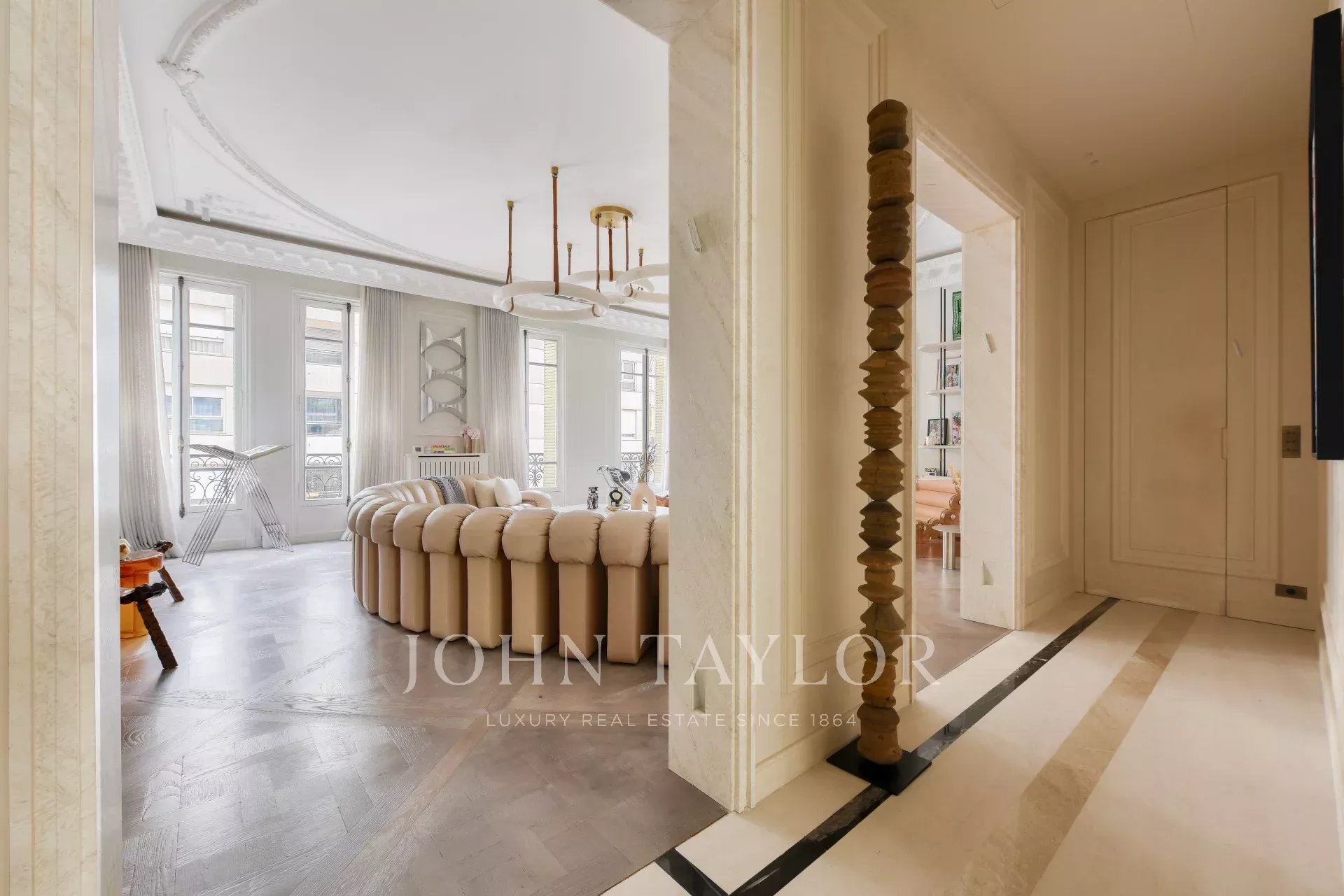 Cerca del Parc Monceau, en el último piso de un edificio antiguo, este magnífico piso de 210 m² ha sido completamente renovado con materiales y acabados de alta calidad.