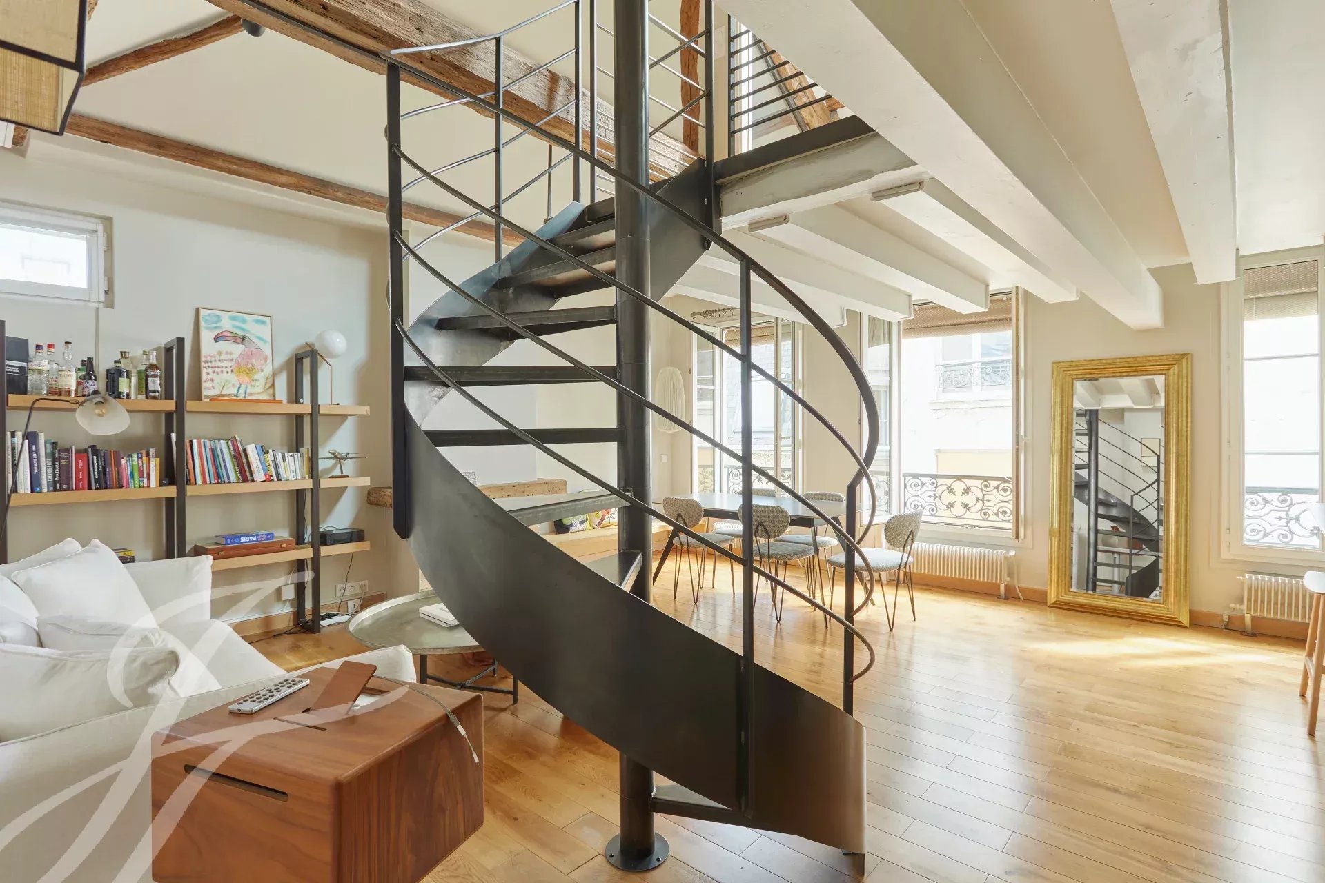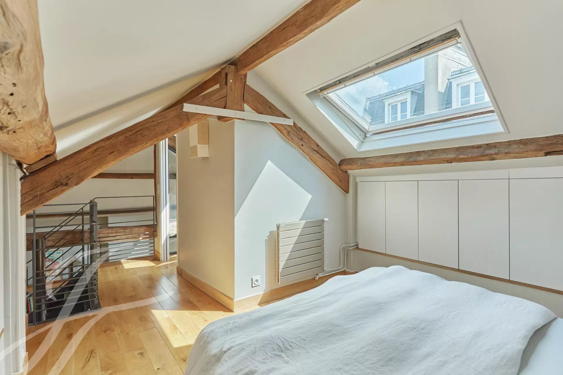 A dos pasos del Museo Carnavalet y de la Place des Vosges, en la 4ª y última planta, este bonito piso dúplex con carácter dispone de 60,15 m² de superficie (49,32 m² carrez).