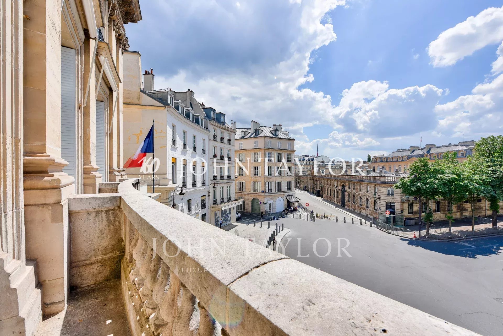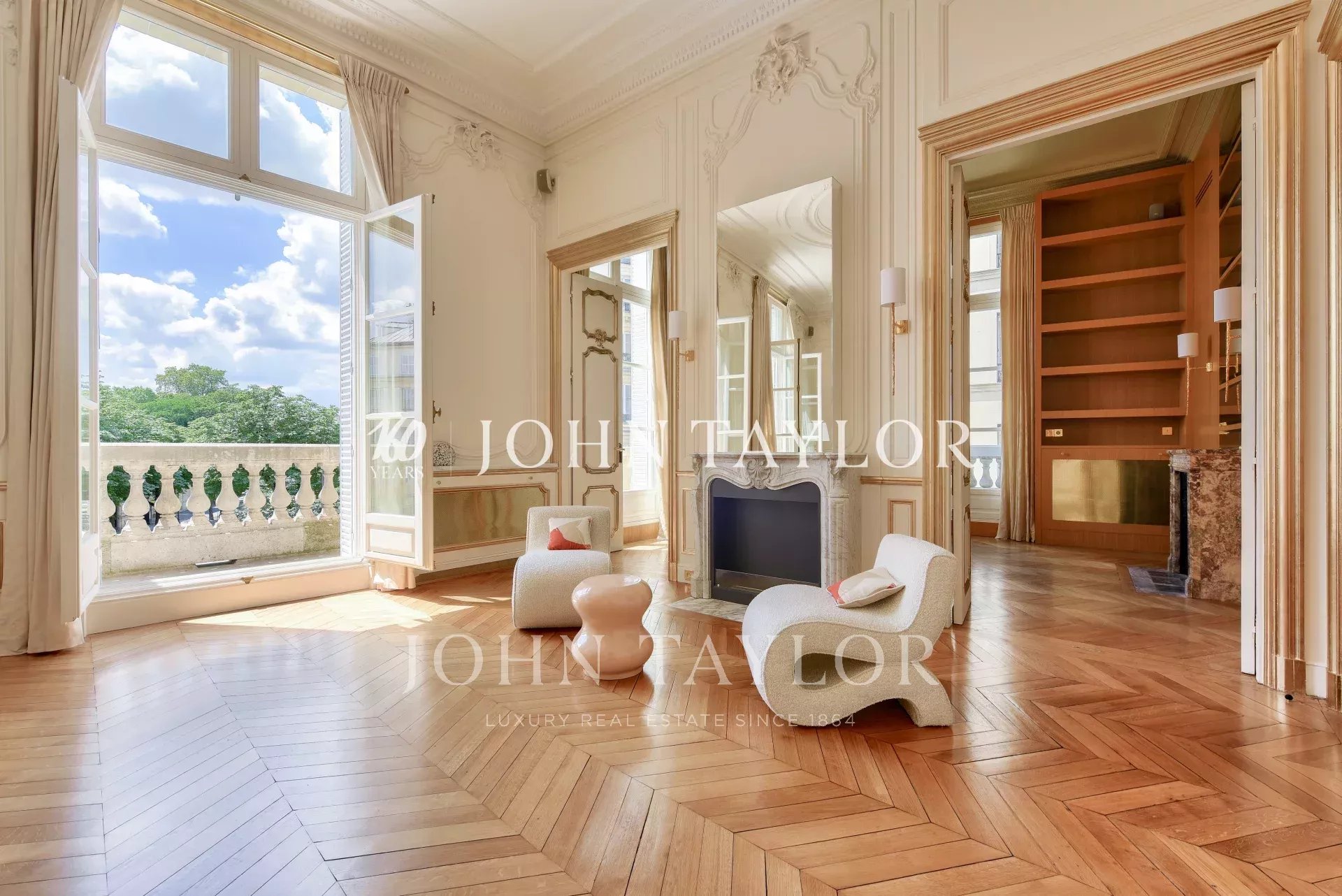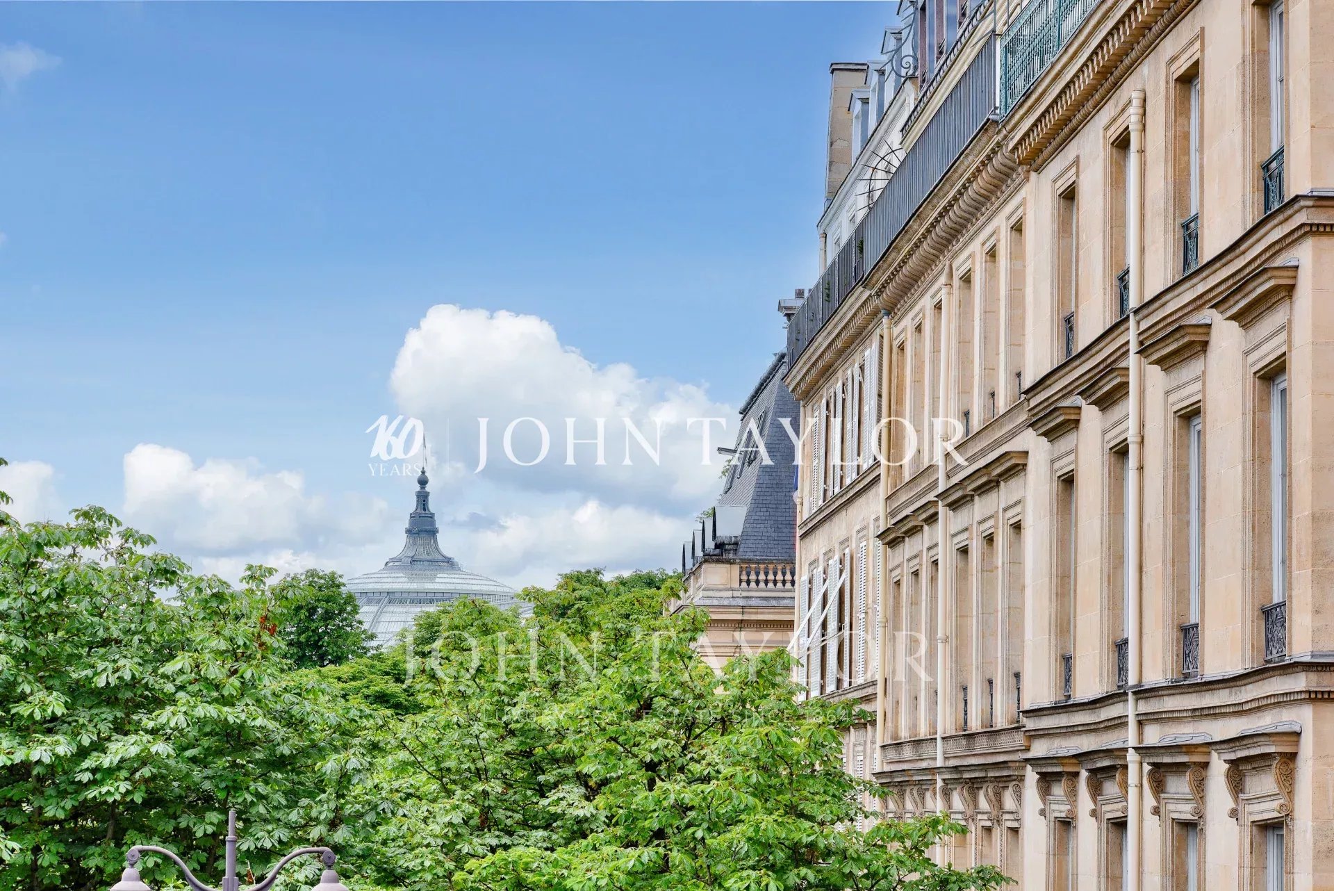 - una gran sala de recepción con un balcón orientado al sur que ofrece unas vistas poco comunes del Palacio de los Elíseos y de los tejados acristalados del Grand Palais