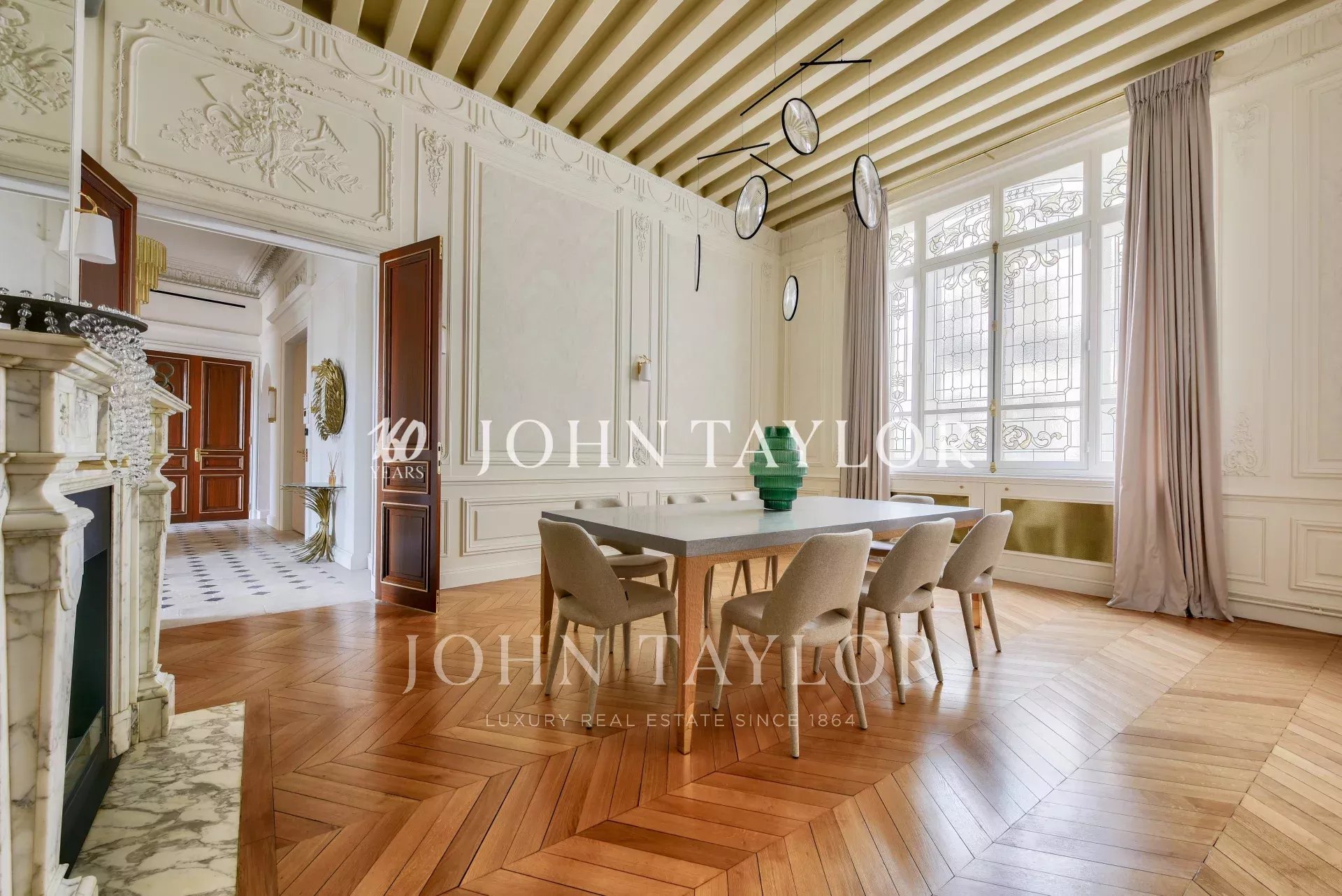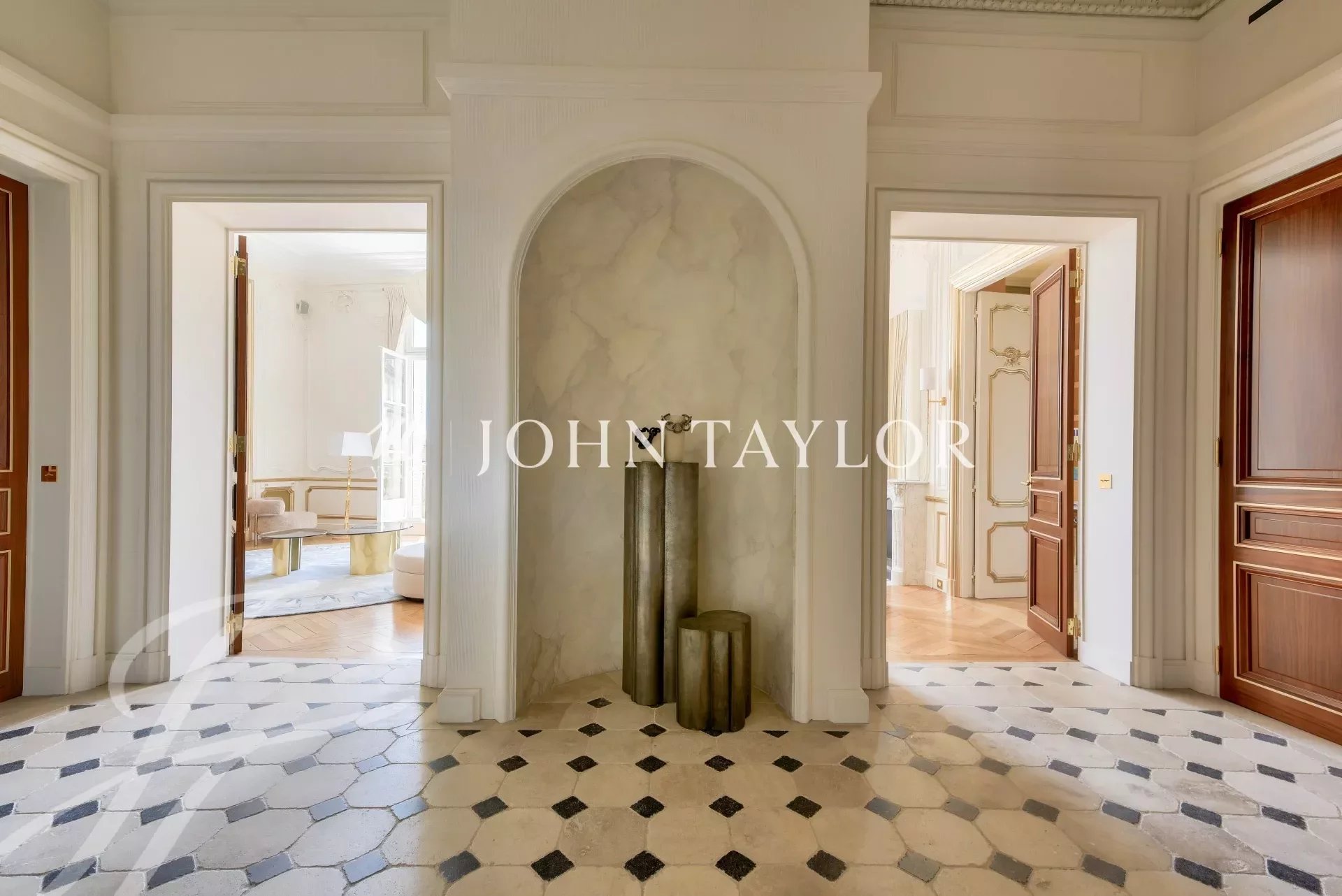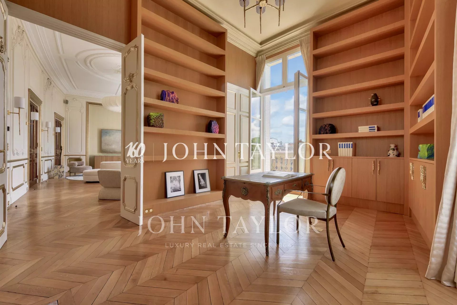 En un edificio de lujo, en el segundo piso con ascensor, fabuloso piso de recepción con una superficie de 350 m2 (319 m2 ley Carrez) que se ha beneficiado de una renovación excepcional por uno de los más renombrados estudios de arquitectura.