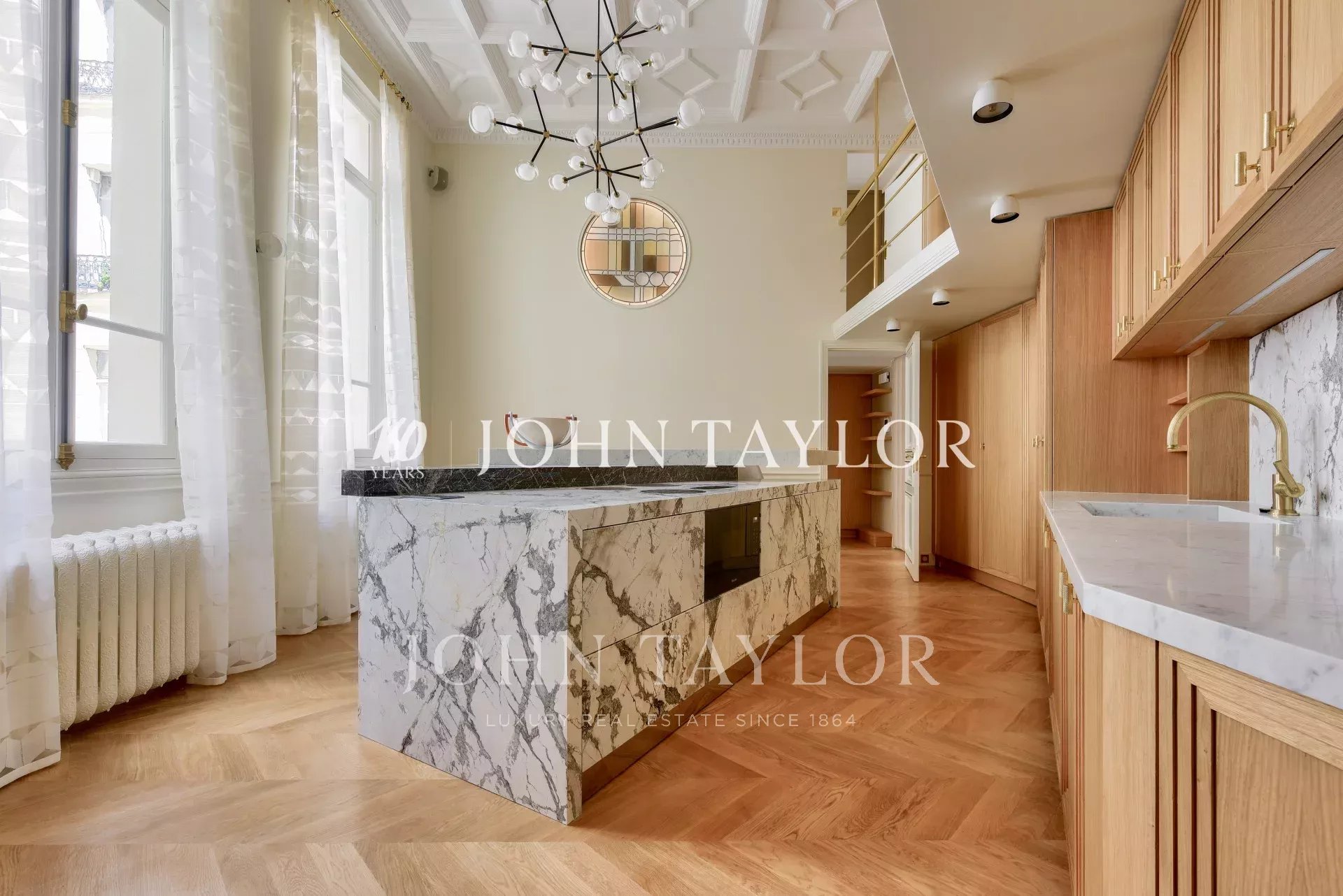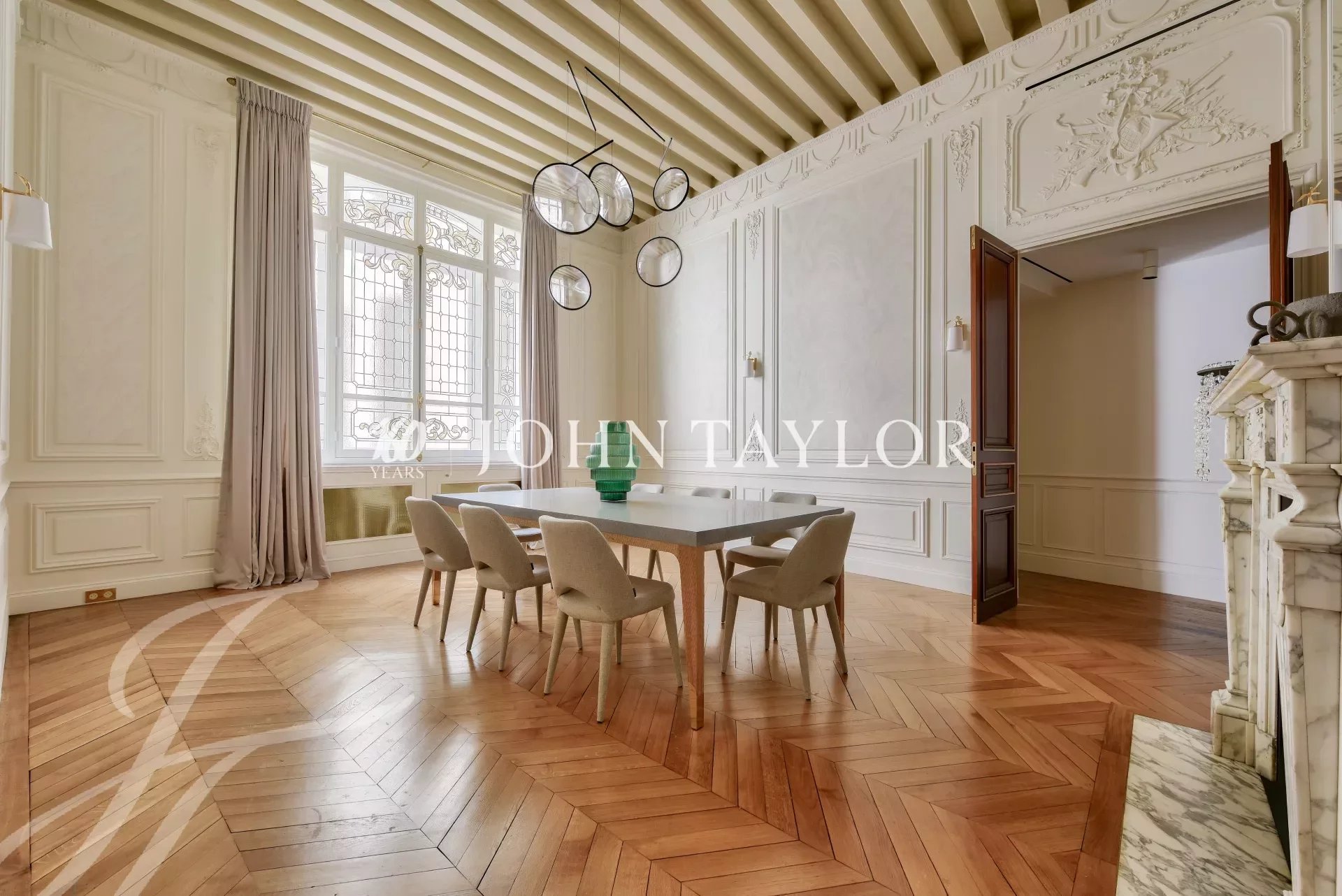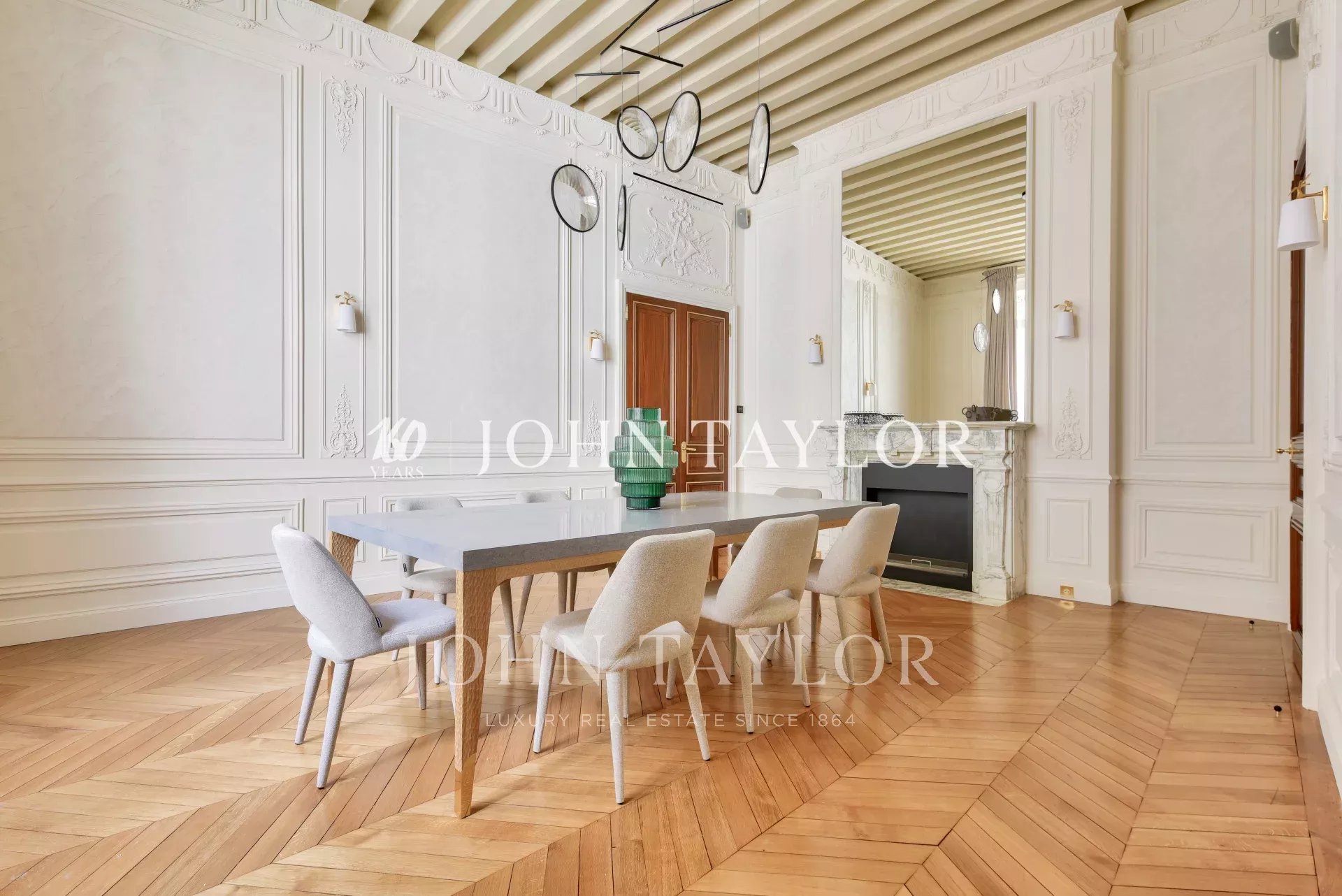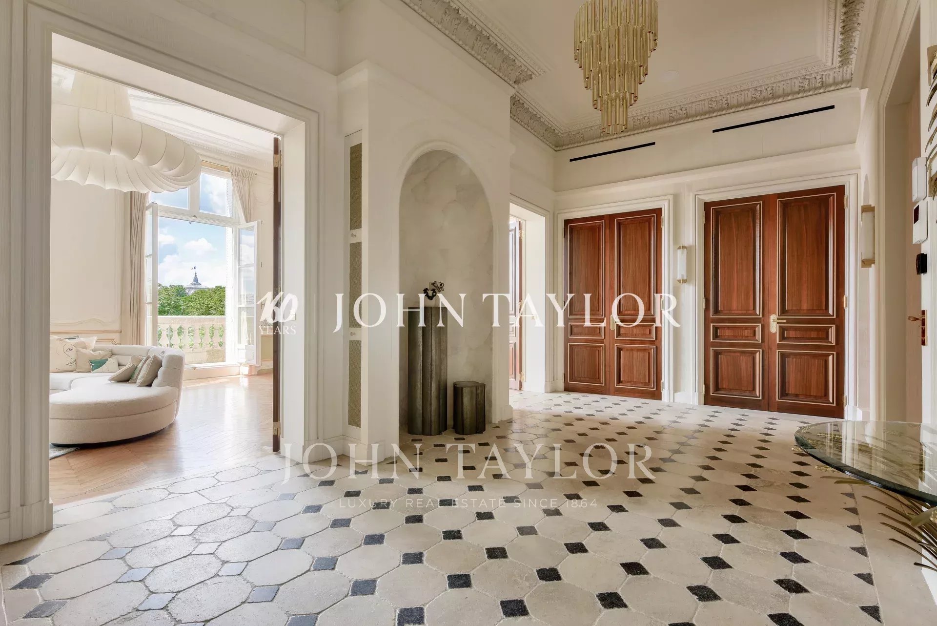 En un edificio de lujo, en el segundo piso con ascensor, fabuloso piso de recepción con una superficie de 350 m2 (319 m2 ley Carrez) que se ha beneficiado de una renovación excepcional por uno de los más renombrados estudios de arquitectura.