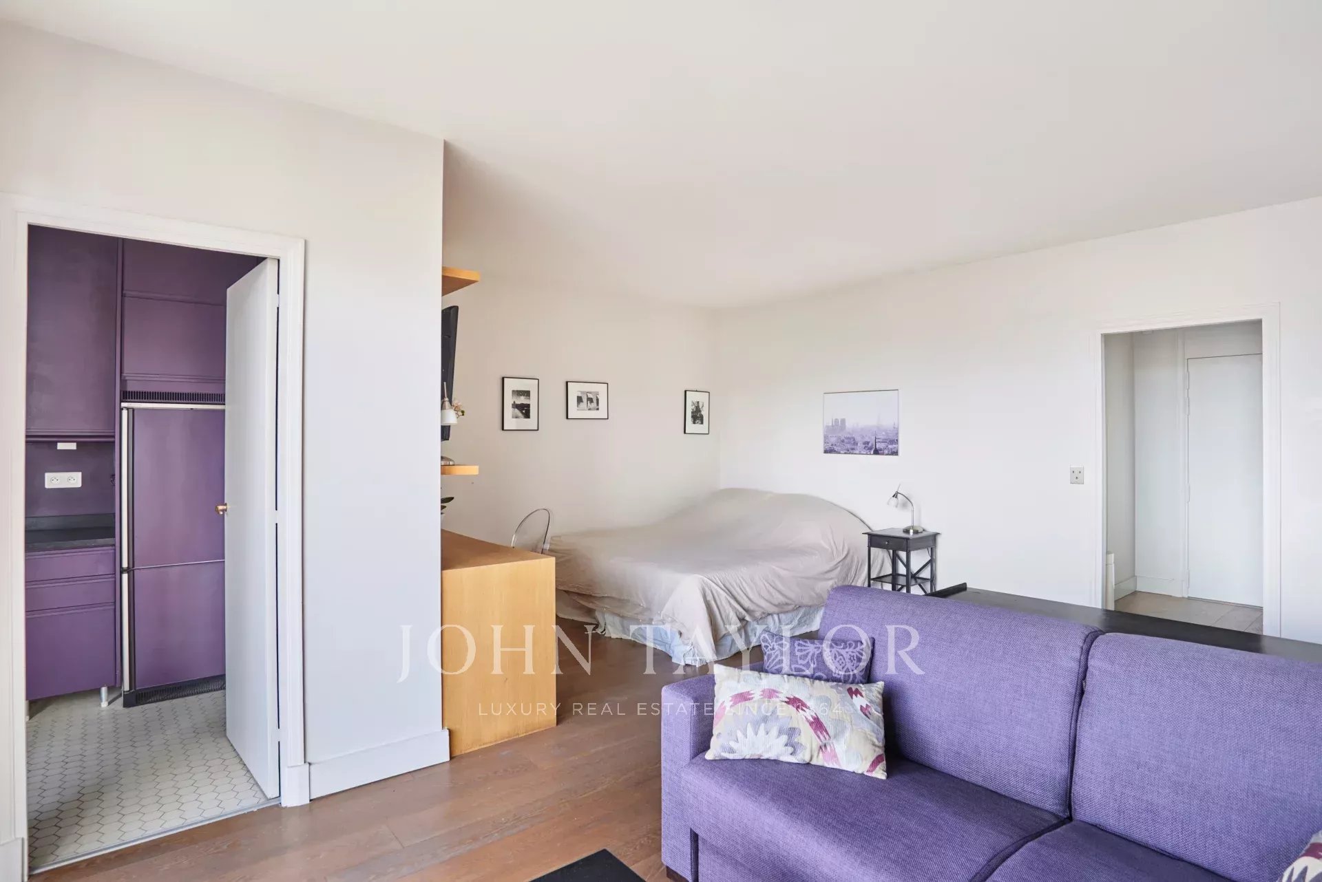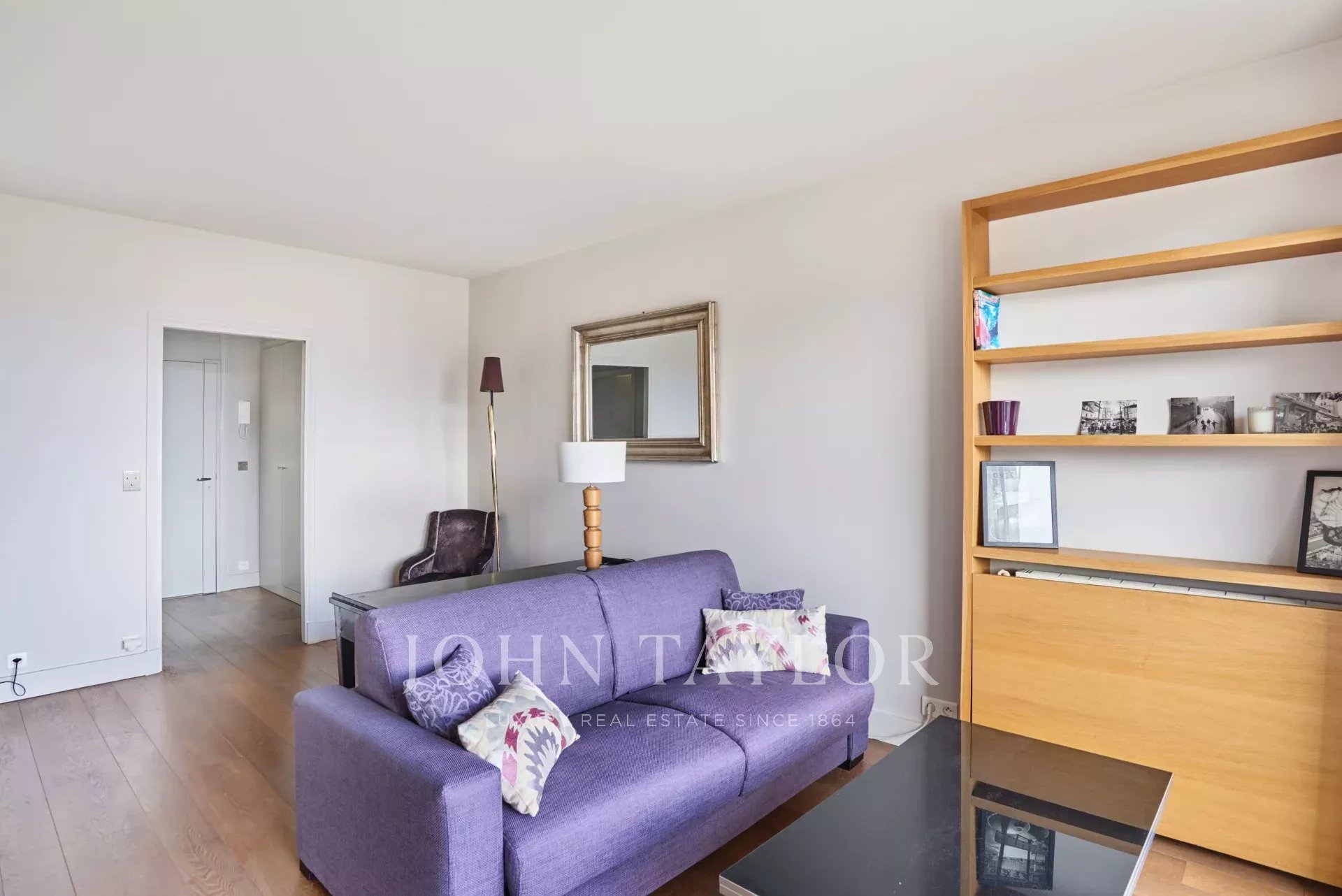 Situado entre la Avenue Montaigne y el Sena, en un edificio contemporáneo totalmente renovado, este agradable piso de 39,33 m² se encuentra en la 7ª planta. Accesible por dos ascensores, consta de :
