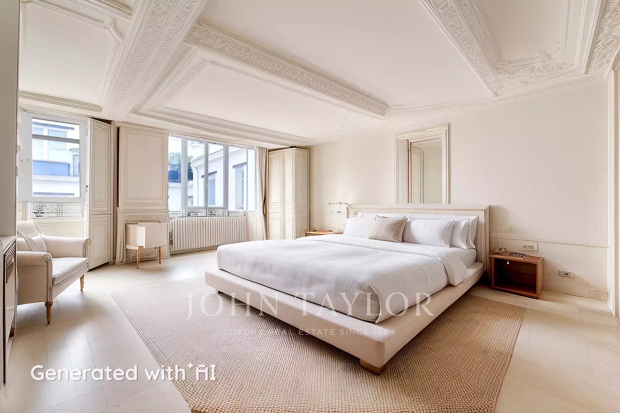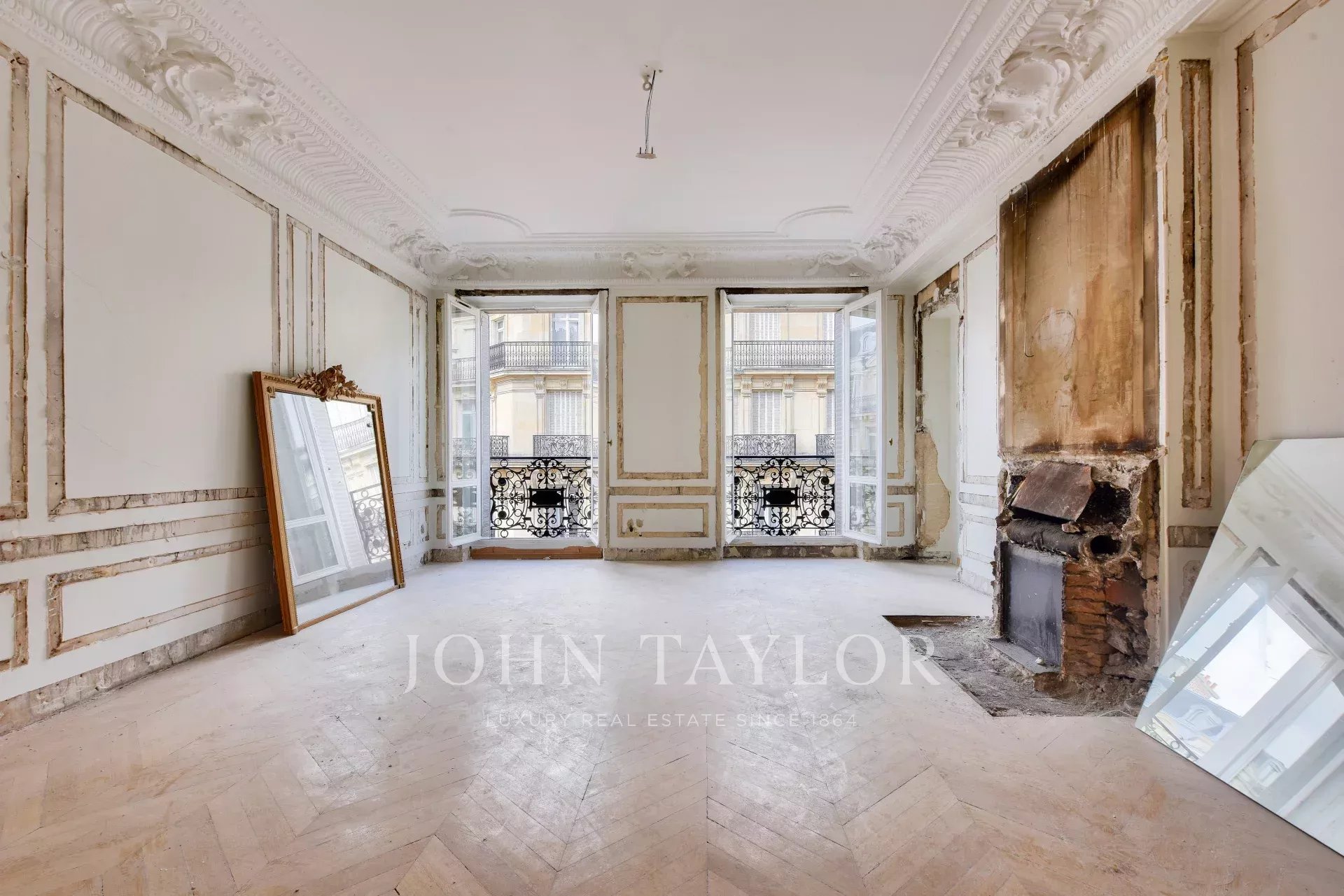 En el corazón del Triángulo de Oro, cerca de la avenida George V, en un edificio de estilo haussmaniano de bella construcción con vigilantes de seguridad, le ofrecemos un piso de 125 m².