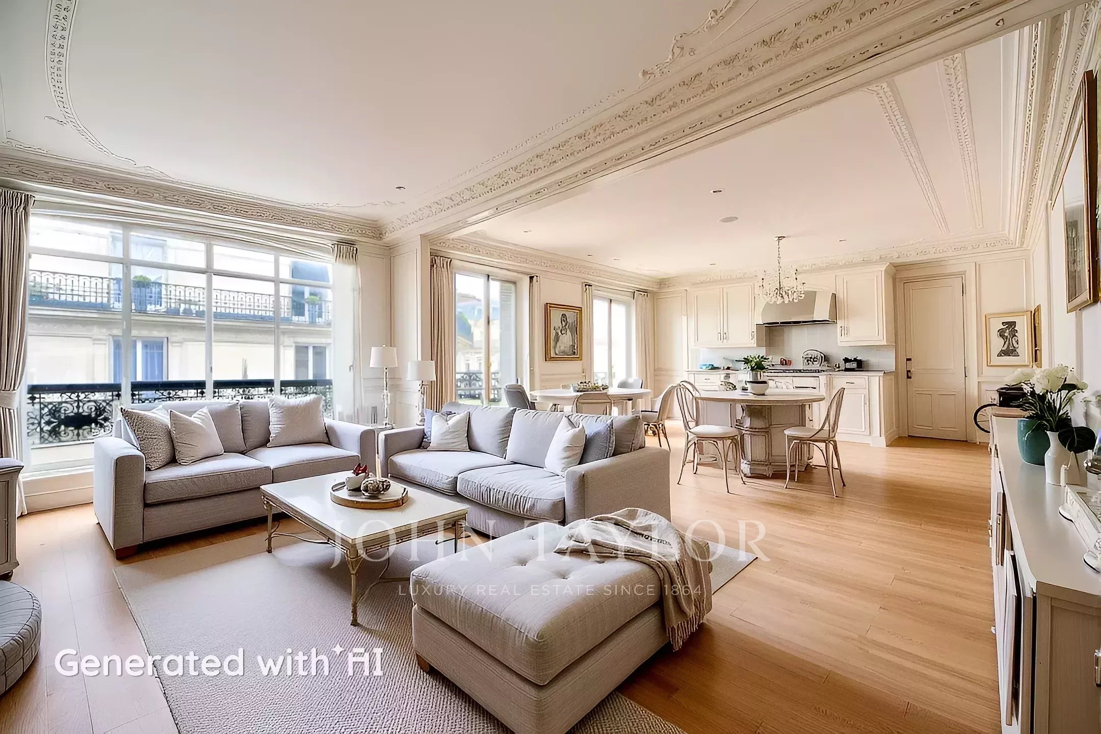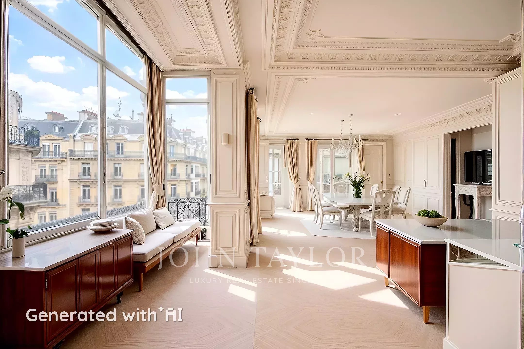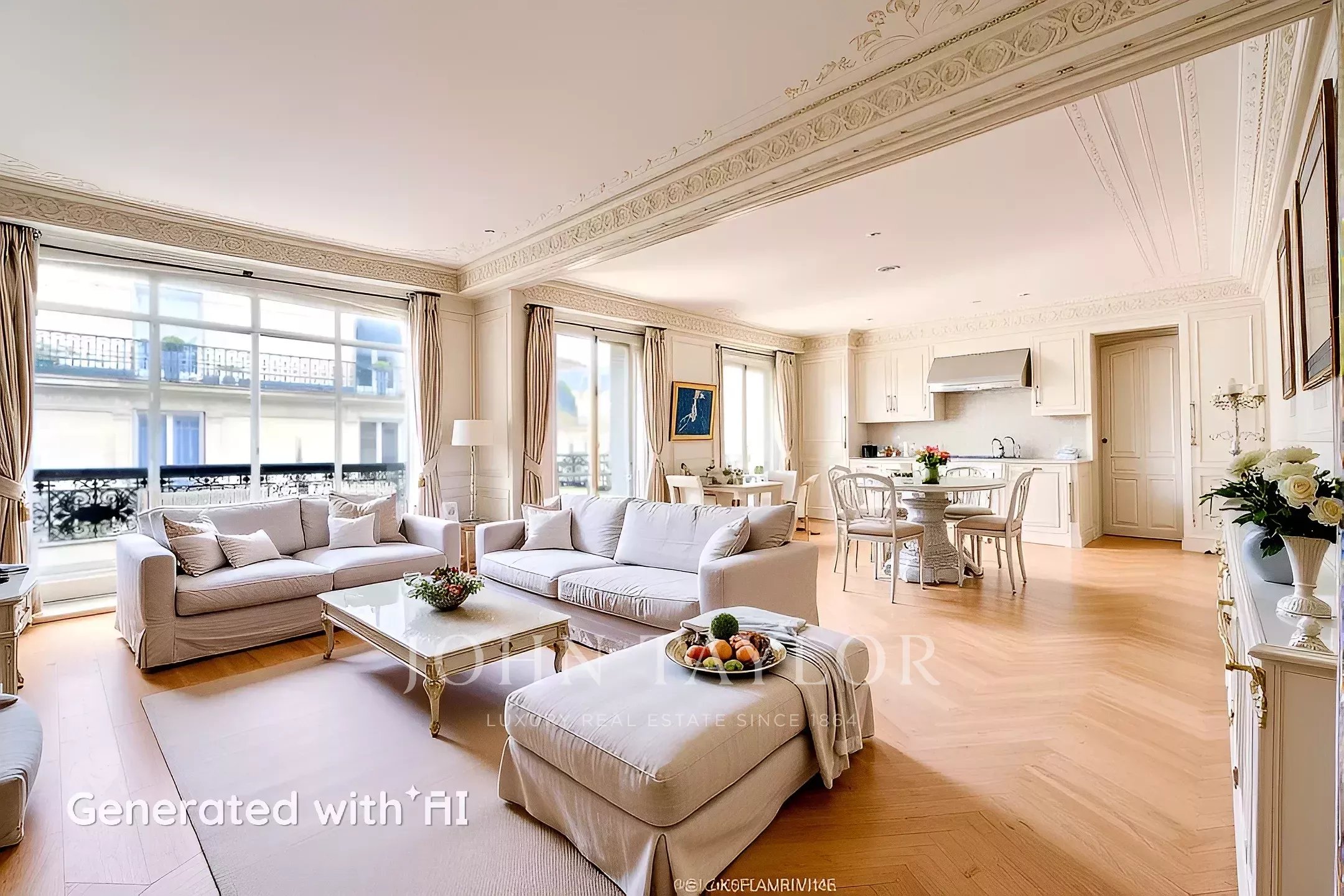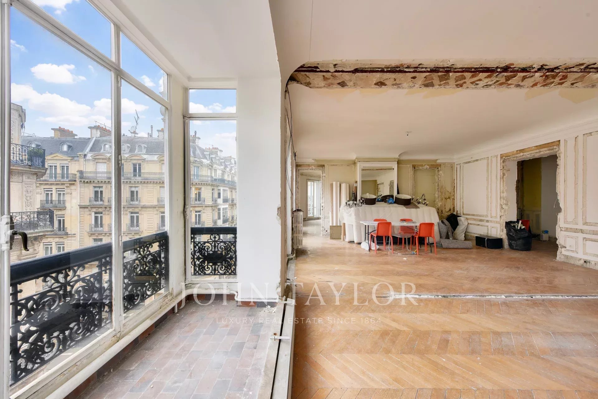 En el corazón del Triángulo de Oro, cerca de la avenida George V, en un edificio de estilo haussmaniano de bella construcción con guardias de seguridad, le ofrecemos un piso de 167m².