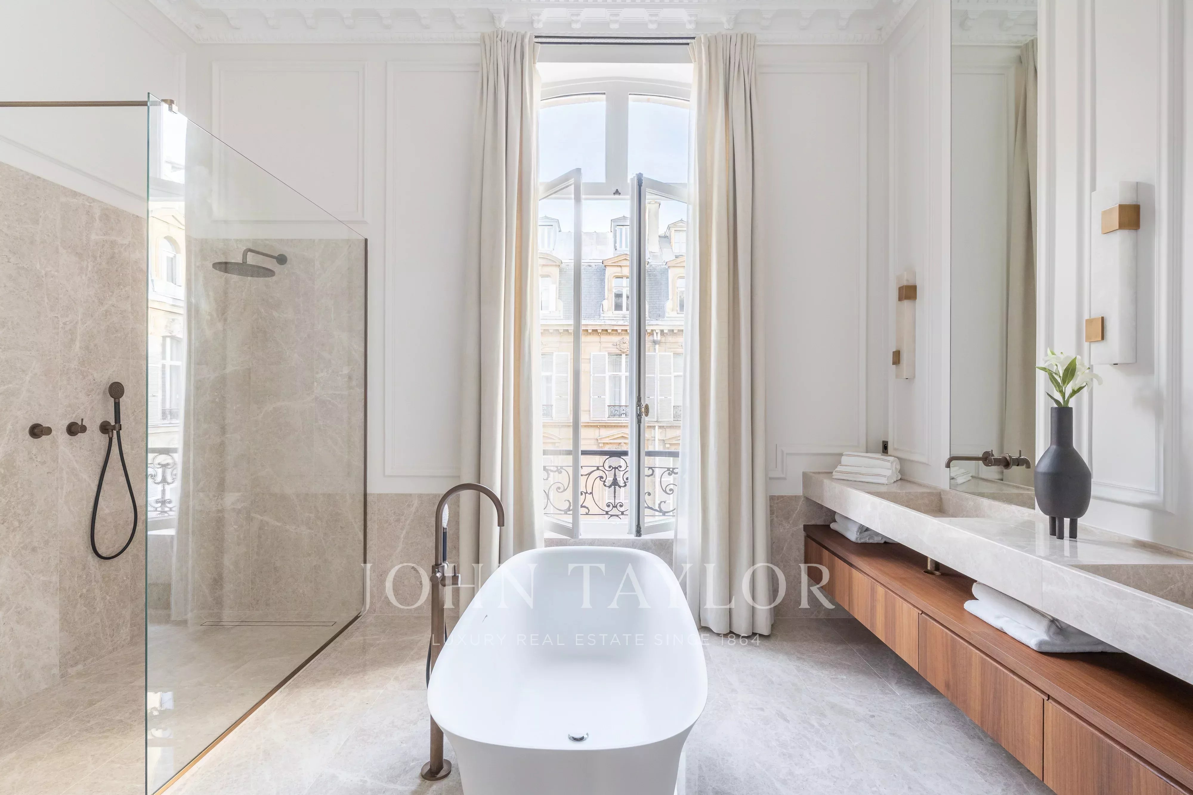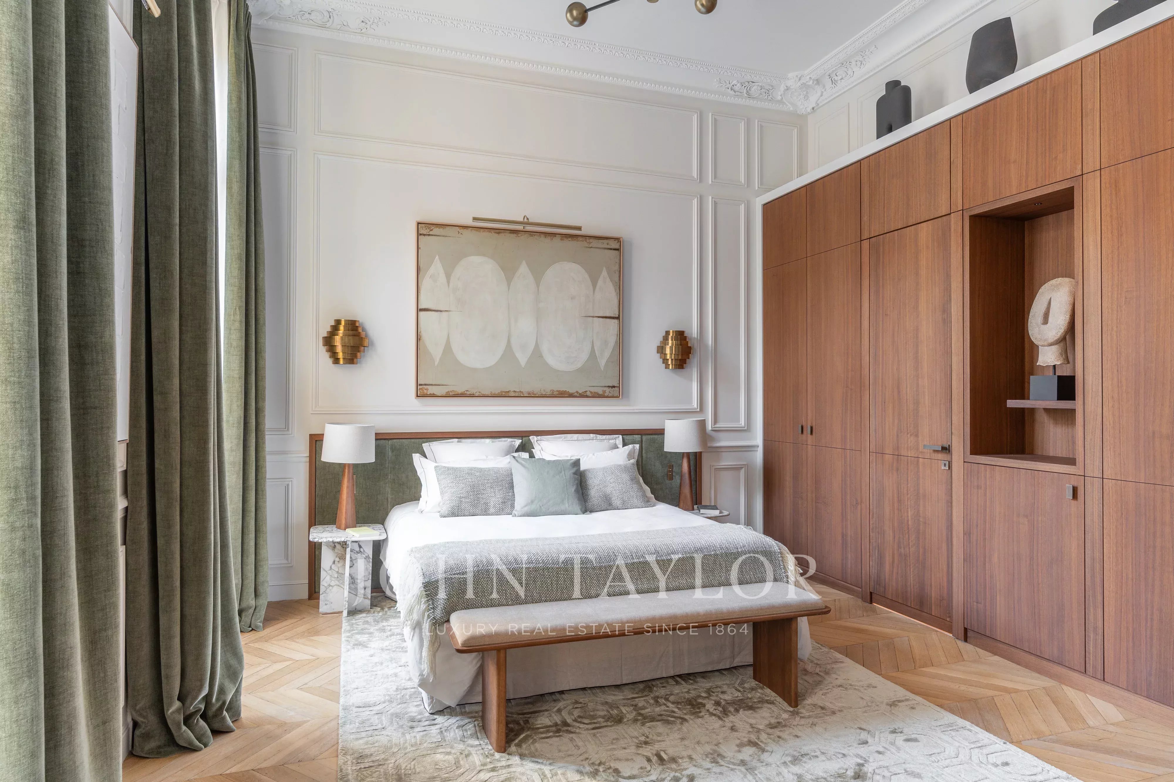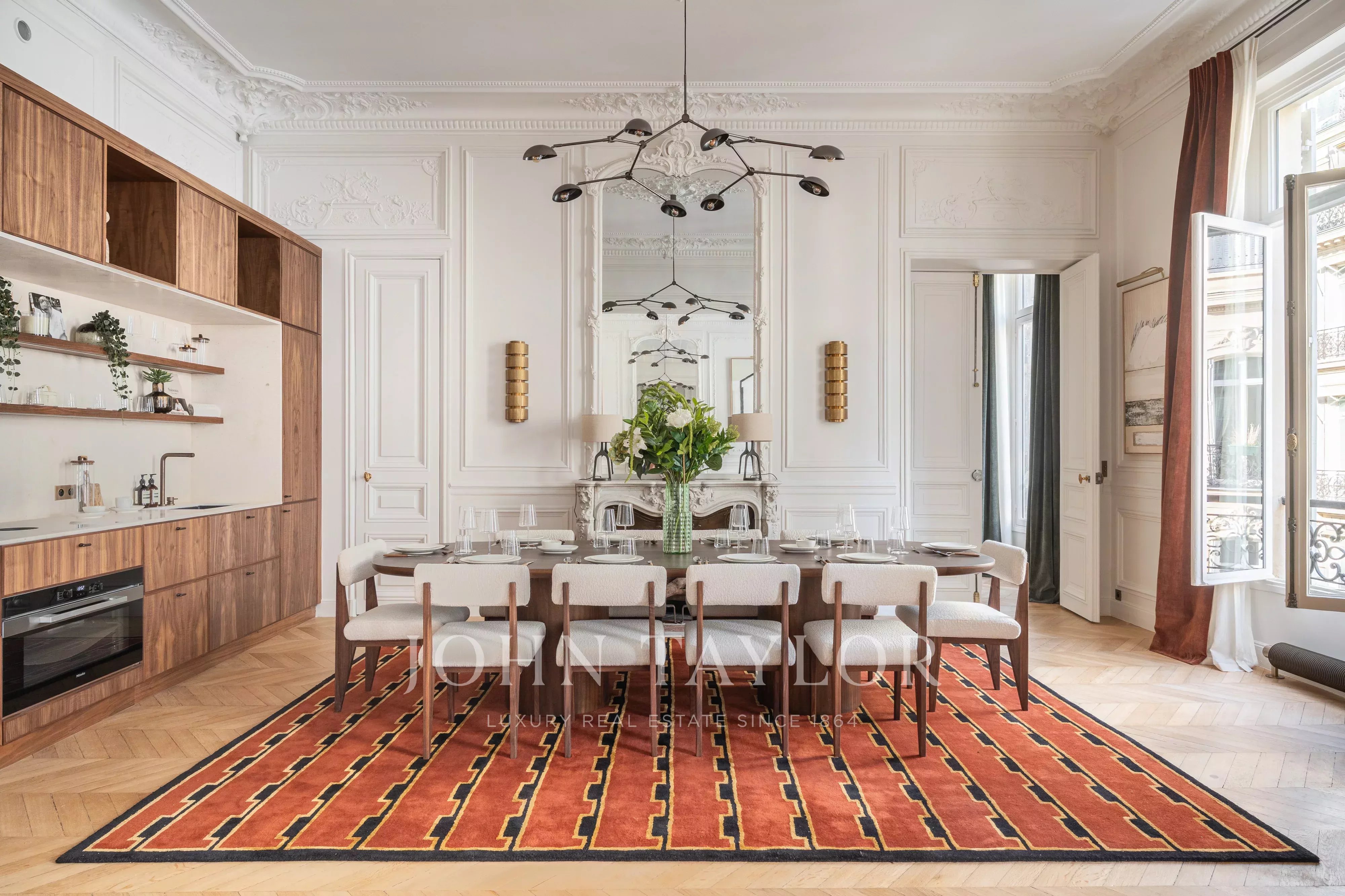 Con amplias habitaciones y techos de 4 metros de altura, este piso orientado al este-oeste ofrece una distribución perfecta y prestaciones de alta calidad, realzadas por algunos elementos de época muy bellos.