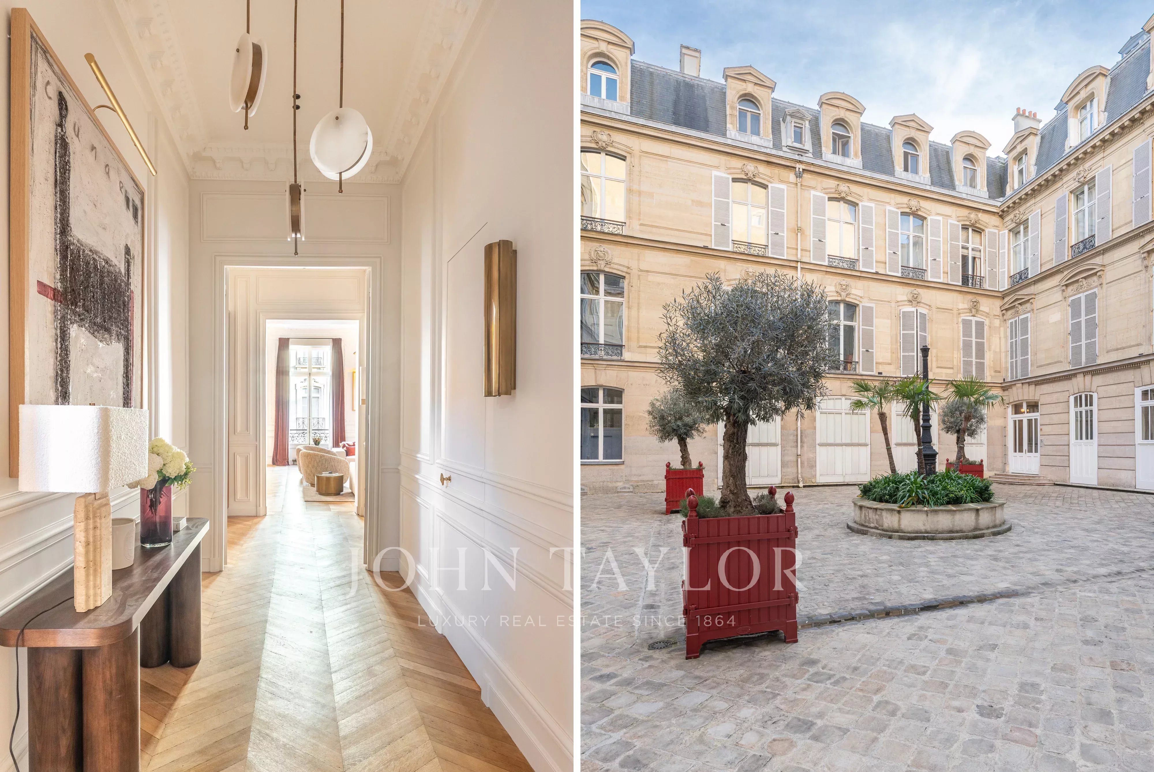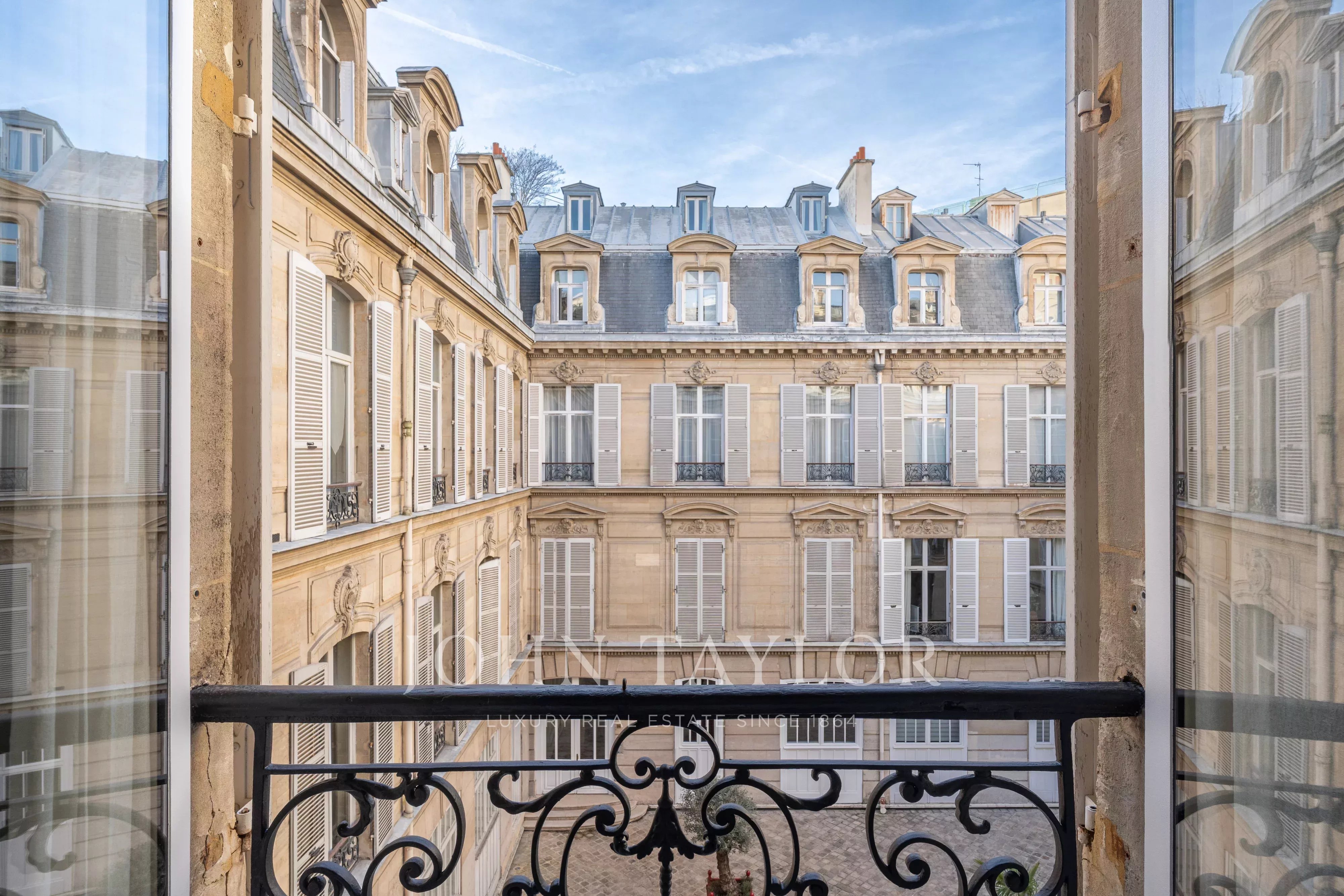 En el corazón del Triángulo de Oro, a dos pasos de la avenida Montaigne, en una calle tranquila y solicitada, este suntuoso piso de recepción, totalmente renovado y climatizado, se encuentra en la planta noble de un edificio de 1850 con zonas comunes de muy alto nivel.