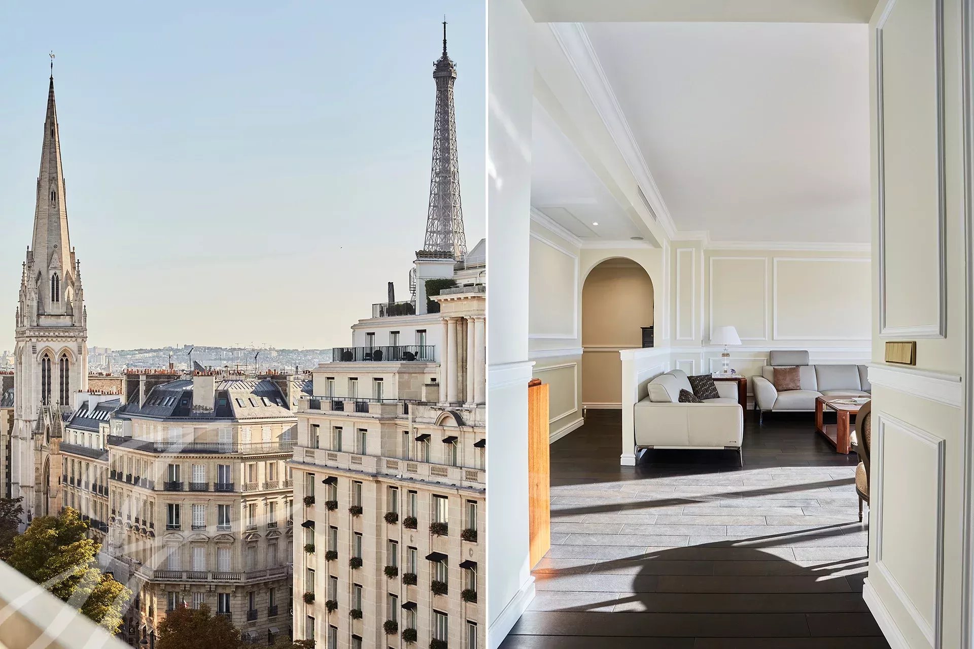 Disfrute de unas vistas excepcionales de la Torre Eiffel desde el balcón.