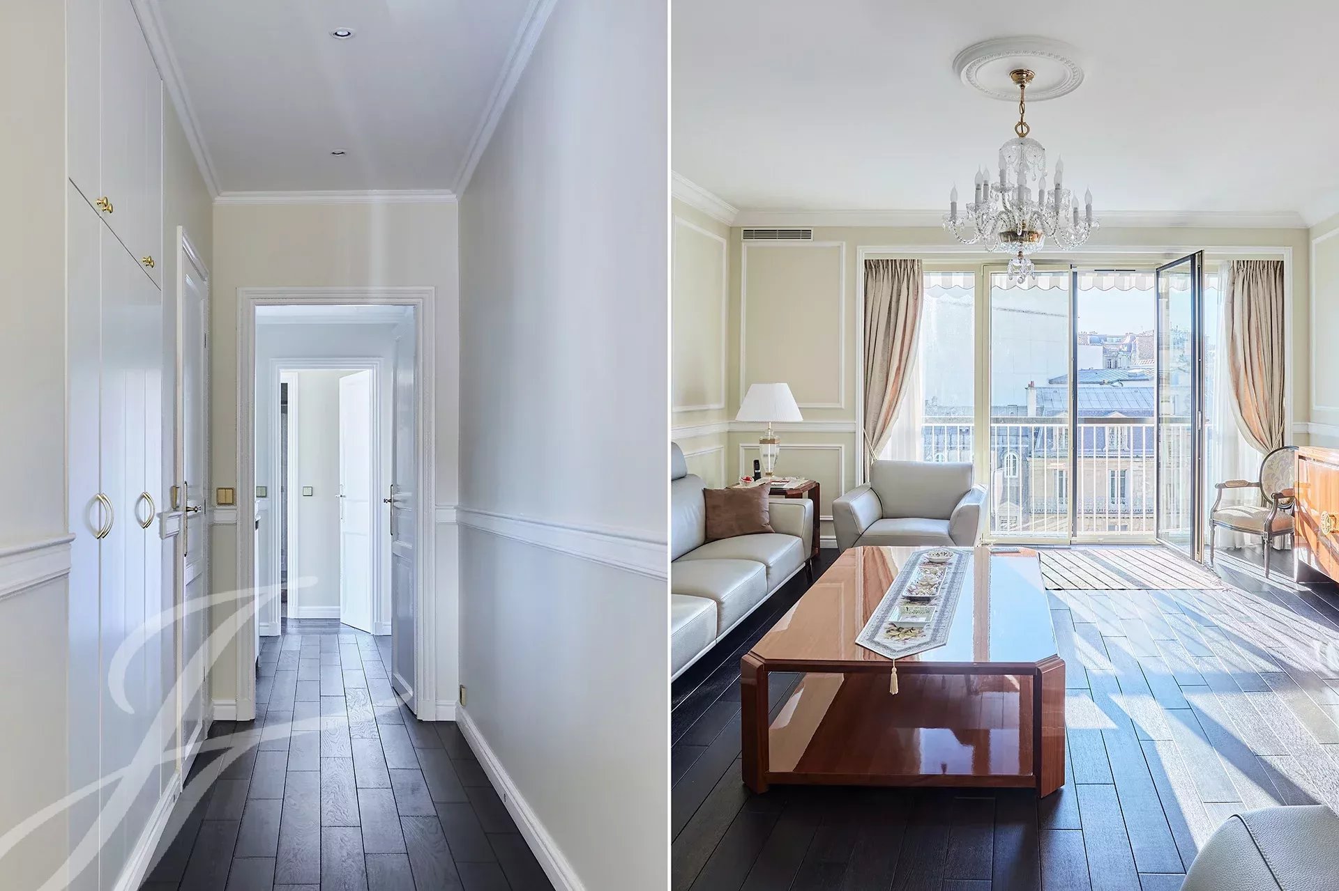 En el corazón del Triángulo de Oro, en la prestigiosa avenida George V, frente a los palacios Four Seasons y Príncipe de Gales, este apartamento de planta baja en la 8ª planta fue completamente renovado en 2017 por el arquitecto Florian de Langsdorff. Ha estado raramente ocupado desde entonces. Con una superficie total de alrededor de 141m², ofrece :