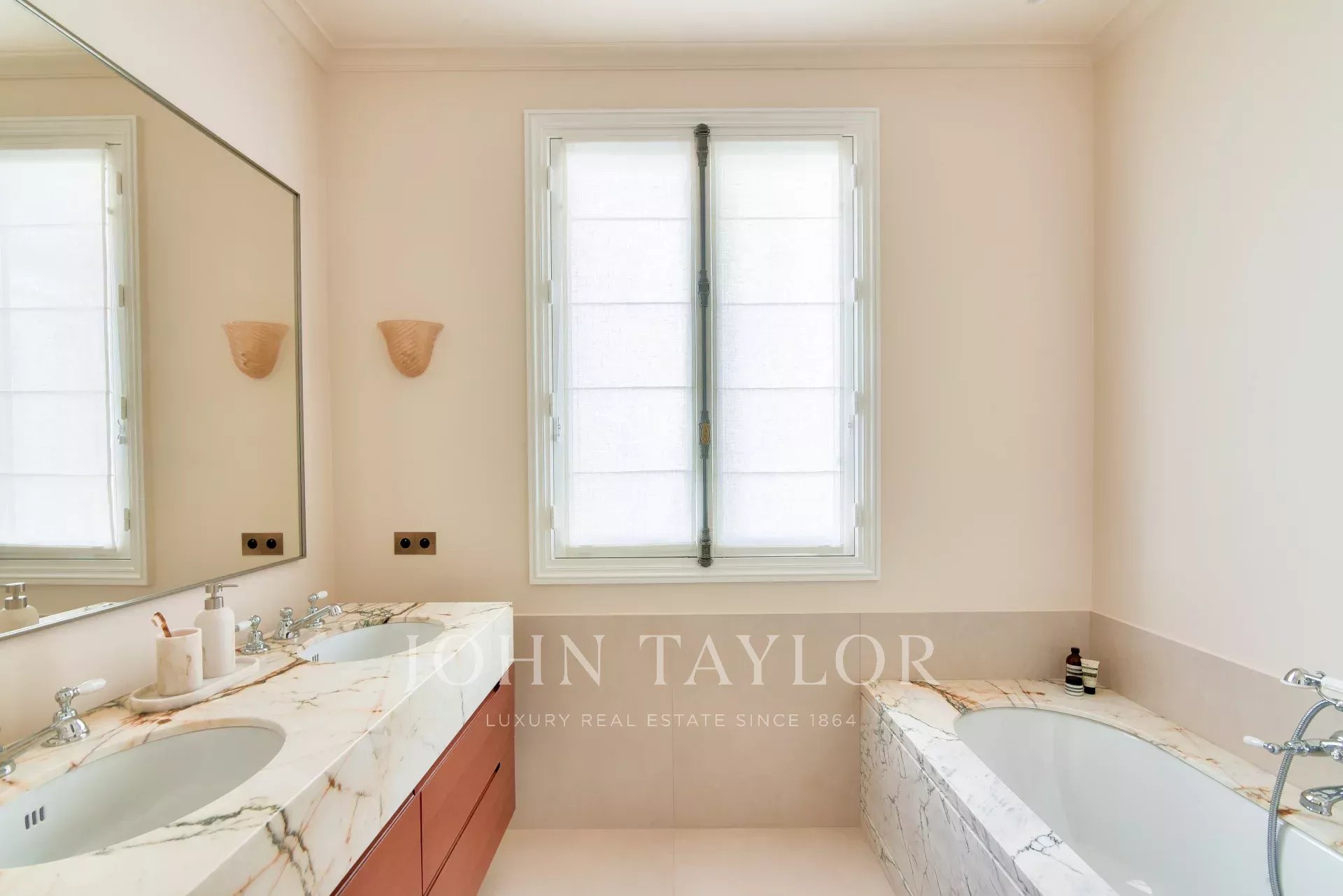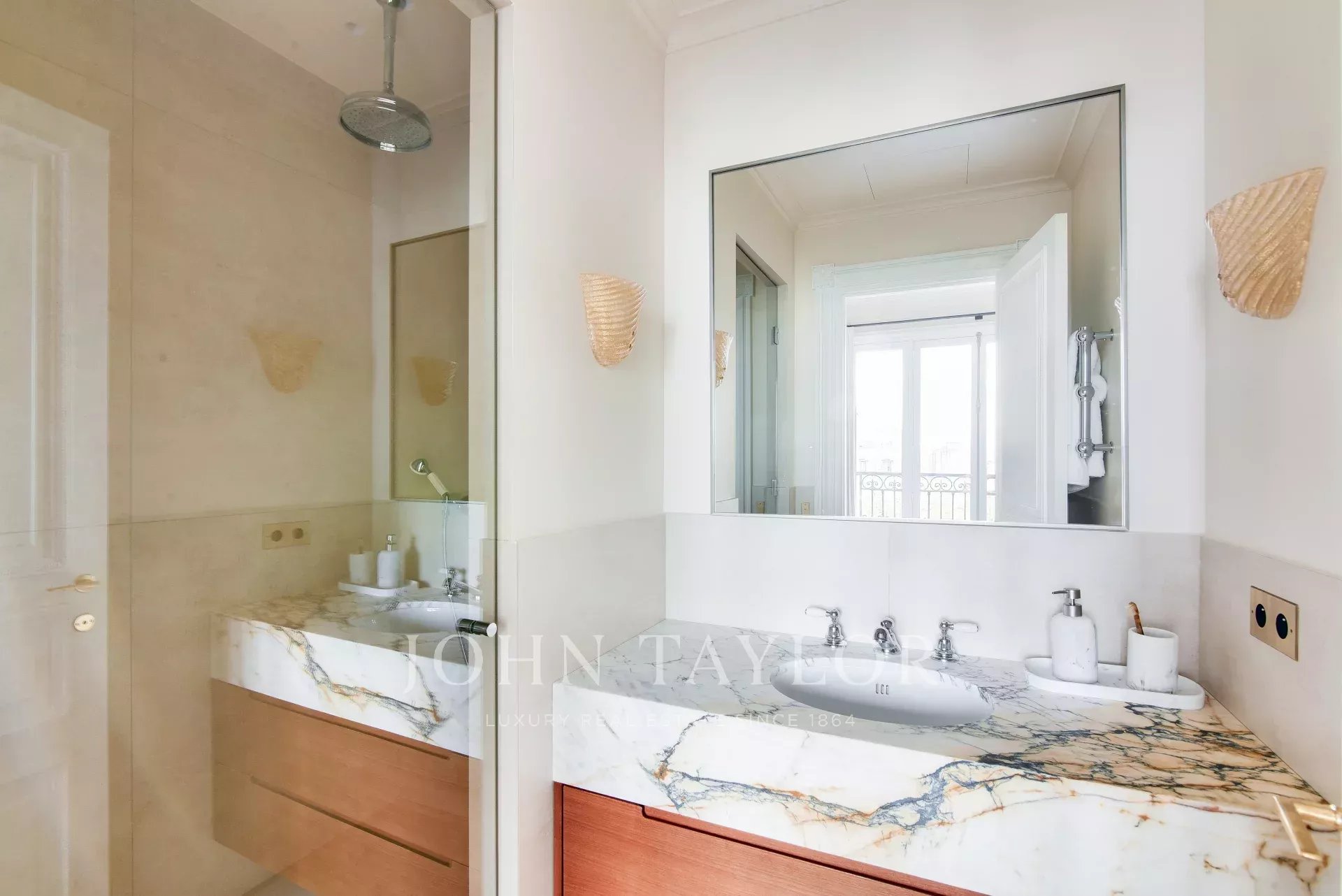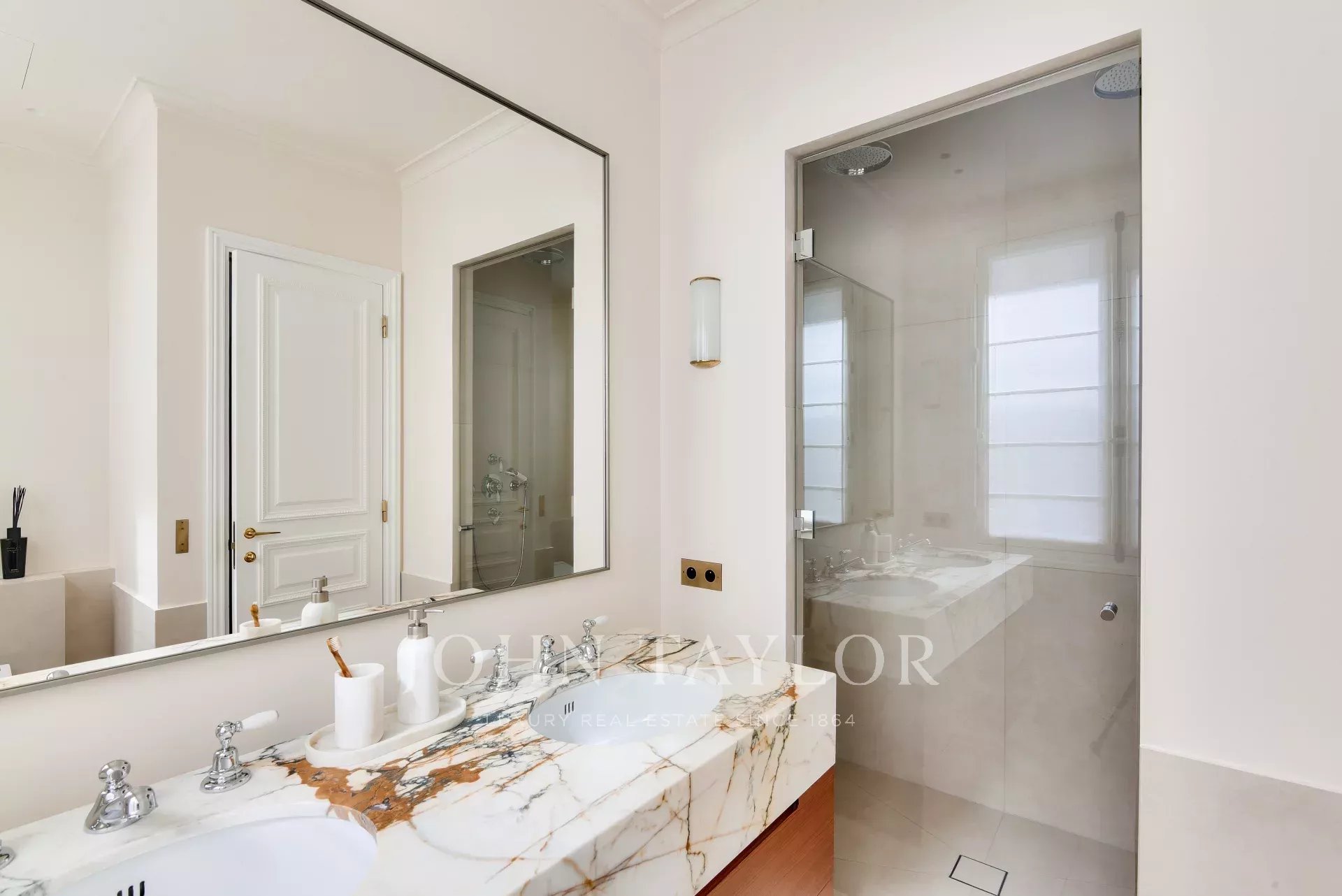Este piso totalmente climatizado combina el encanto del pasado con la modernidad: suelos de parqué y mármol, molduras y una chimenea, todo ello parte de una renovación de alta gama.