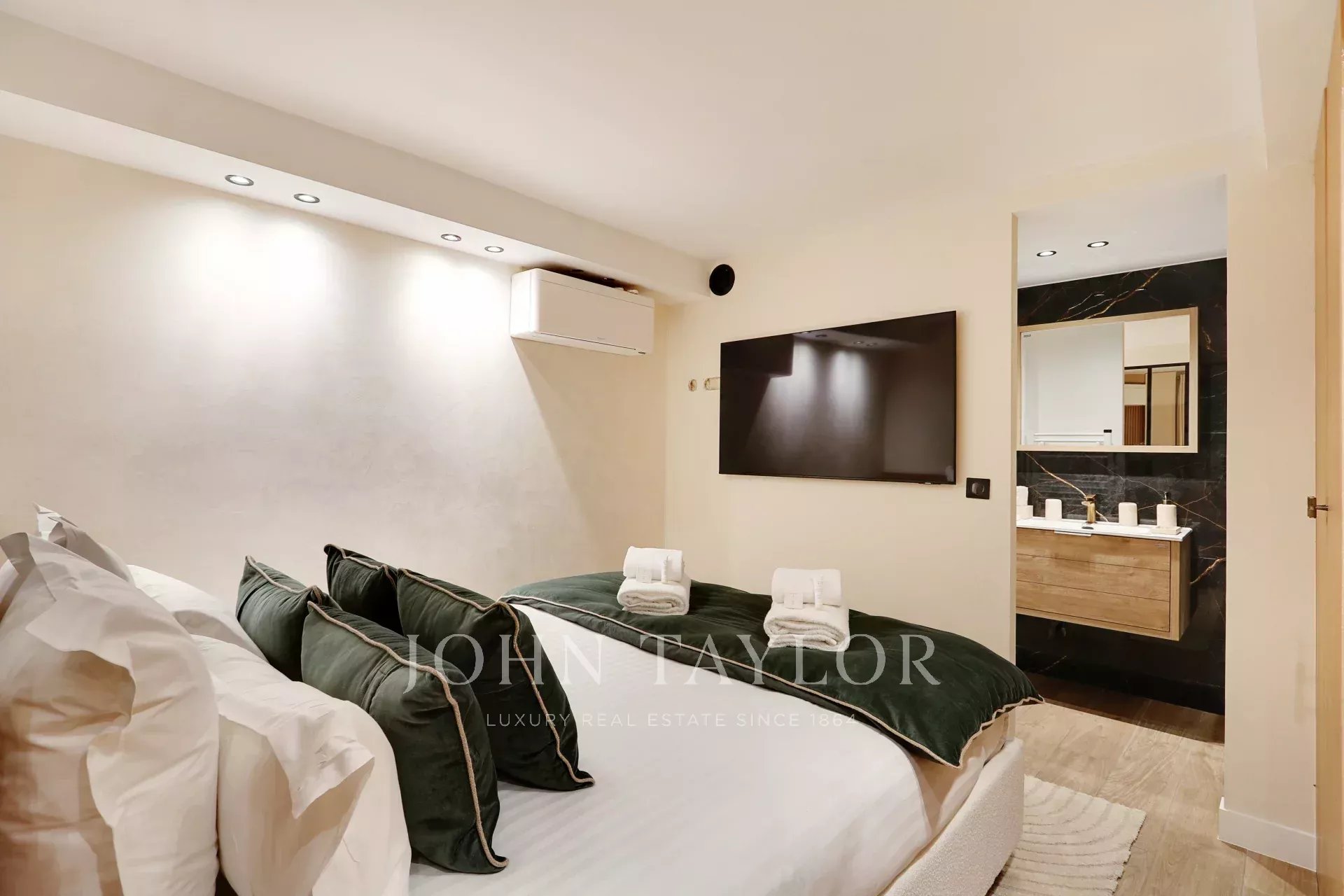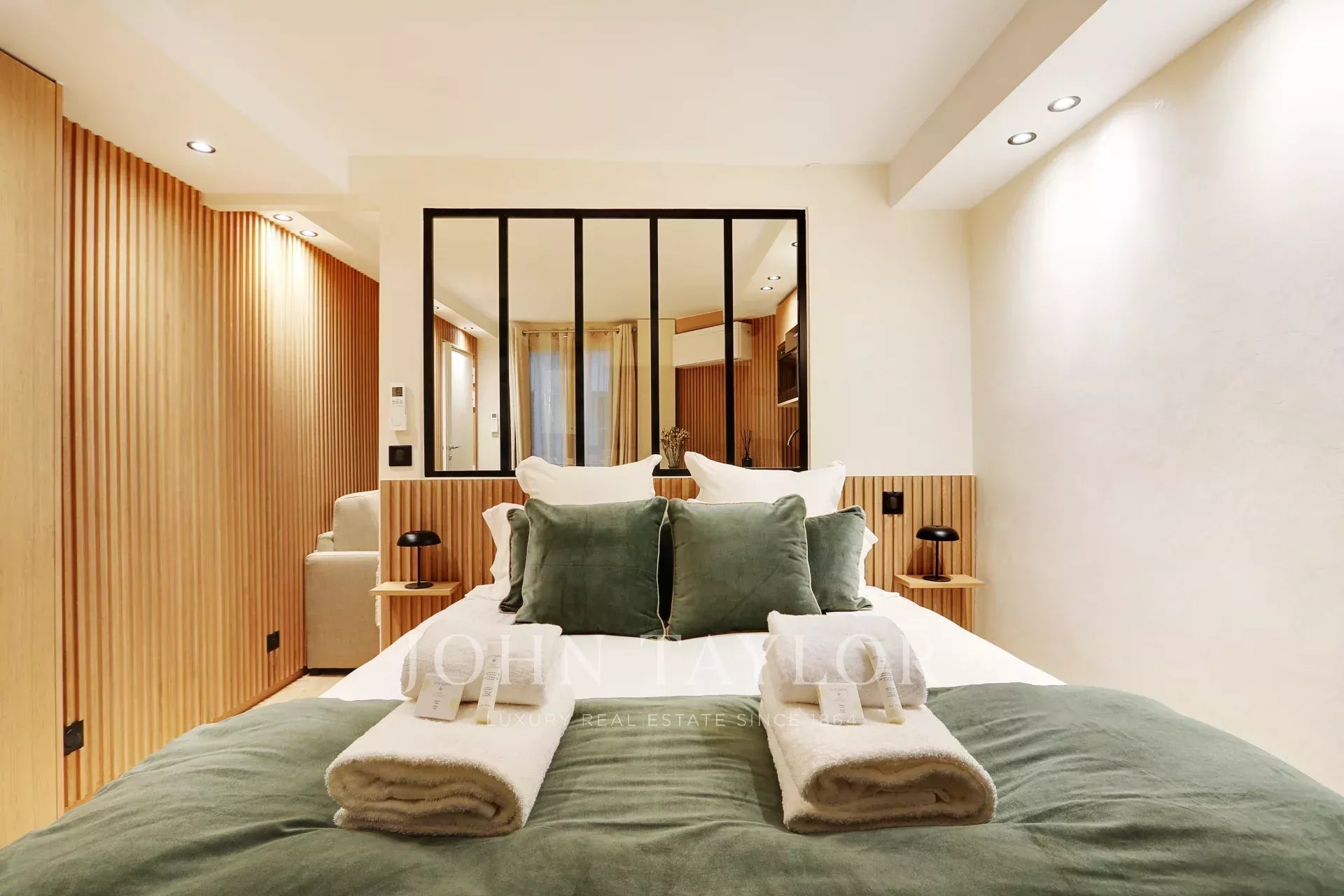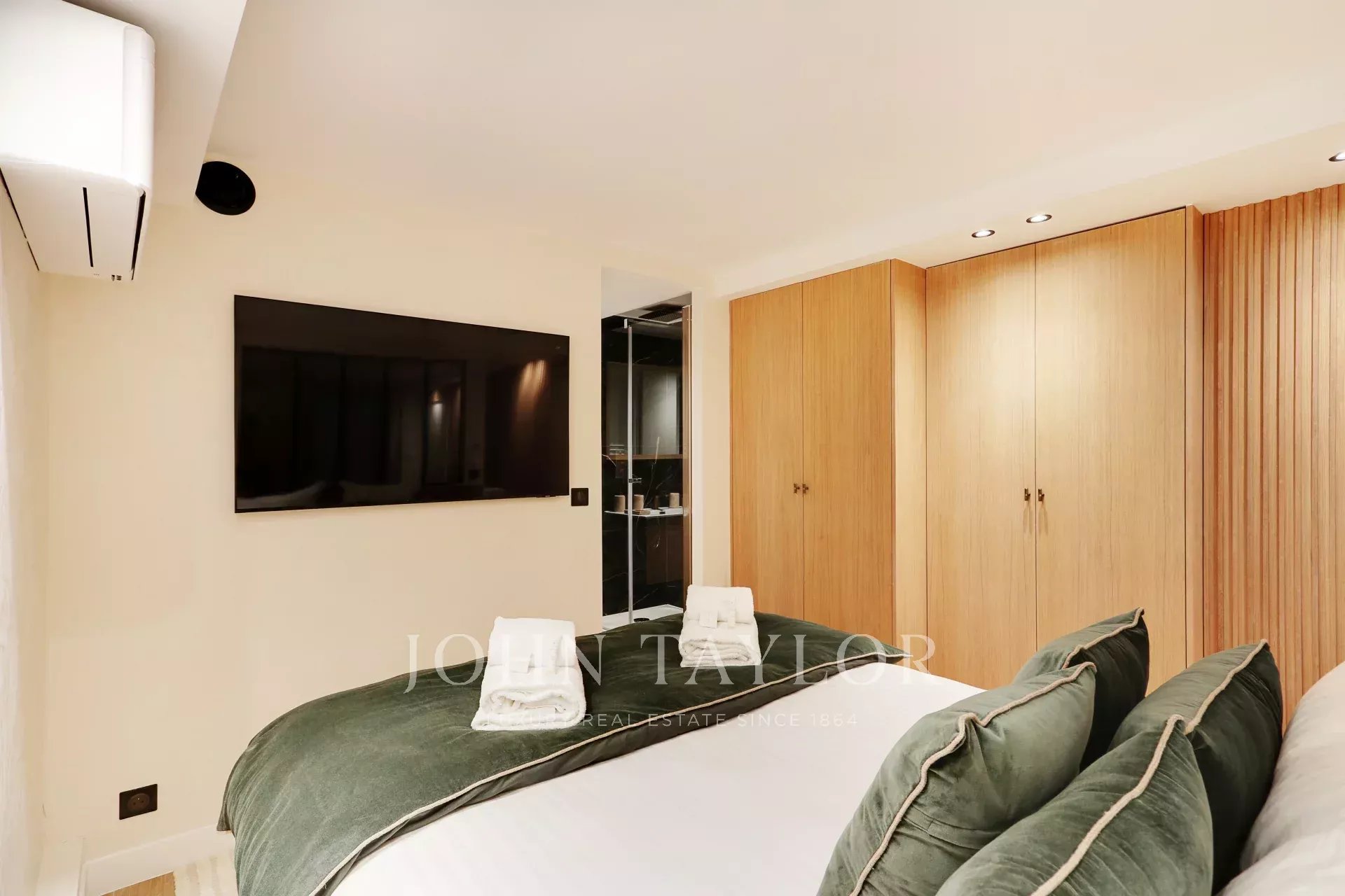 En el corazón de la ciudad, rue Saint André des Arts, en un edificio de principios del siglo X, este magnífico apartamento de dos habitaciones de 22m2 ha sido completamente reformado por un arquitecto utilizando materiales de calidad.