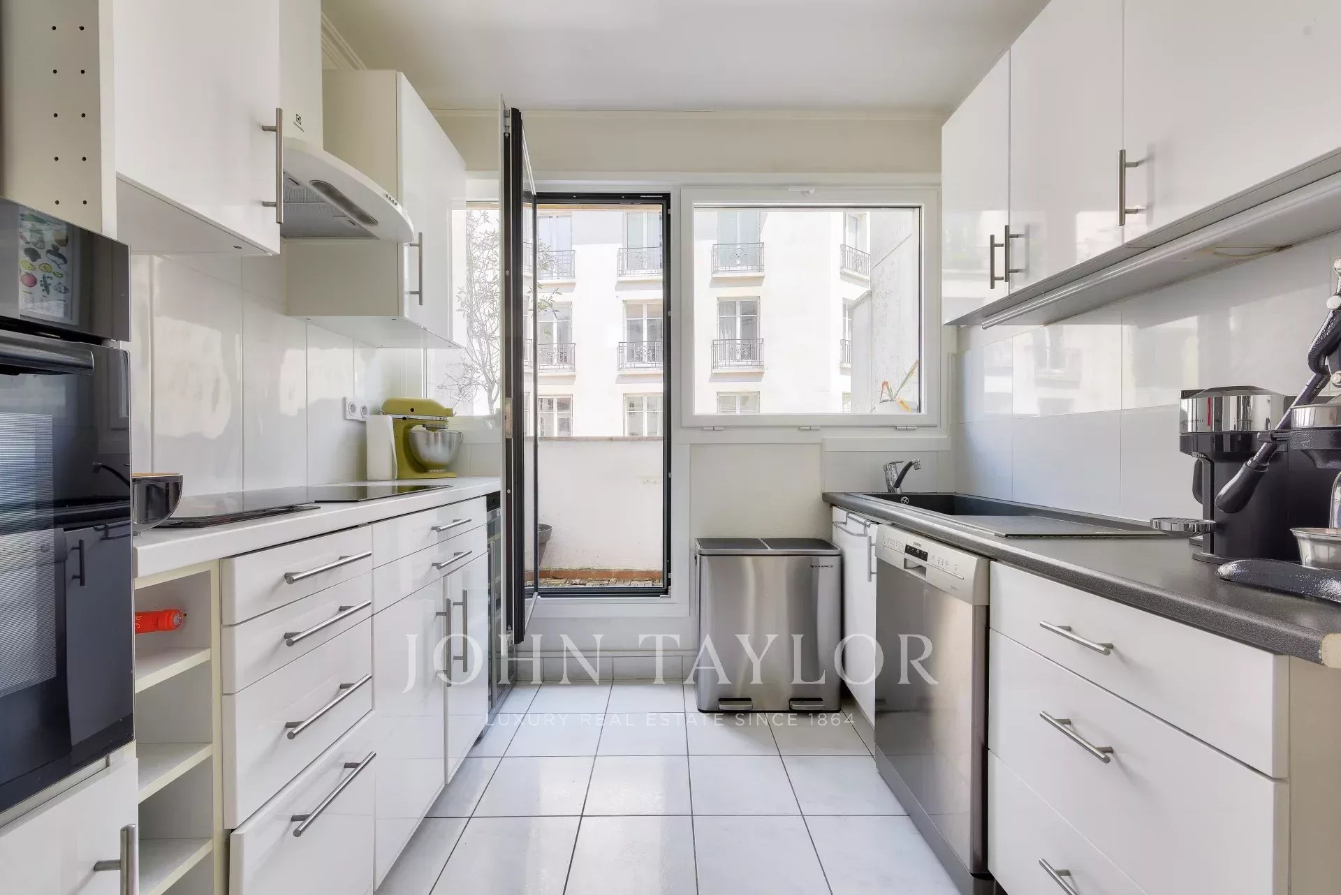 En un lugar tranquilo a medio camino entre los comercios de la rue Saint-Dominique y el Sena, en un edificio de los años 70 con conserje y ascensor, le ofrecemos un piso de 67,45 m² (ley Carrez) en el segundo piso con 4 balcones.