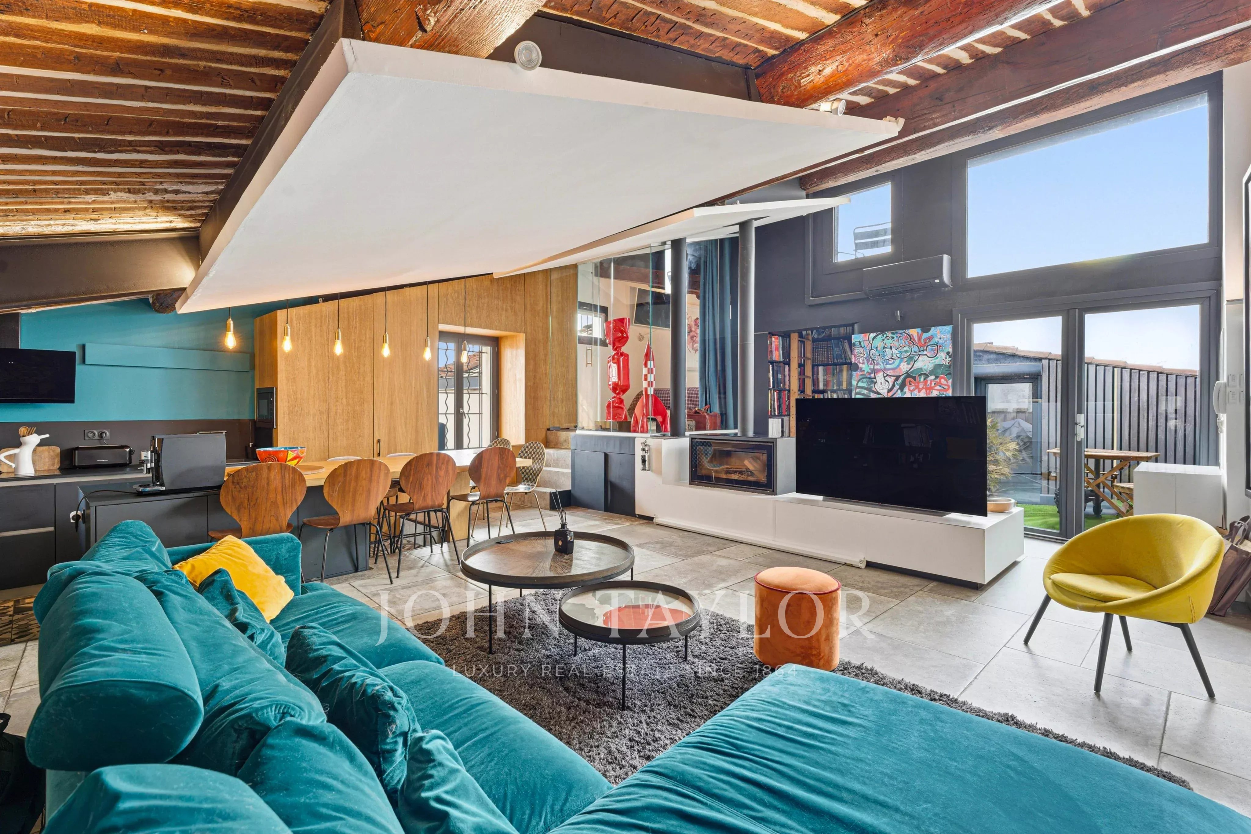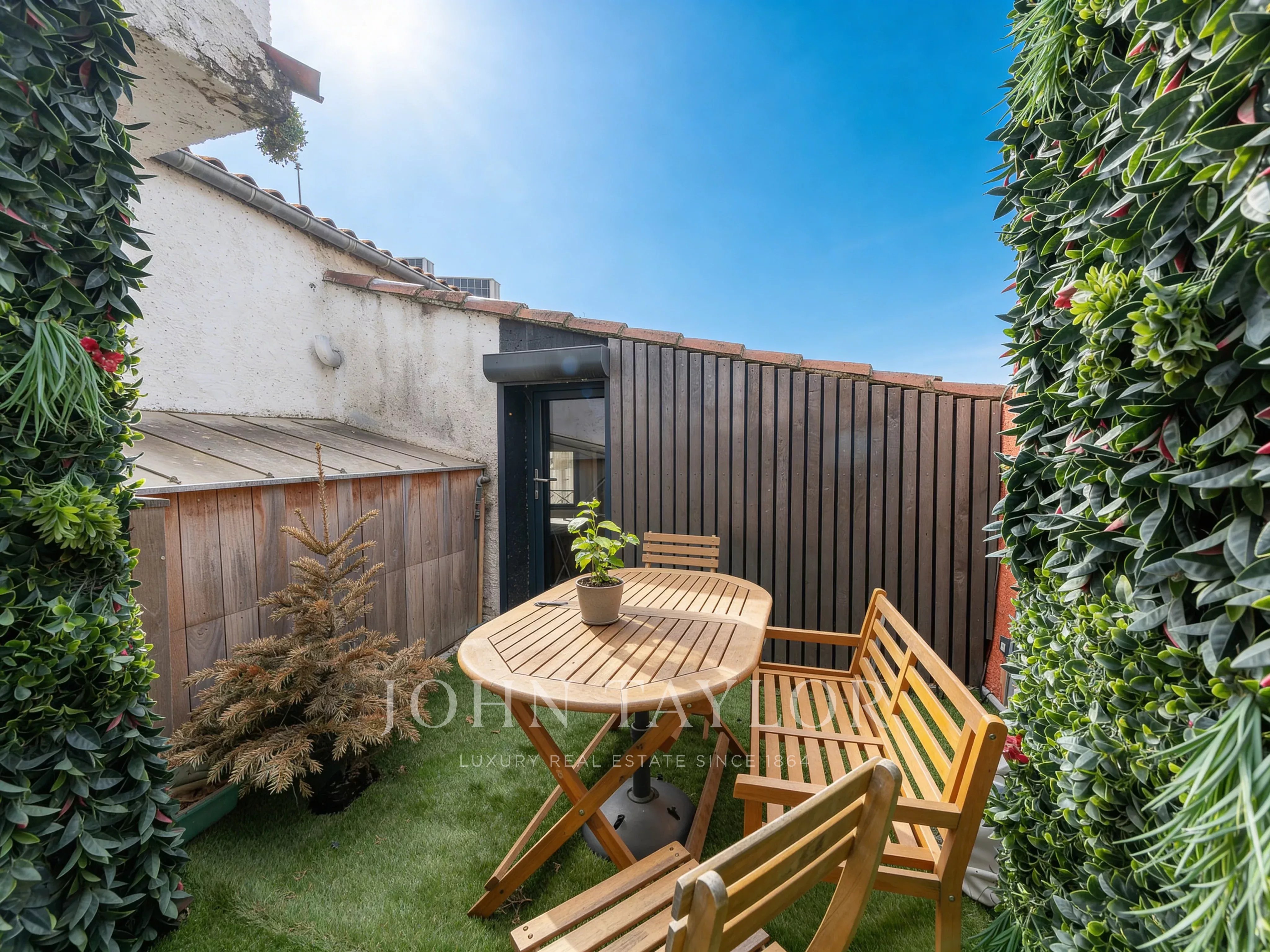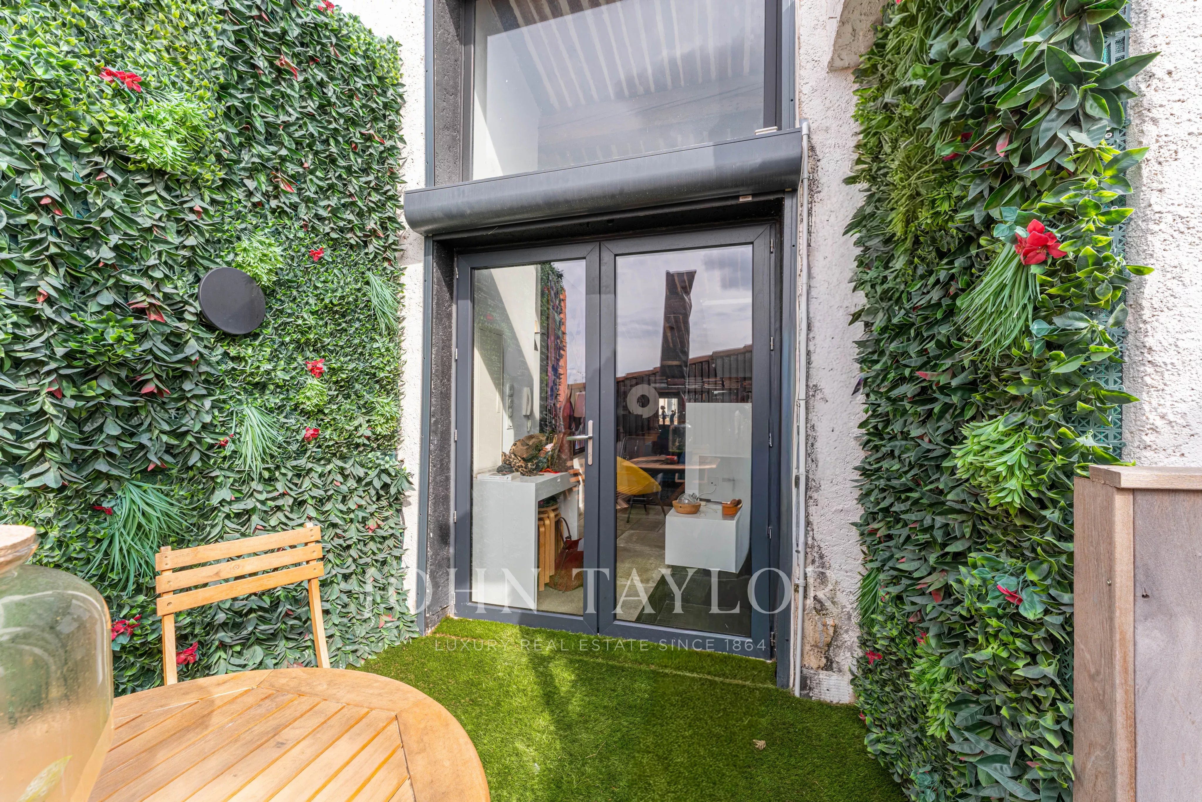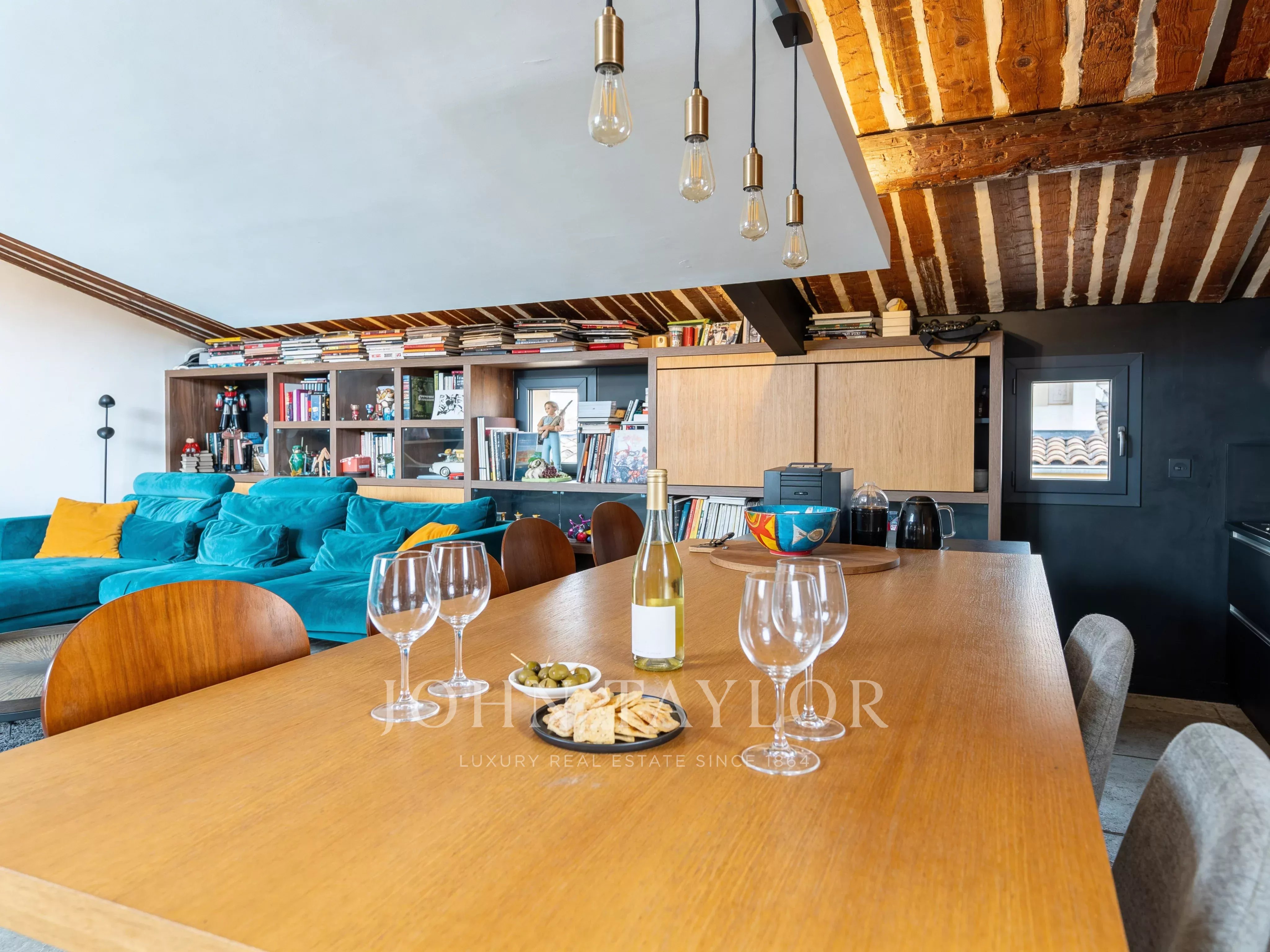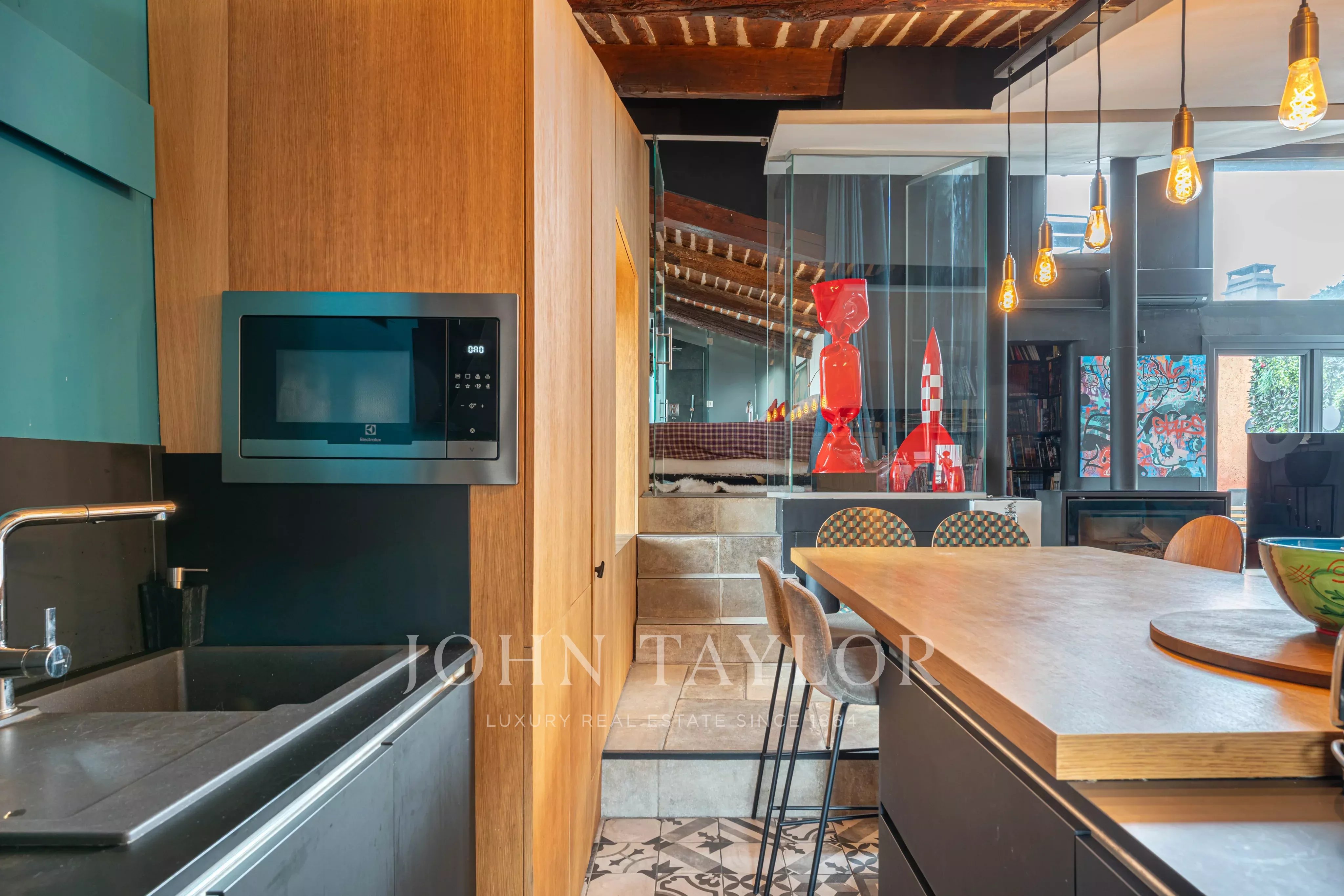 Descubra este espectacular apartamento de 110 m² ubicado en el corazón de Aix-en-Provence, que combina elegancia y confort en un entorno contemporáneo. La propiedad cuenta con un luminoso salón de techos altos y vigas vistas, una decoración moderna y colorida, y grandes ventanales que dan acceso directo a una encantadora terraza privada con jardín vertical, ideal para relajarse al aire libre.