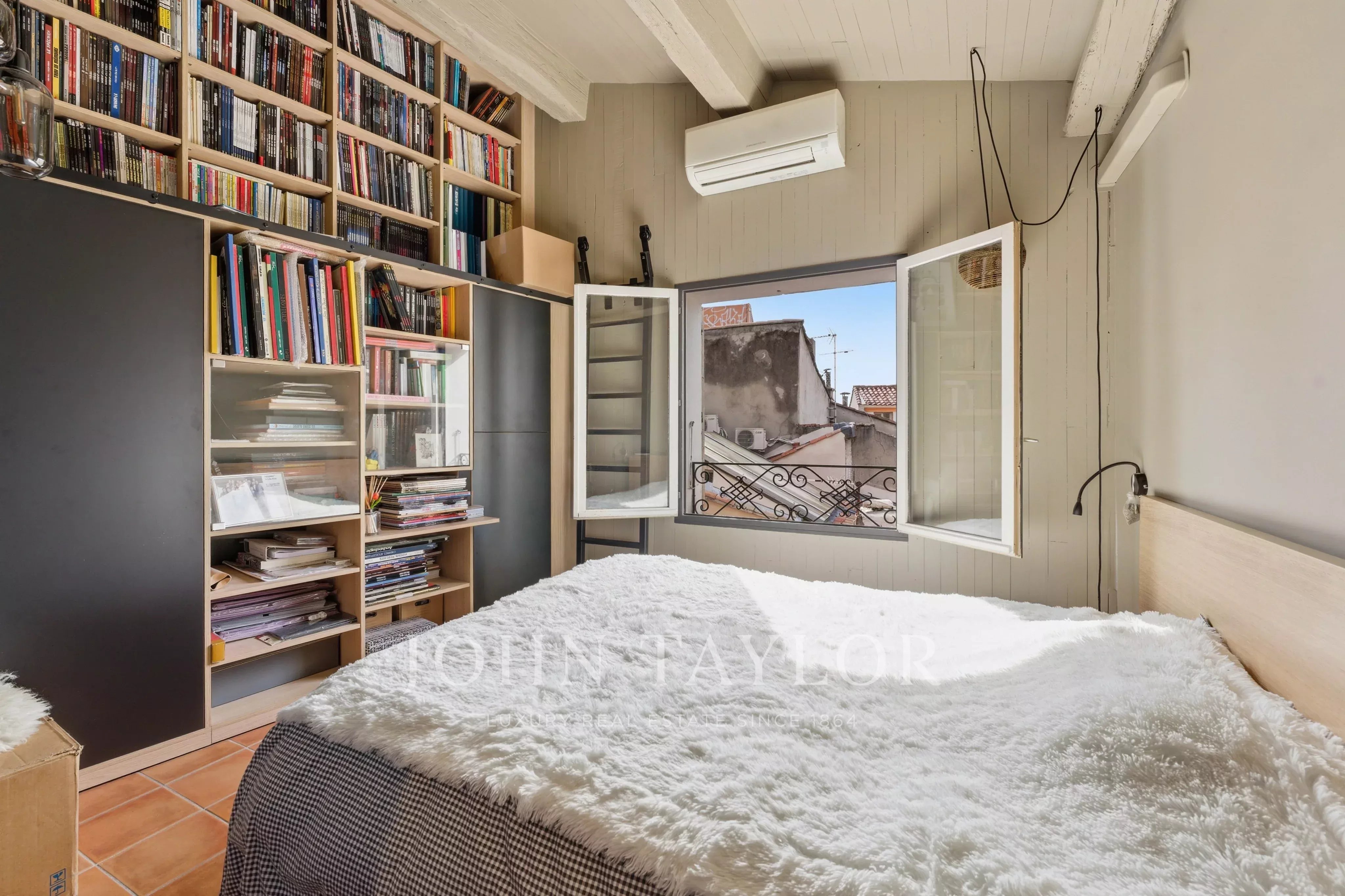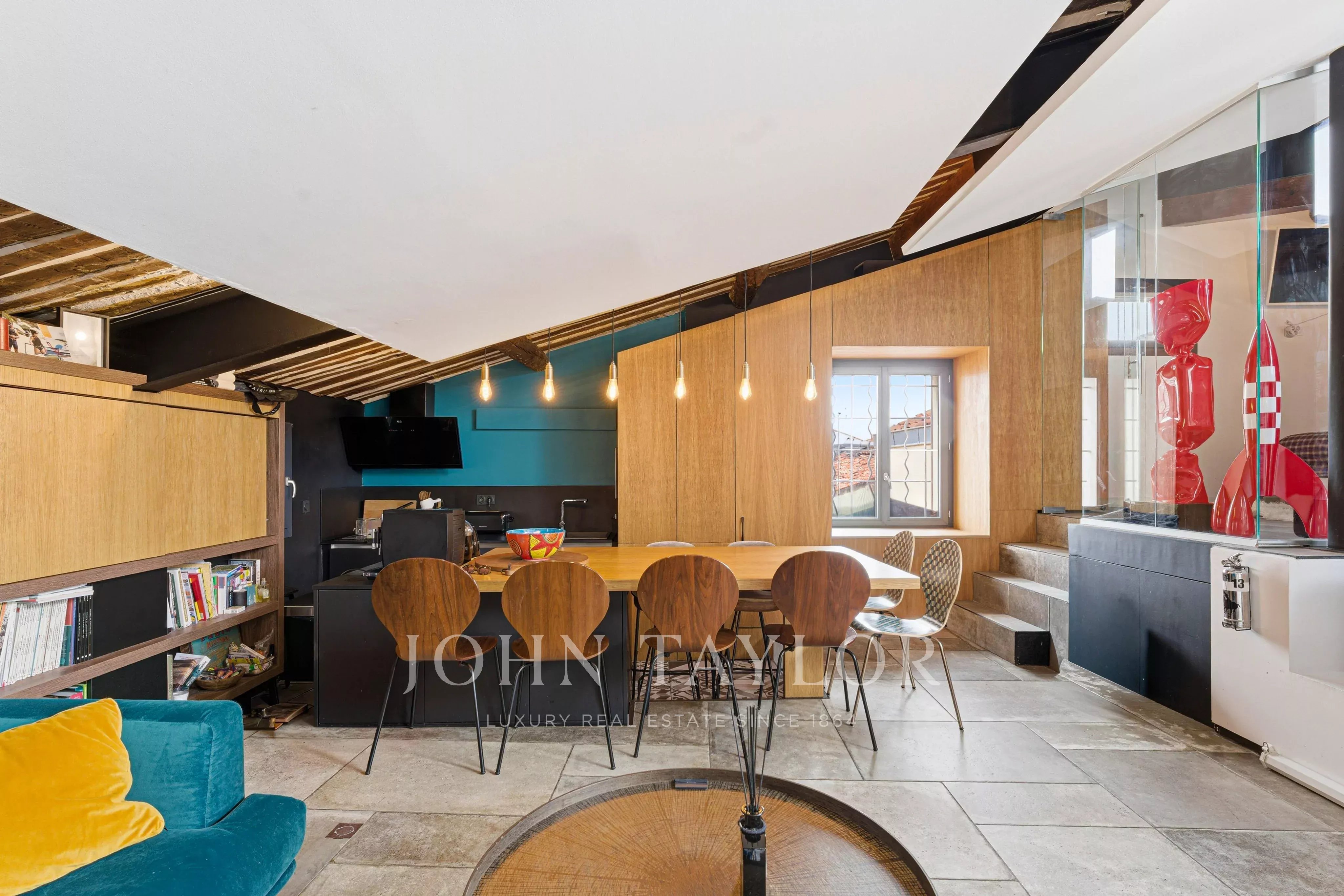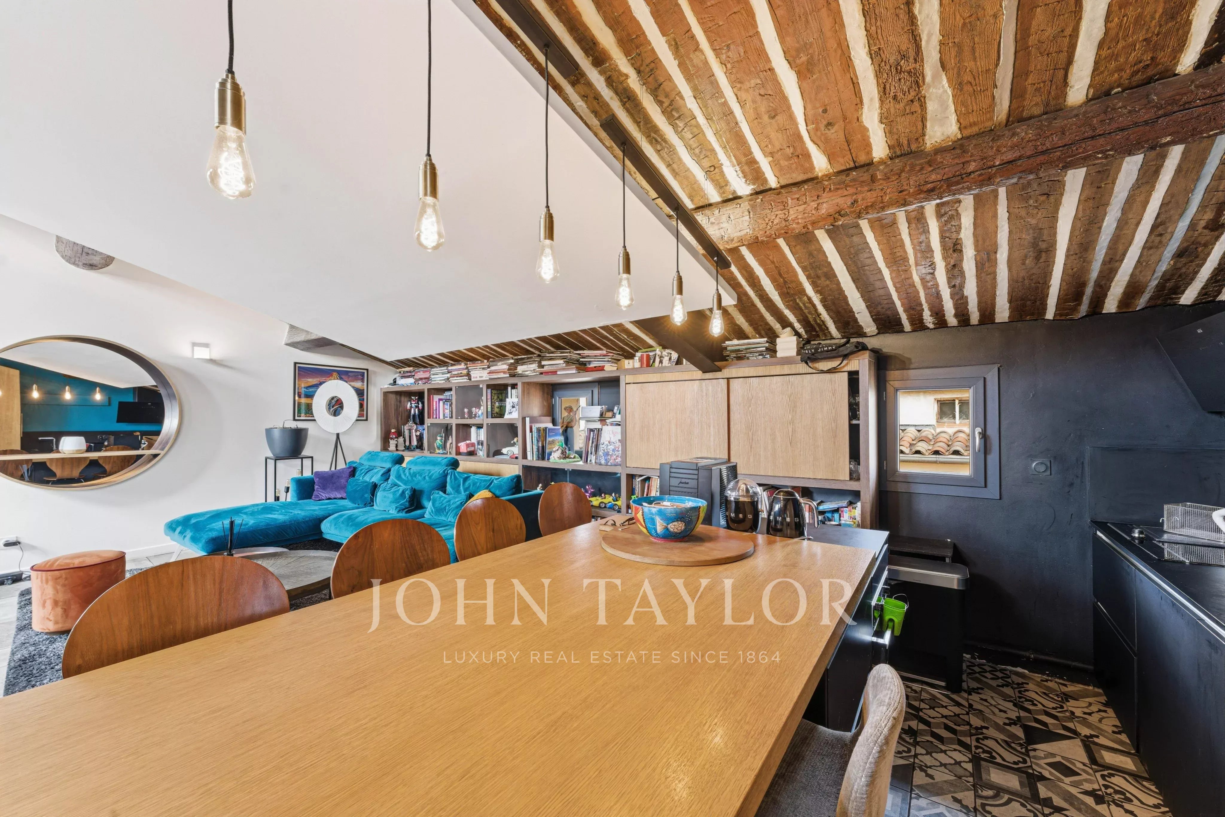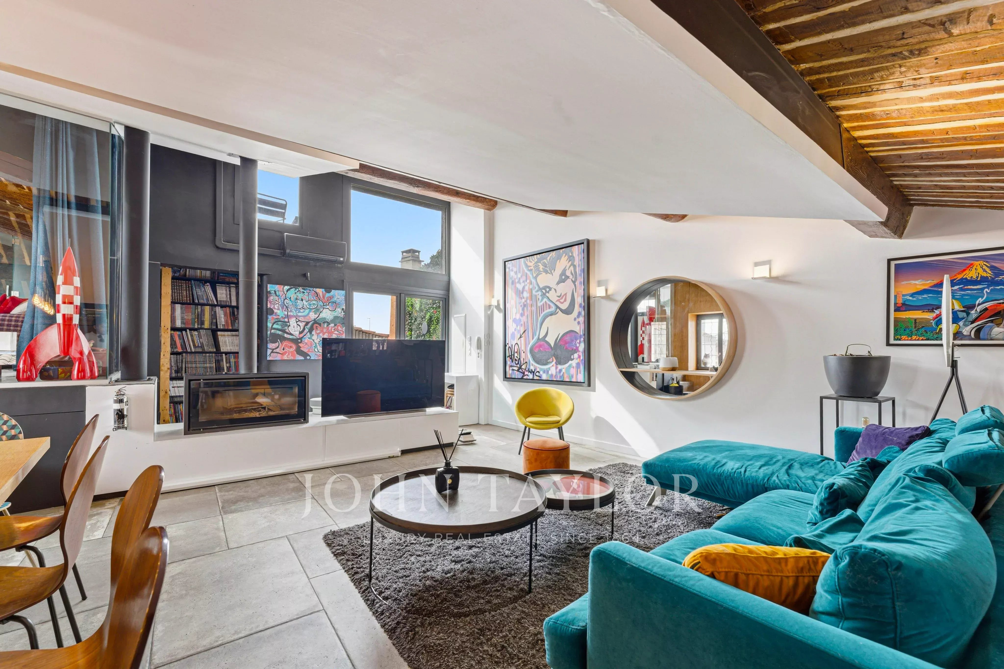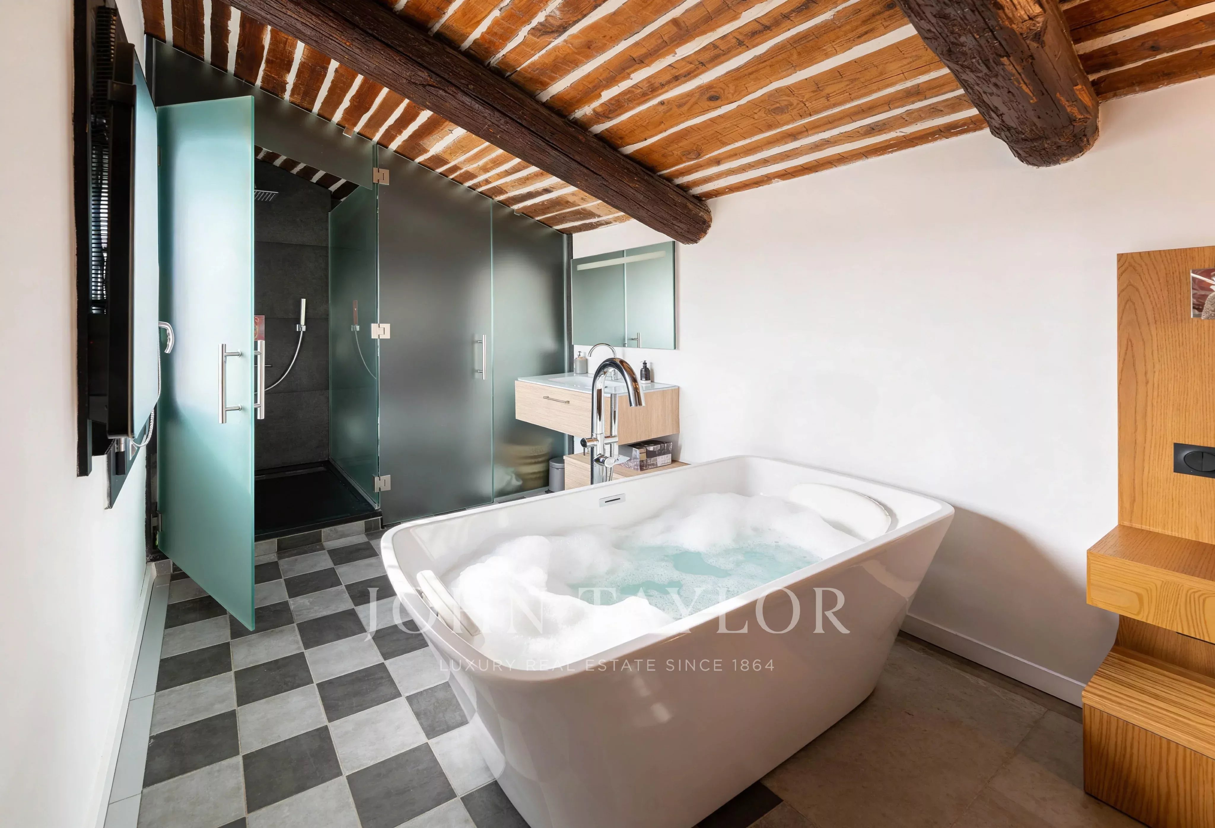 Descubra este espectacular apartamento de 110 m² ubicado en el corazón de Aix-en-Provence, que combina elegancia y confort en un entorno contemporáneo. La propiedad cuenta con un luminoso salón de techos altos y vigas vistas, una decoración moderna y colorida, y grandes ventanales que dan acceso directo a una encantadora terraza privada con jardín vertical, ideal para relajarse al aire libre.